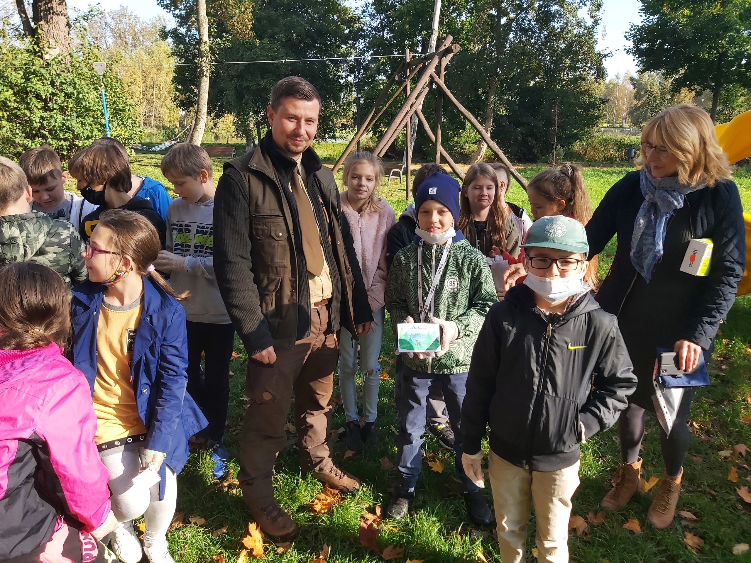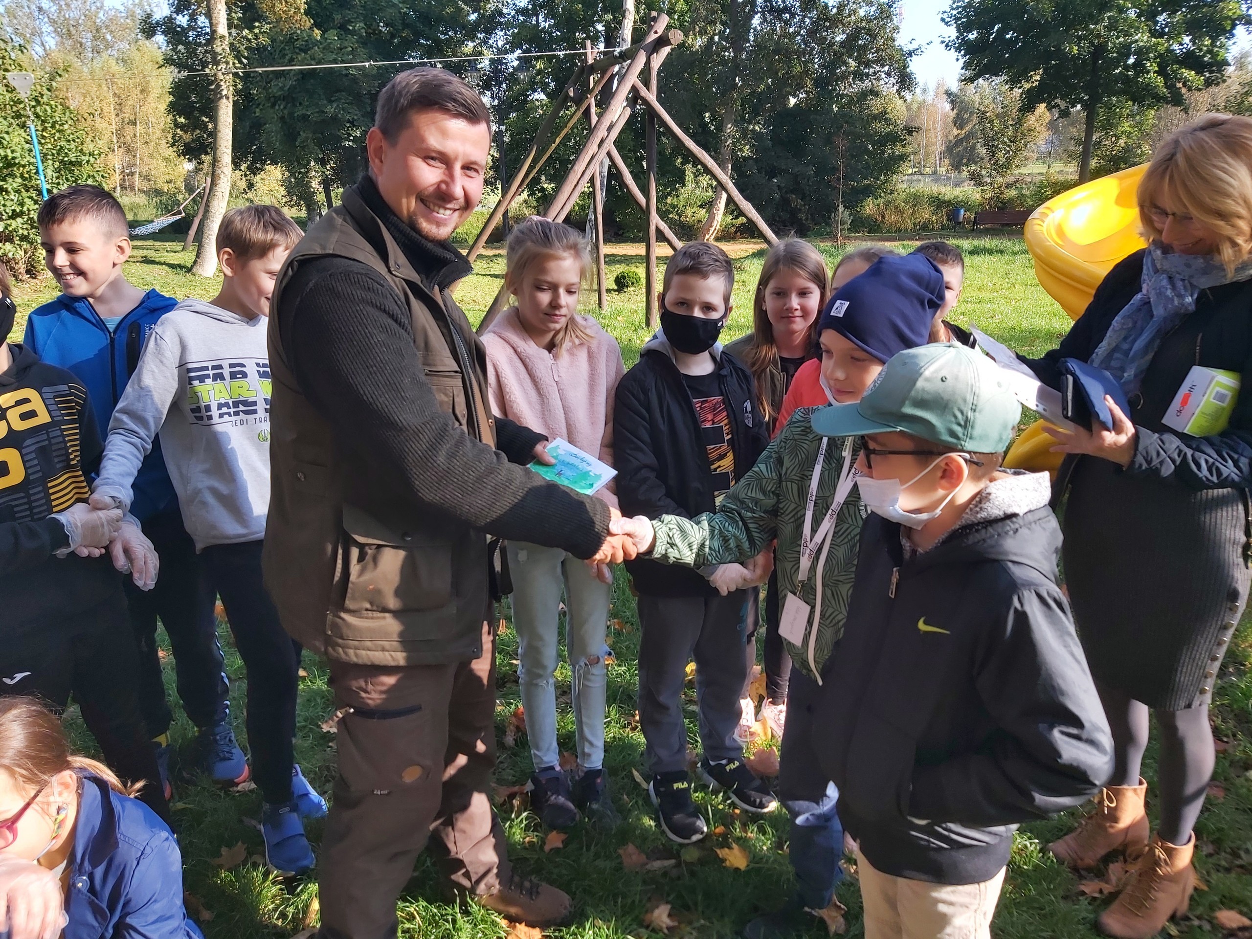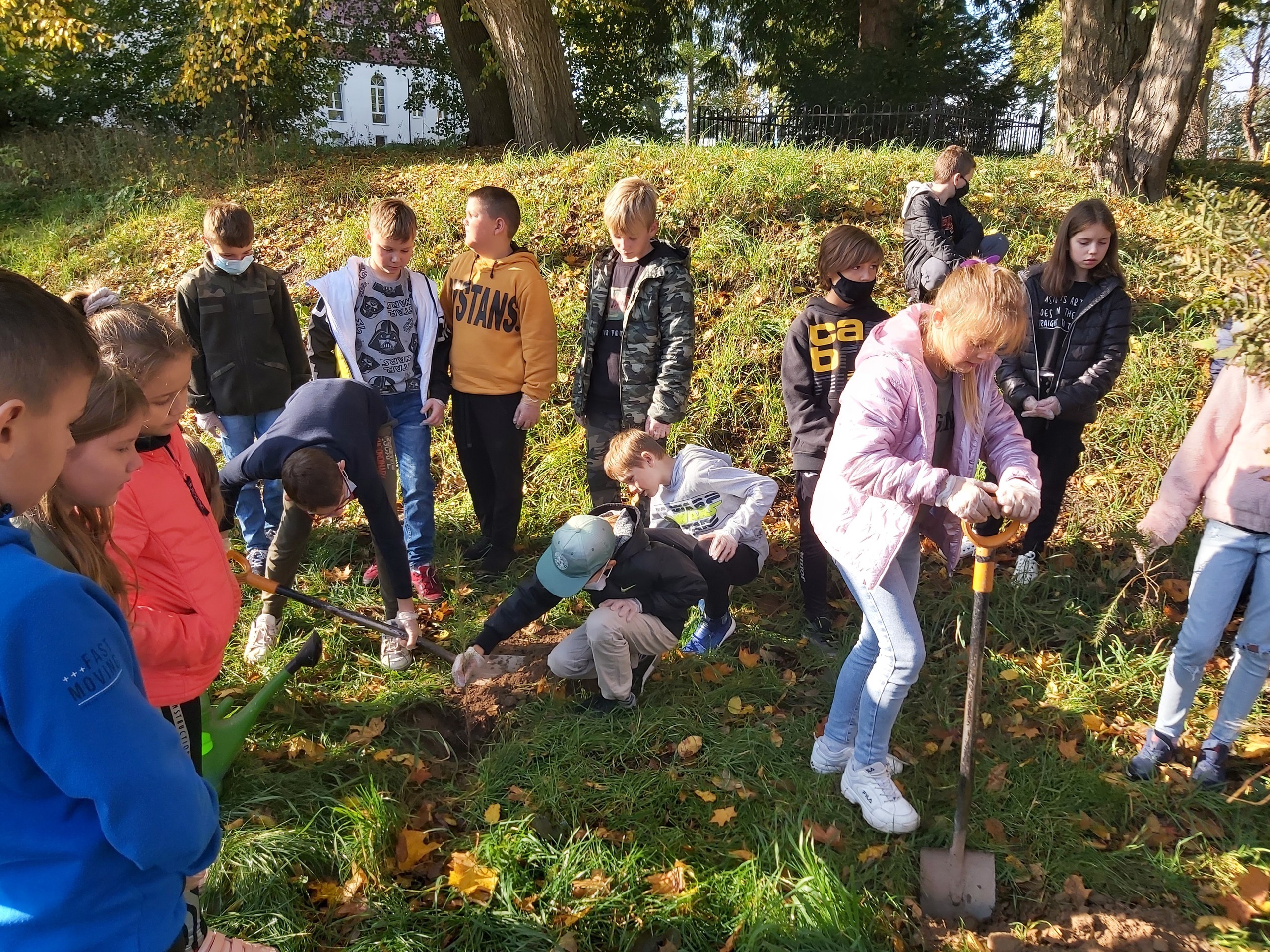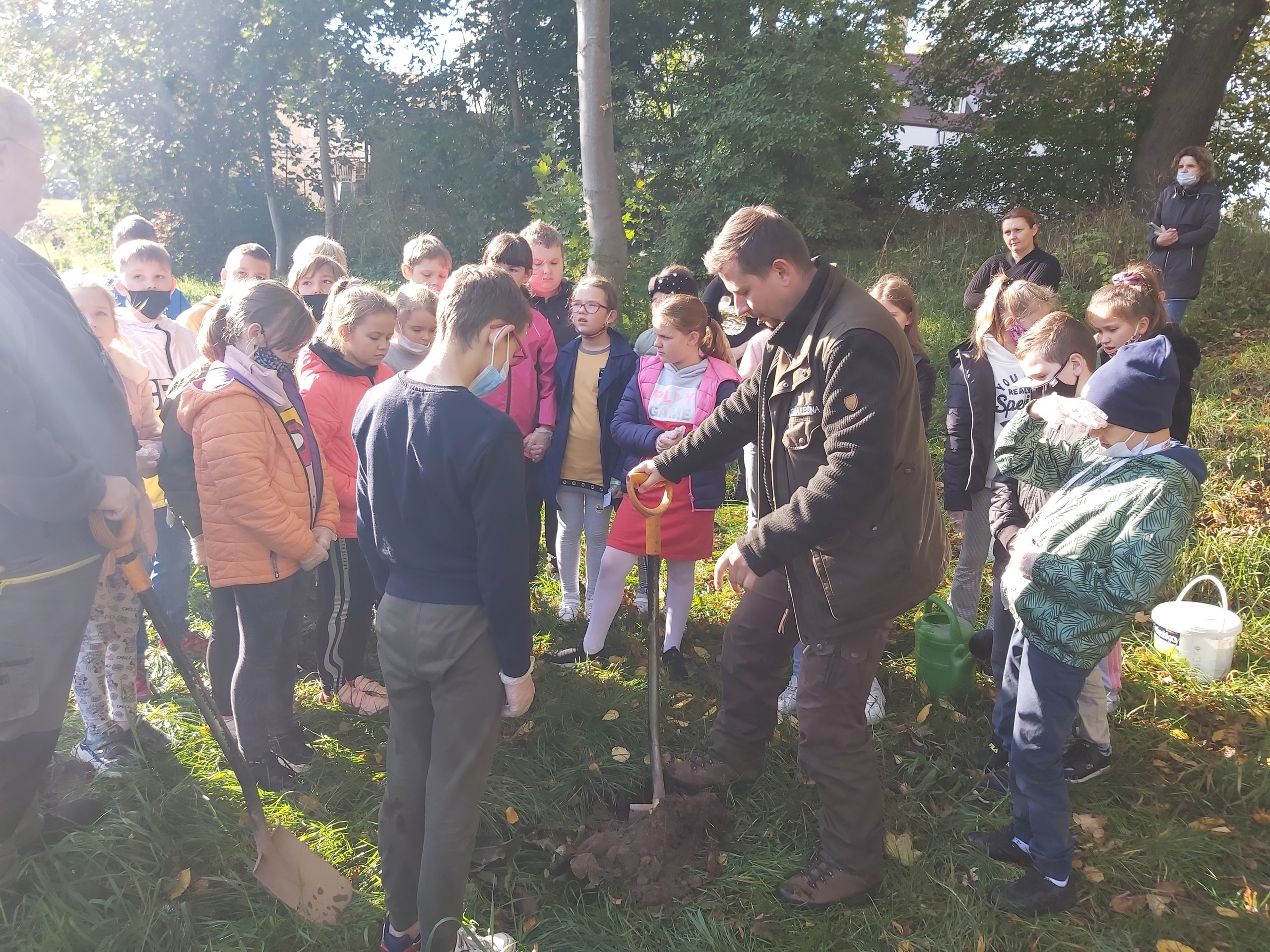 8 października 2021 roku w naszej szkole obchodziliśmy Międzynarodowy Dzień Drzewa, który wypada kalendarzowo - 10 października. Uczniowie naszej szkoły dokonali nasadzeń 40 sadzonek drzew iglastych i liściastych za Placem Zabaw w Wicku, czyli tzw. "Bagnem Shreka". Sadzonki otrzymaliśmy w prezencie od szkółki leśnej "Okalica", należącej do Nadleśnictwa Cewice. Głównie były to gatunki jarzębiny, modrzewia i świerku. Pan Paweł Grzenkowicz z Nadleśnictwa Lębork wyjaśnił sposób prawidłowego nasadzenia drzewek oraz ich prawidłowej pielęgnacji. Wcześniej na małej sali gimnastycznej z klasami czwartymi przeprowadził prelekcję na temat szeroko pojętej zrównoważonej gospodarki leśnej. Dzieci miały więc wyjątkową możliwość "od podstaw" wykopania dołka i zasadzenia drzewka. Dziękujemy z całego serca Nadleśnictwu Cewice za sadzonki oraz Nadleśnictwu Lębork za prelekcję, a Pani Iwonie Mielewczyk, naszej nauczycielce świetlicy, za organizację spotkania z leśnikiem.
