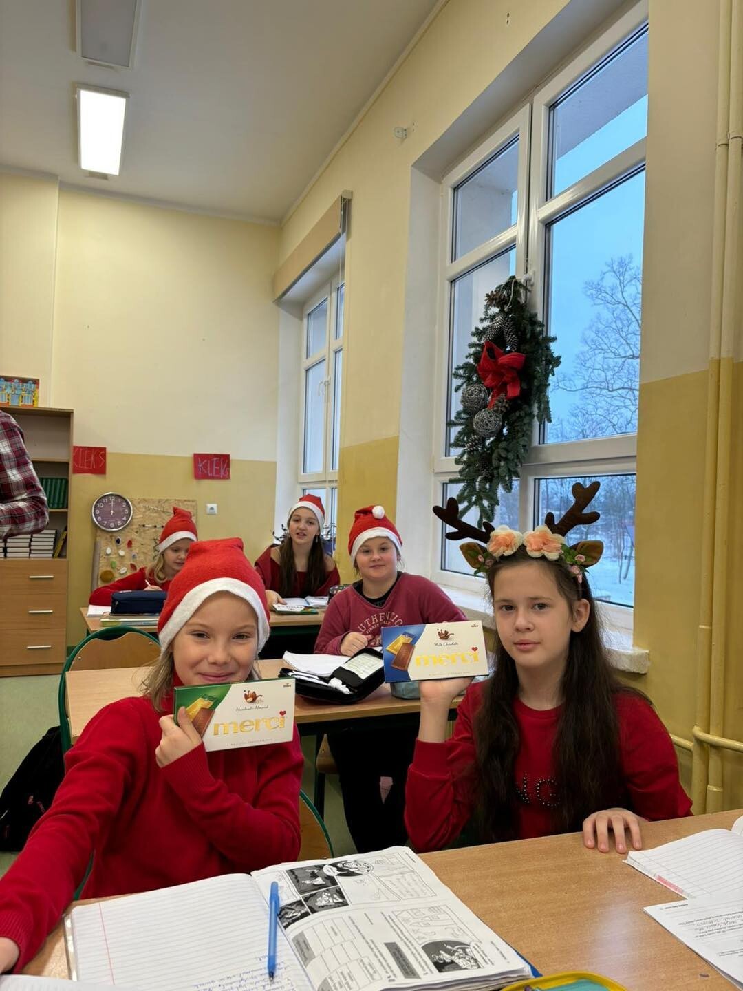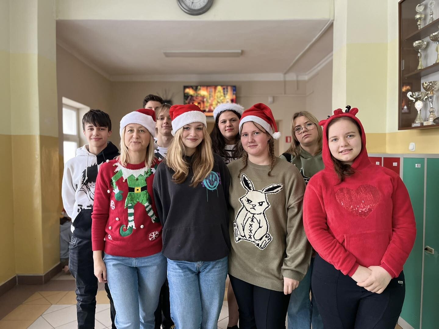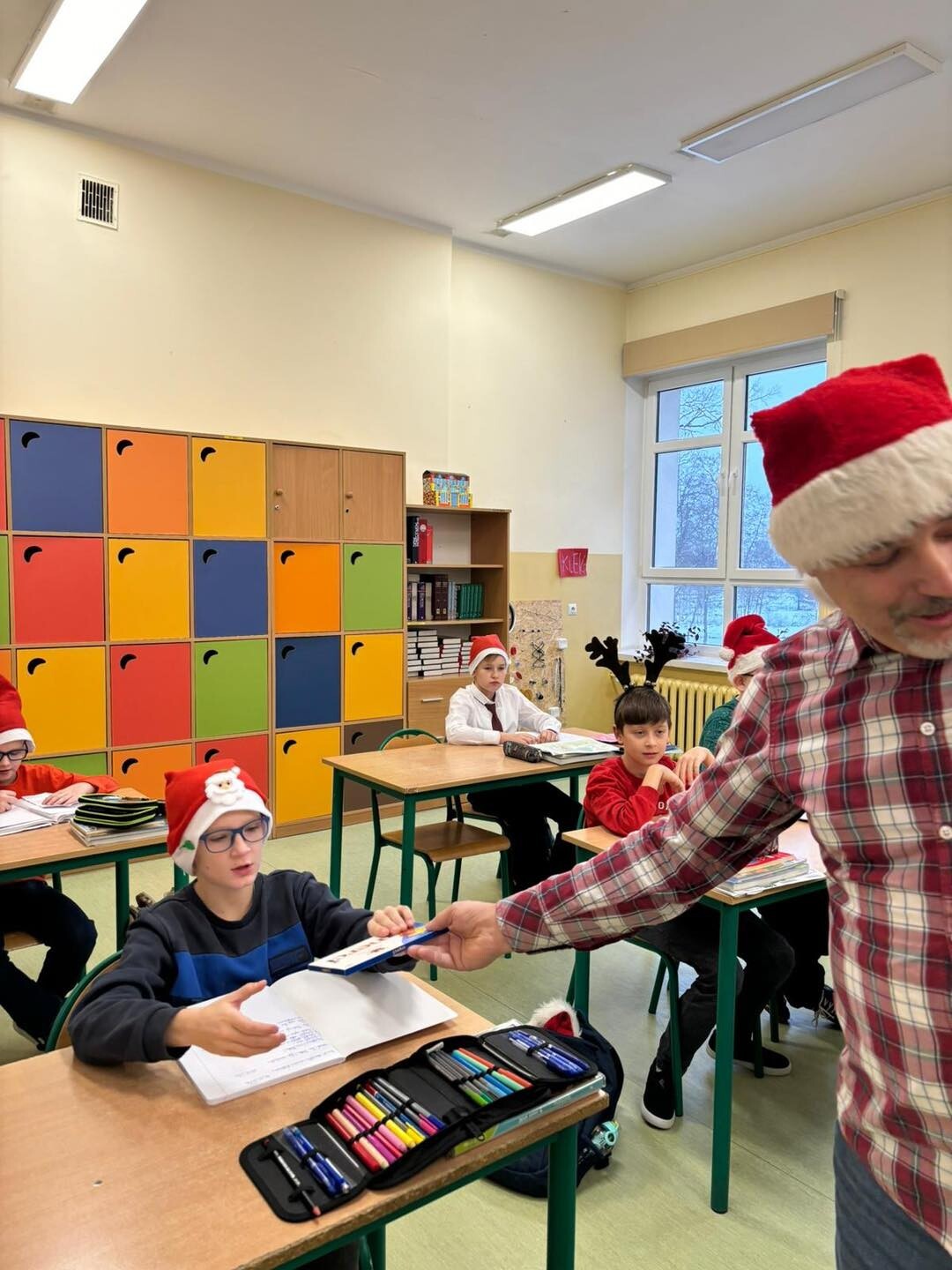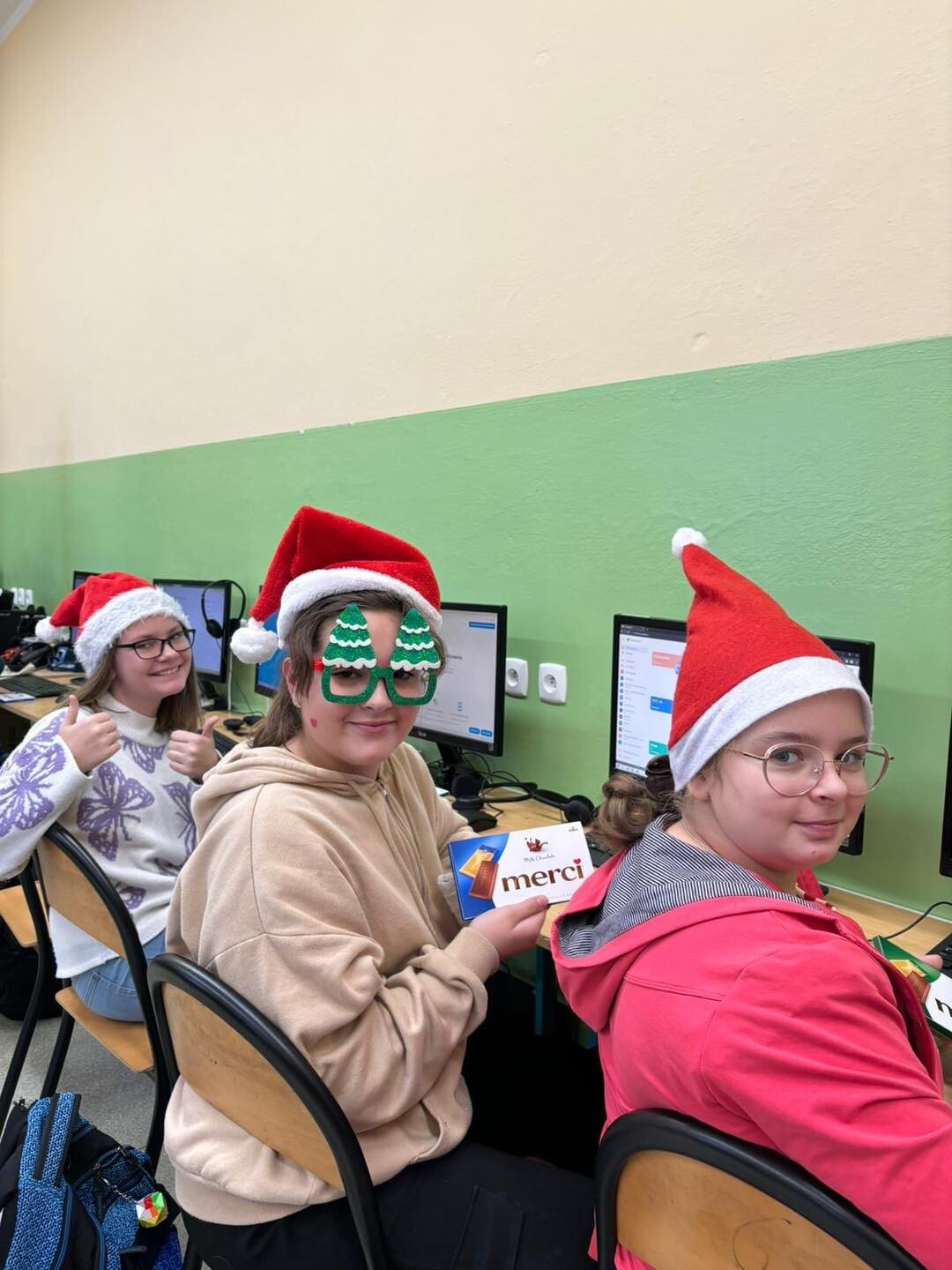 Tradycyjnie też w klasach odbywały się Mikołajki, a w klasach I-III Turniej Mikołajkowy. Na przerwach można było usłyszeć świąteczną muzykę i zobaczyć morze szczęśliwych Mikołajów, którzy dzięki swoim czapkom tego dnia uniknęli pytania na lekcjach.