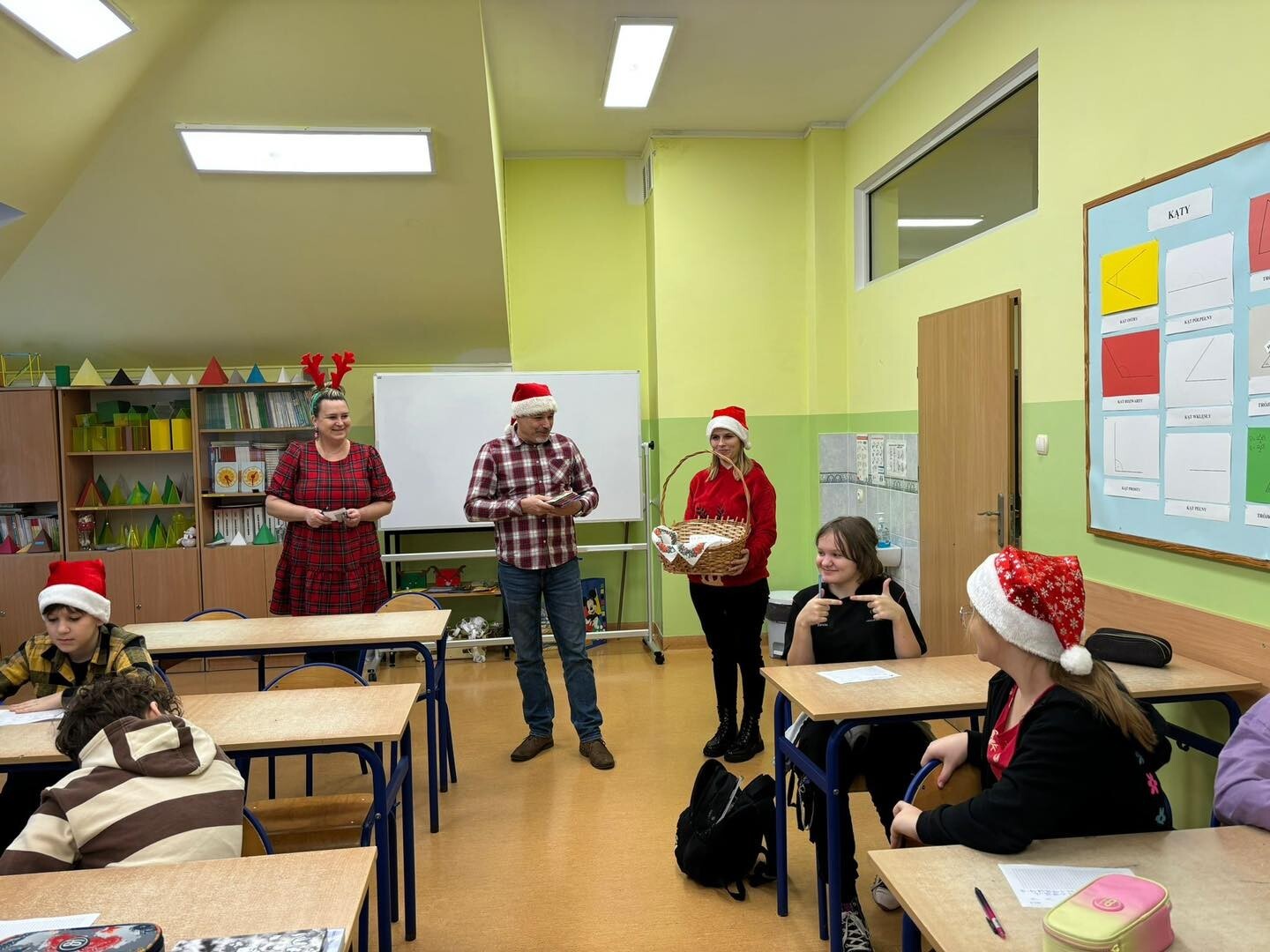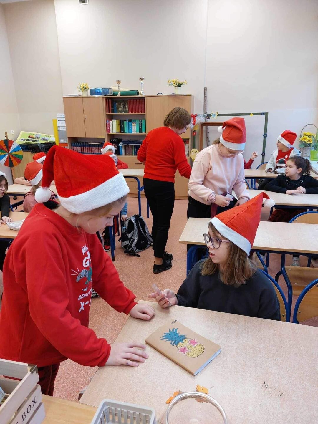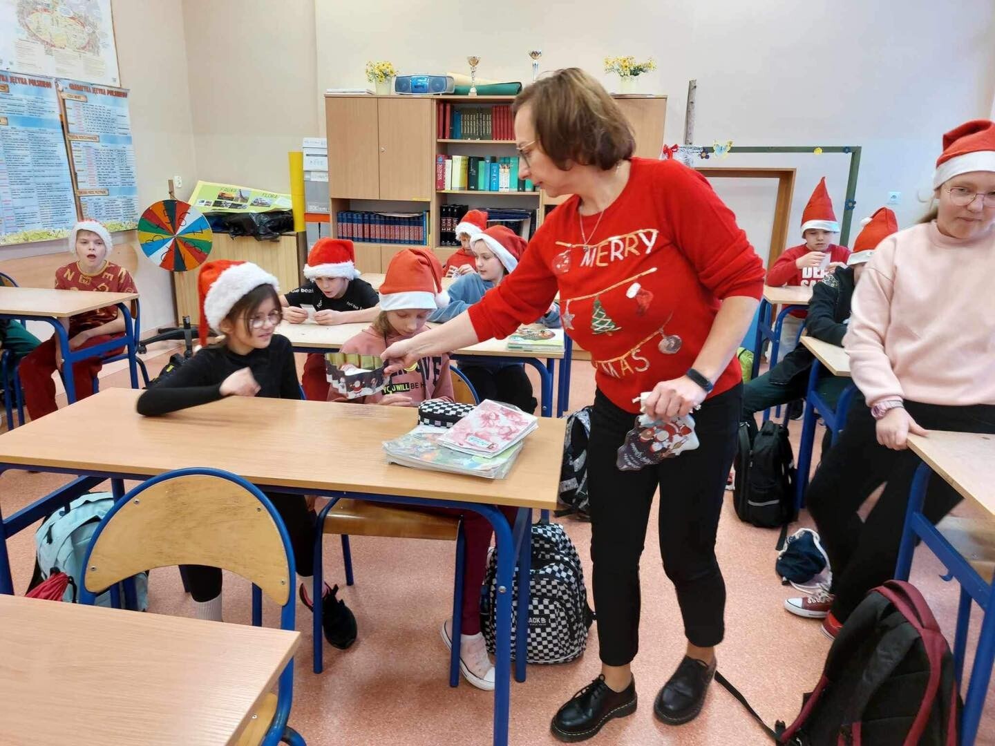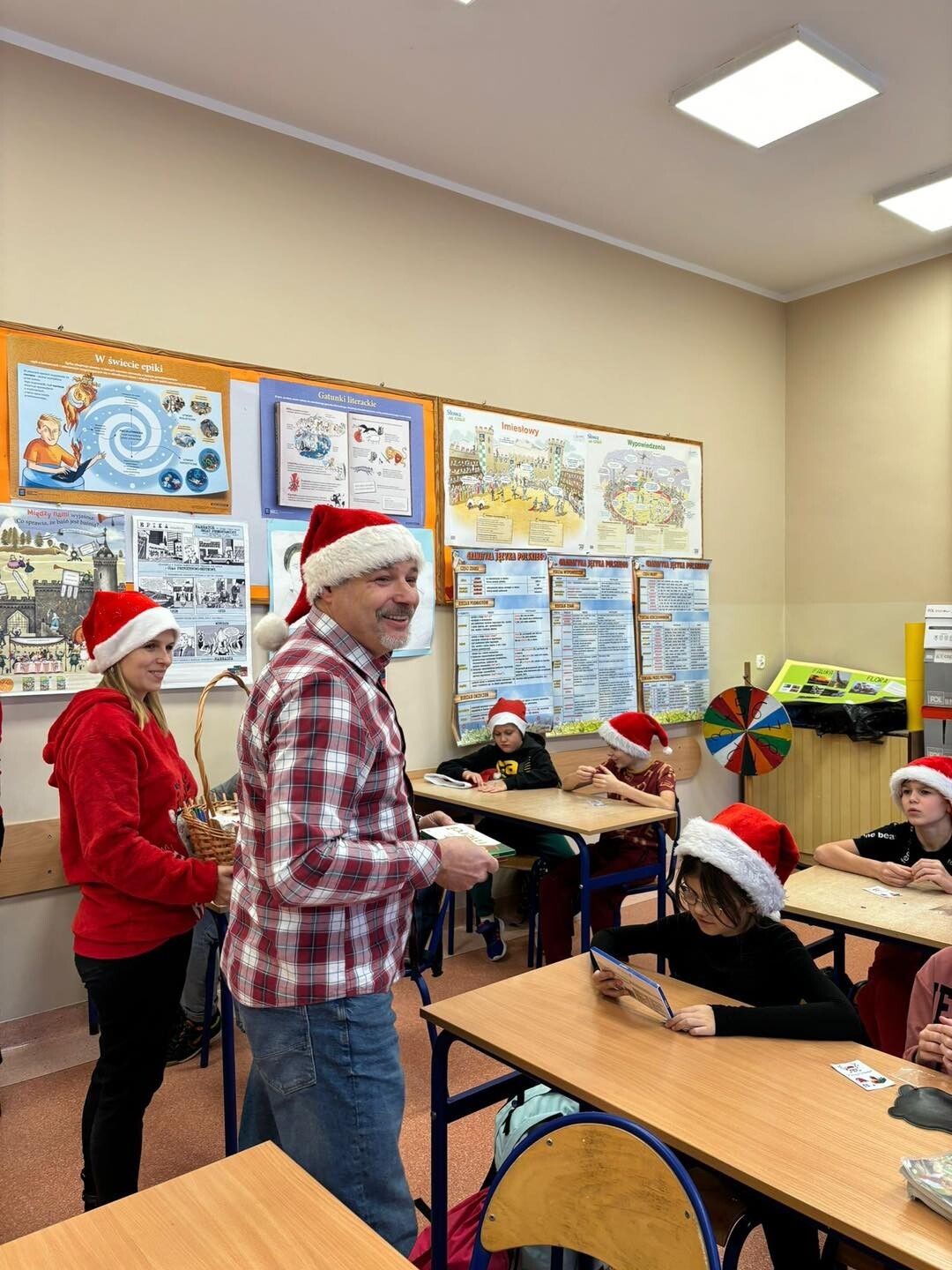 Tradycyjnie też w klasach odbywały się Mikołajki, a w klasach I-III Turniej Mikołajkowy. Na przerwach można było usłyszeć świąteczną muzykę i zobaczyć morze szczęśliwych Mikołajów, którzy dzięki swoim czapkom tego dnia uniknęli pytania na lekcjach.