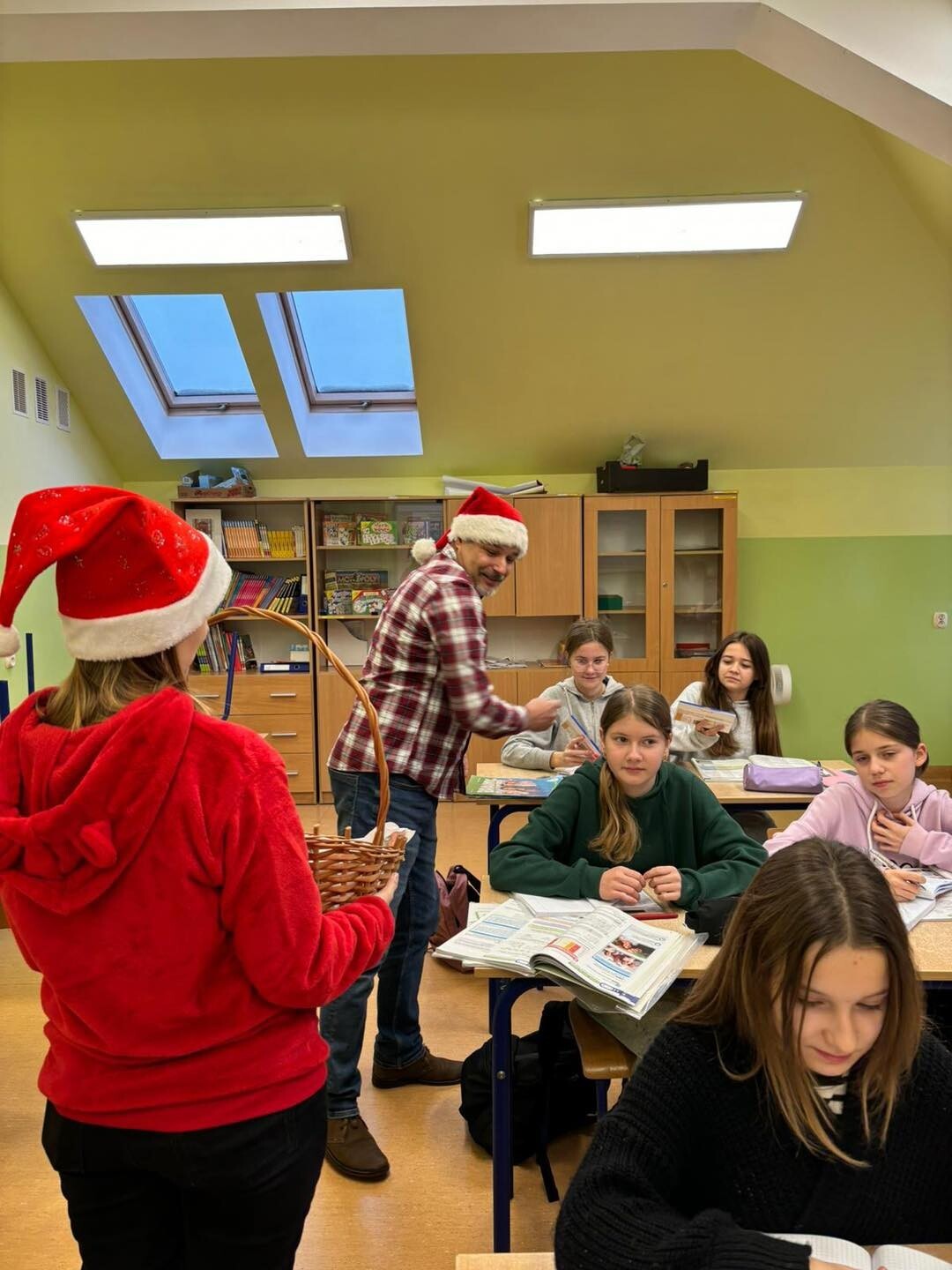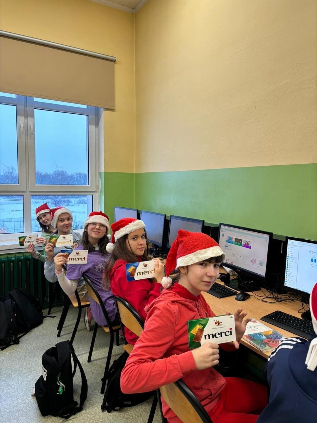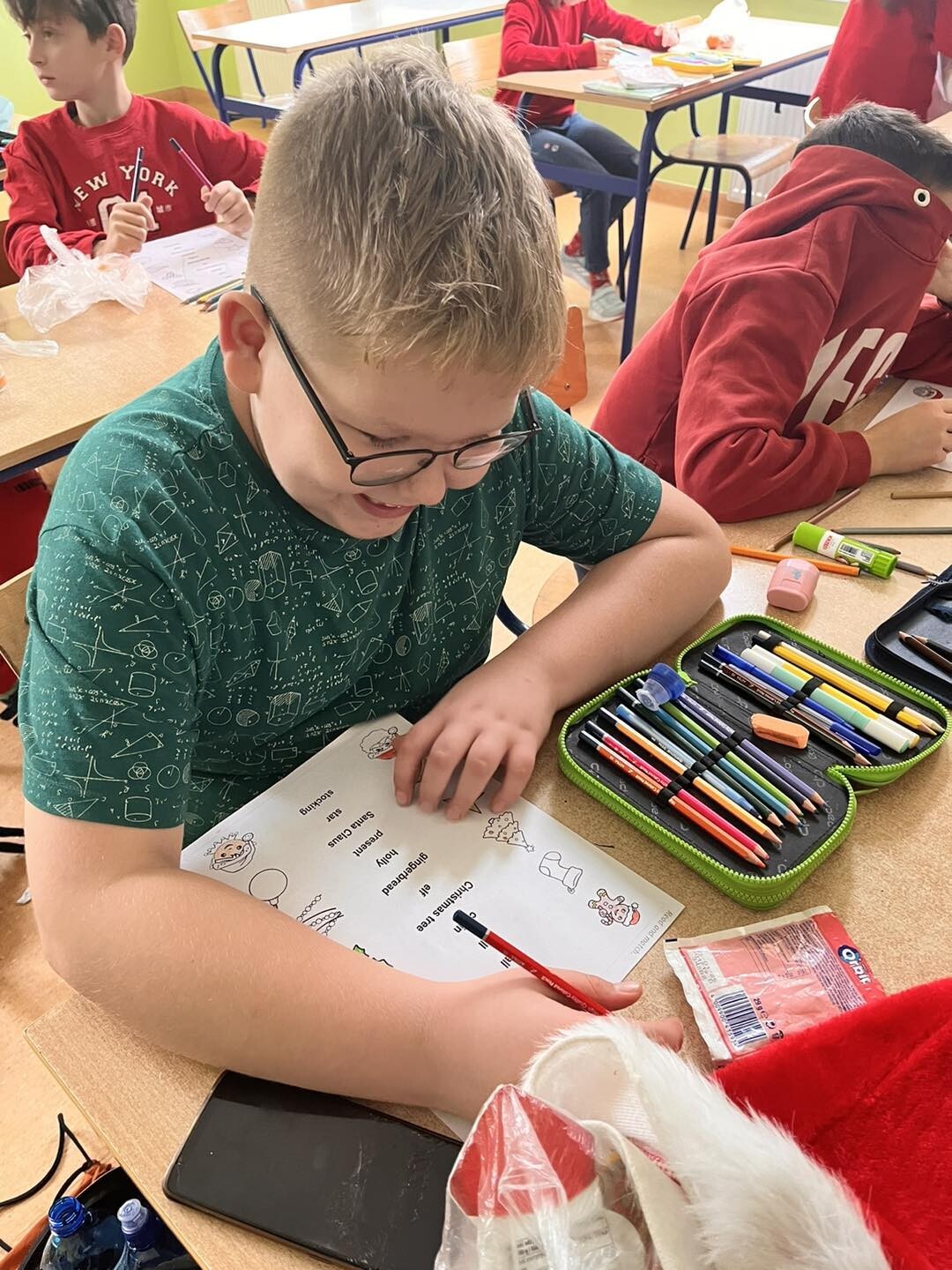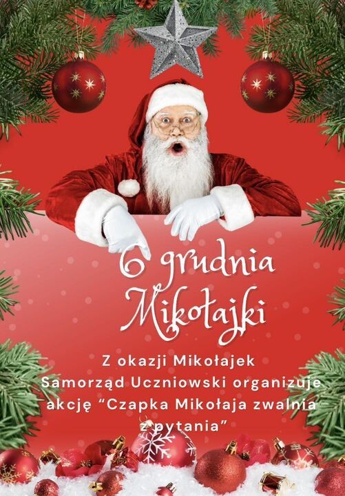 Tradycyjnie też w klasach odbywały się Mikołajki, a w klasach I-III Turniej Mikołajkowy. Na przerwach można było usłyszeć świąteczną muzykę i zobaczyć morze szczęśliwych Mikołajów, którzy dzięki swoim czapkom tego dnia uniknęli pytania na lekcjach.
