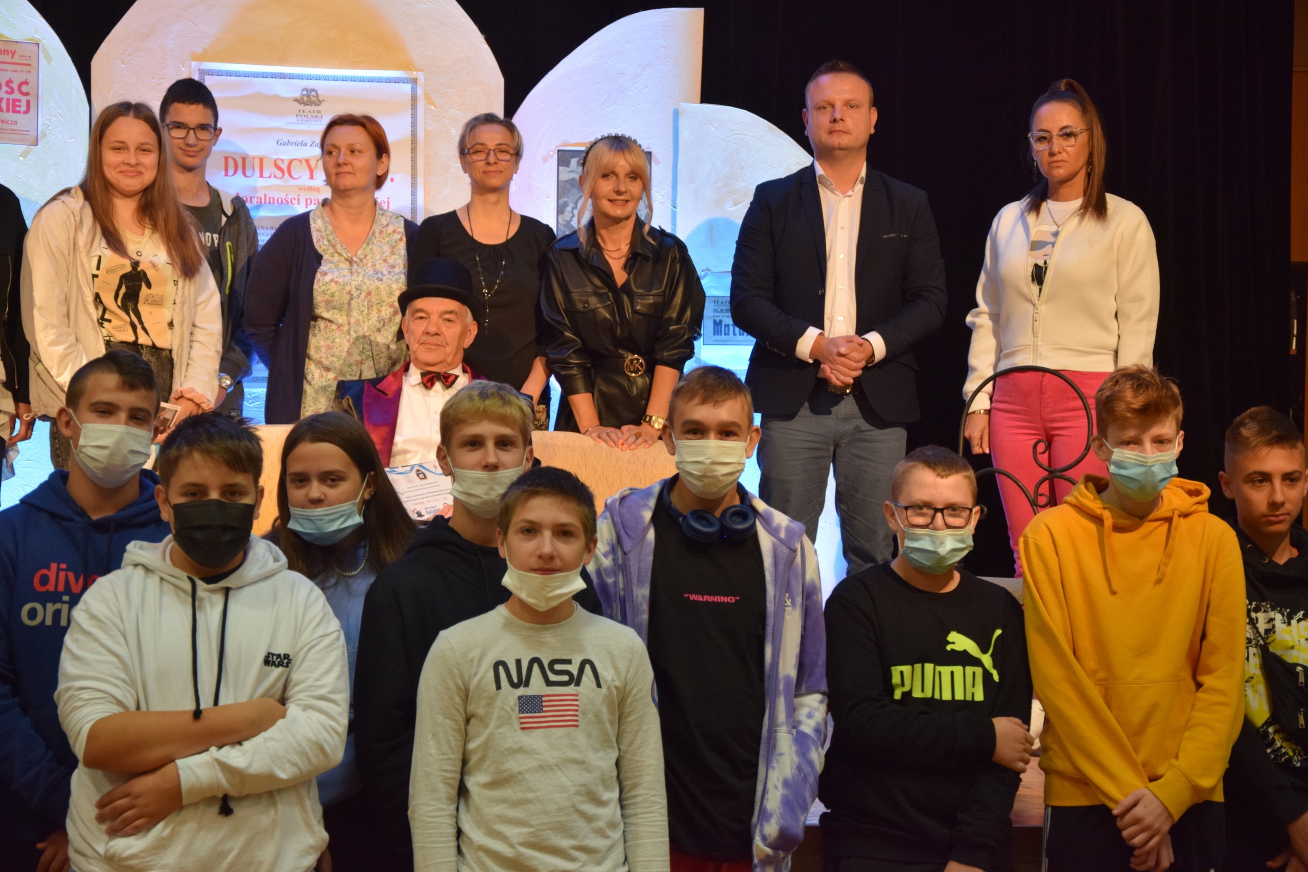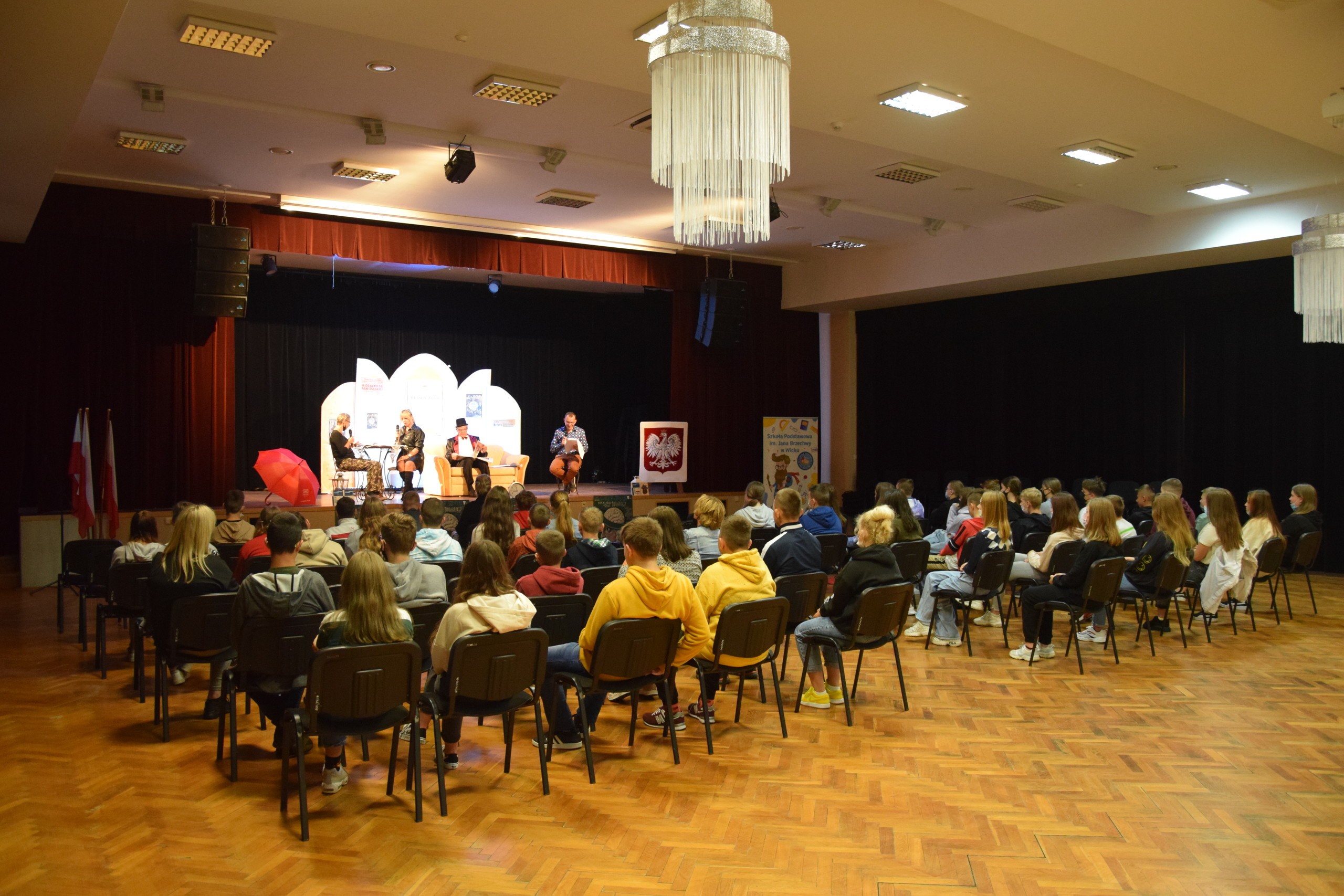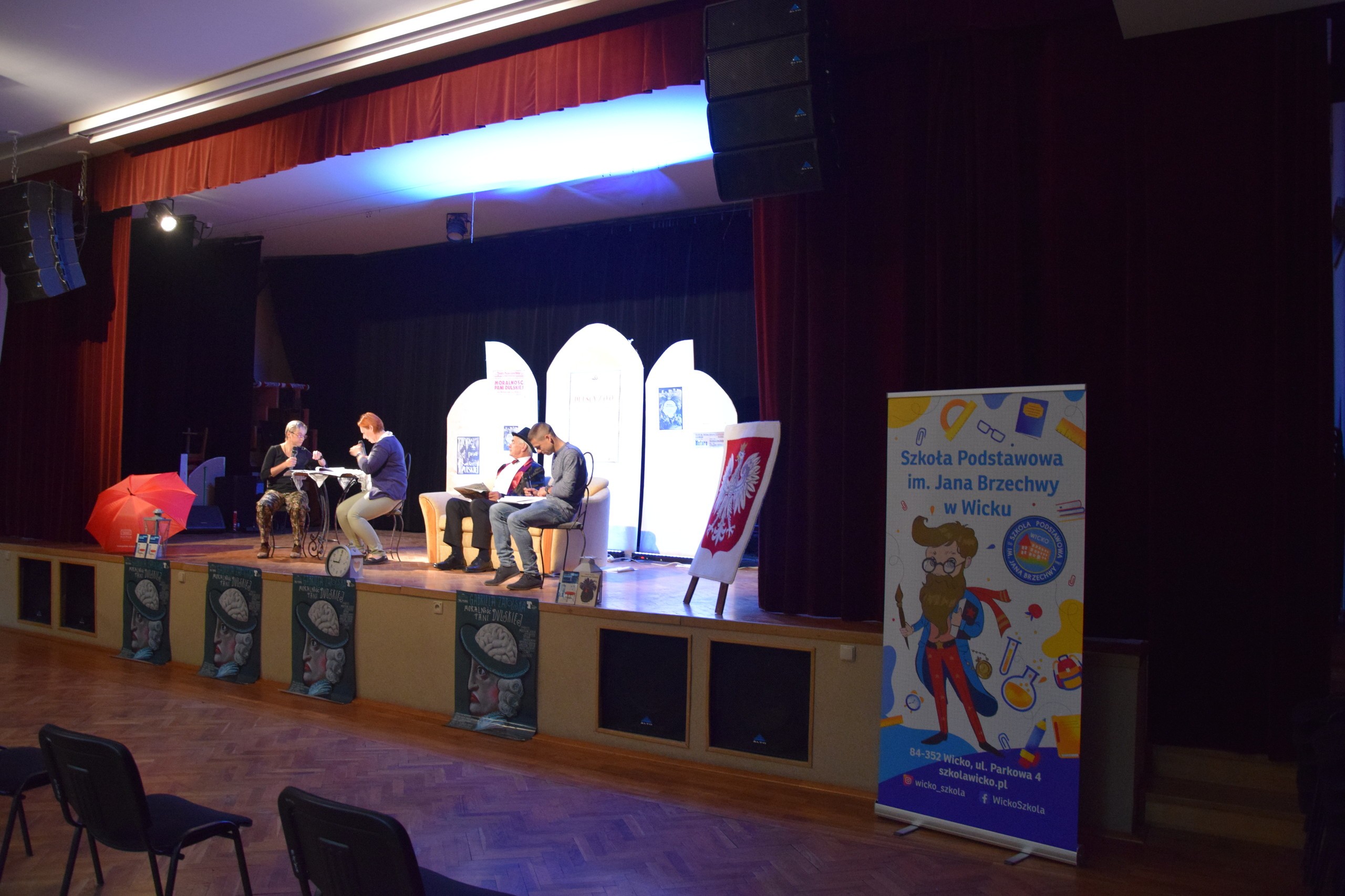 Już tradycyjnie, w przeddzień ogólnopolskich obchodów Narodowego Czytania, tj. w piątek, 3 września 2021, w Gminie Wicko zorganizowano to czytelnicze święto. Tym razem zebrani goście, nauczyciele i ósmoklasiści Szkoły Podstawowej im. Jana Brzechwy w Wicku zmierzyli się z fragmentem tekstu dramatu Gabrieli Zapolskiej pt. „Moralność pani Dulskiej”. Gościem honorowym tegorocznego Narodowego Czytania w sali widowiskowej Gminnego Ośrodka Kultury i Sportu był Wiceprzewodniczący Rady Gminy, Kazimierz Bernad, który zagrał rolę Felicjana Dulskiego. Reszta obsady sztuki Zapolskiej zmieniała się rotacyjnie co kilka minut. Najpierw czytelniczą pałeczkę przejęli zaproszeni goście i organizatorzy teatralnego przedsięwzięcia: (w kolejności wejścia na scenę) m. in. Dyrektor SP Wicko, Michał Sałata, Dyrektor Biblioteki Publicznej Gminy Wicko, Iwona Szymichowska czy też Dyrektor GOKiS-u, Rafał Skibiński. Potem w role postaci scenicznych wcielili się również uczniowie klas ósmych oraz nauczyciele Szkoły Podstawowej w Wicku.