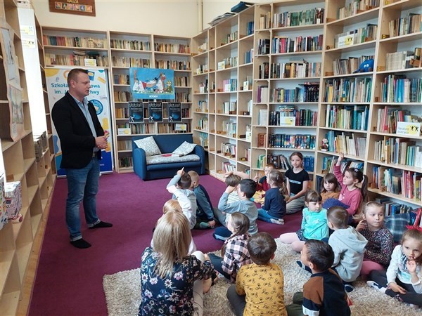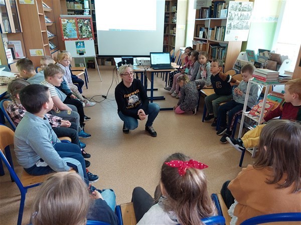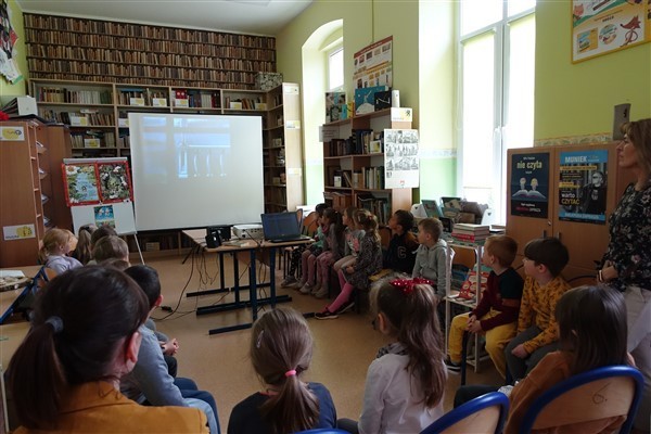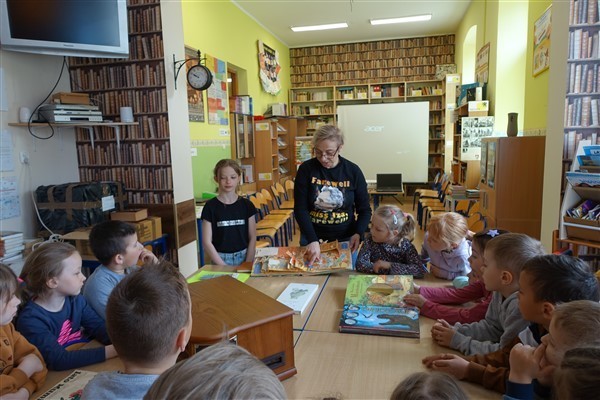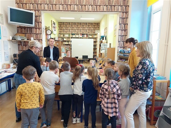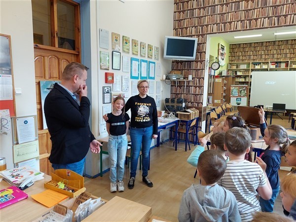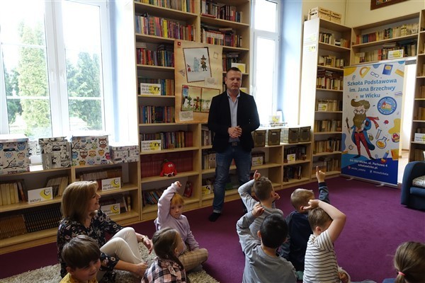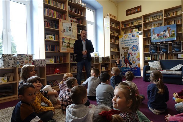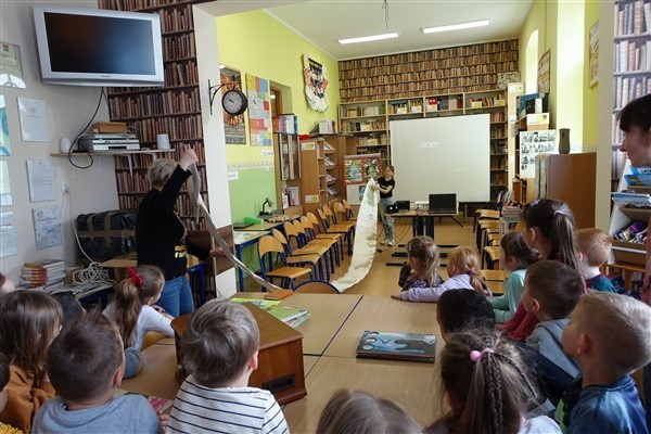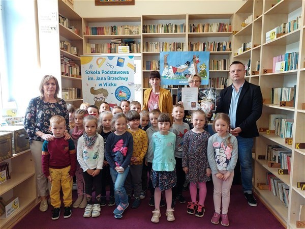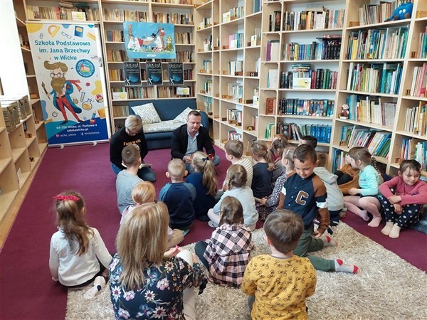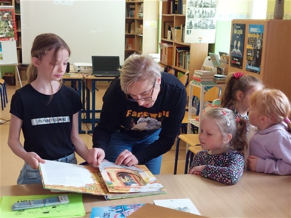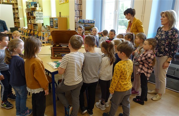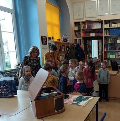 Najstarsza książka w Bibliotece Szkolnej w Wicku, jaką zobaczyły podczas pierwszych swoich zajęć bibliotecznych, ma ponad 120 lat. Najdłuższa – harmonijkowa - ma po rozłożeniu długość ponad 3 metrów. Jest też książka grająca, jest również taka, która świeci, a także kilka książek przestrzennych oraz z ruchomymi, zmieniającymi się obrazkami. Był też moment poświęcony czarnym płytom winylowym, odtwarzanym na gramofonie. A wszystko to w towarzystwie nie tylko dorosłych opiekunów, ale również przy zaangażowaniu bibliotecznej przewodniczki po szkolnych zbiorach, uczennicy Leny Klawikowskiej z kl. IIIB.