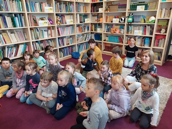 Powodów do muminkowego spotkania z dziećmi było kilka. Po pierwsze starszaki i średniaki mogły poznać miejsce, już niedługo stanowiące część szkoły, do której będą codziennie chodzić. Dowiedziały się też, co - oprócz książek – znajduje się w szkolnej bibliotece i co ciekawego można tu robić.