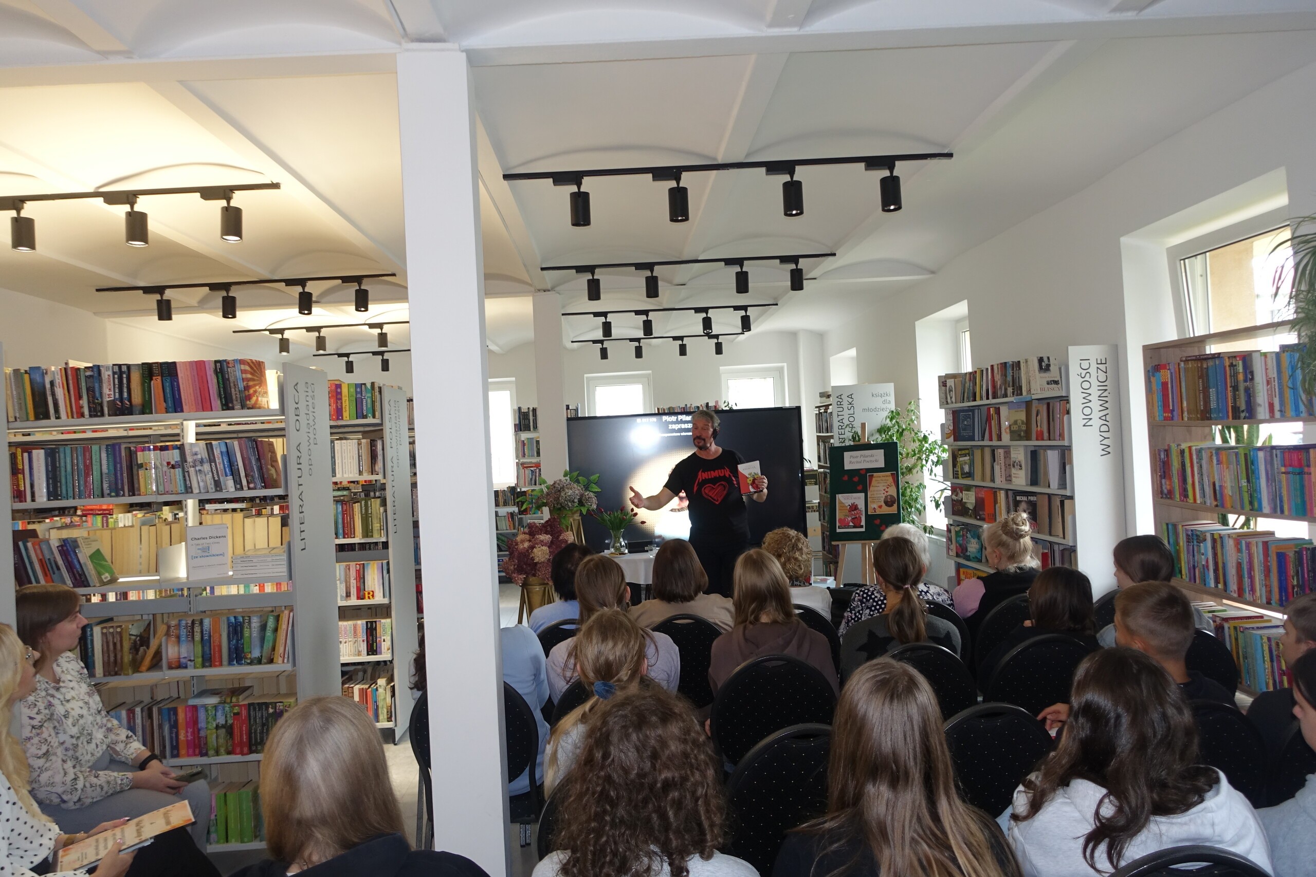 W piątek, 24 października 2025, w Bibliotece Publicznej Gminy Wicko siódmoklasiści naszej szkoły uczestniczyli w spotkaniu z Panem Piotrem Pilarskim, który przy muzyce Chopina przedstawił swoje wiersze. Dziękujemy za zaproszenie!