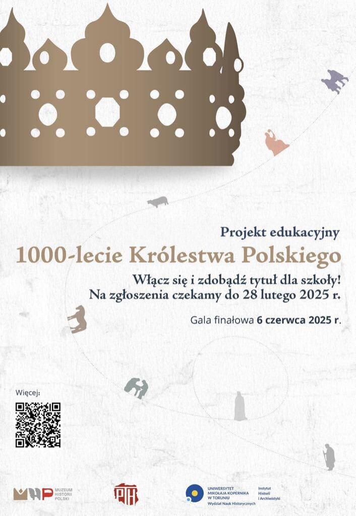 Z dumą informujemy, że nasi uczniowie biorą udział w wyjątkowym programie edukacyjnym "1000-lecie Królestwa Polskiego”, który przybliża historię naszej ojczyzny, jej kulturę i dziedzictwo. To niezwykła okazja, by zgłębić dzieje Polski, rozwijać patriotyzm i zdobywać cenne doświadczenia. Organizatorem programu jest Muzeum Historii Polski.