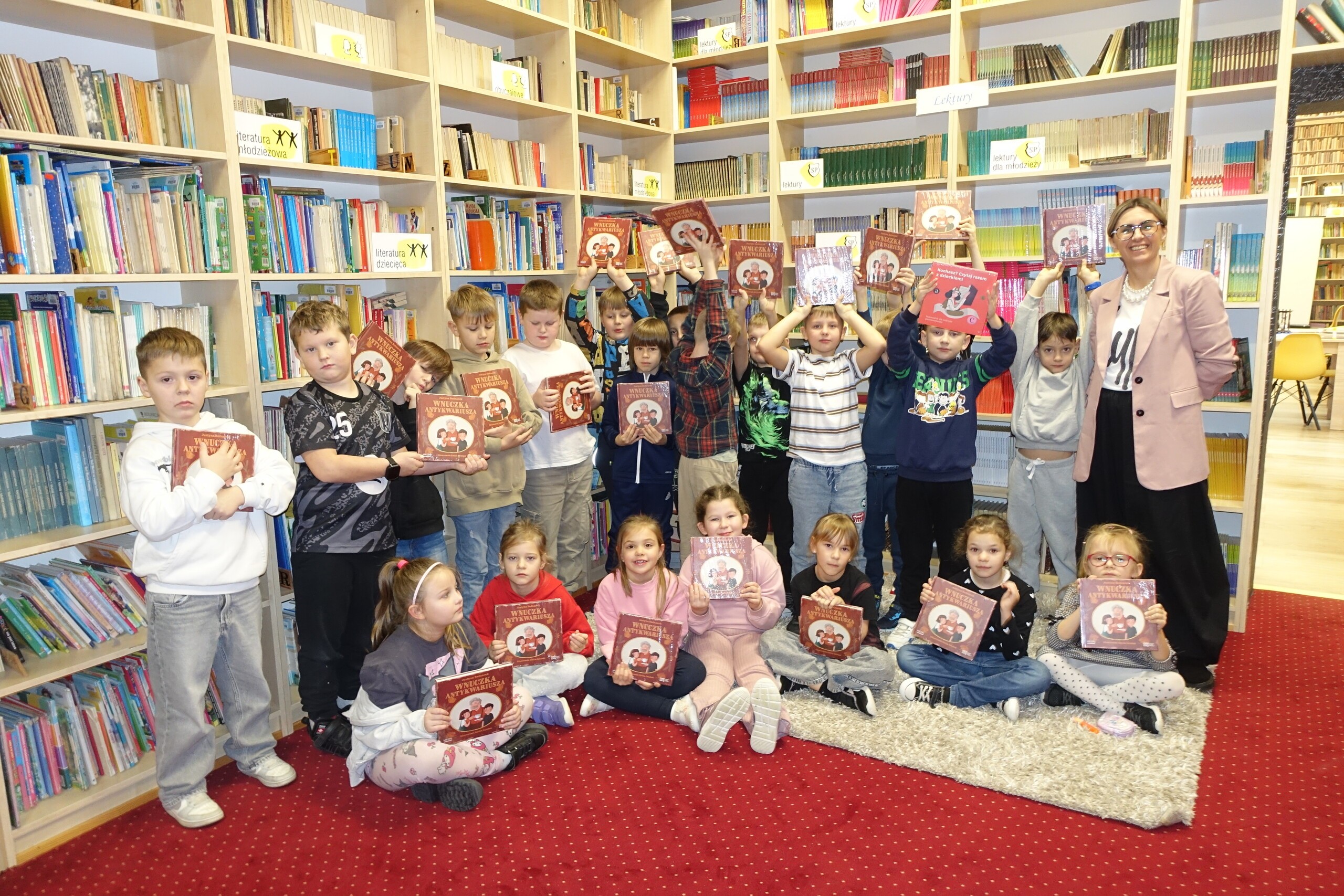 W darmowym pakiecie wyprawki znajduje się książka niezwykle popularnej i lubianej pisarki dla dzieci, Justyny Bednarek, którą nasi uczniowie mogą kojarzyć jako autorkę serii lekturowych książek o przygodach skarpetek. Tym razem jest to książka pt. "Wnuczka antykwariusza" z dołączonym folderem dla rodziców. Miłego czytania!