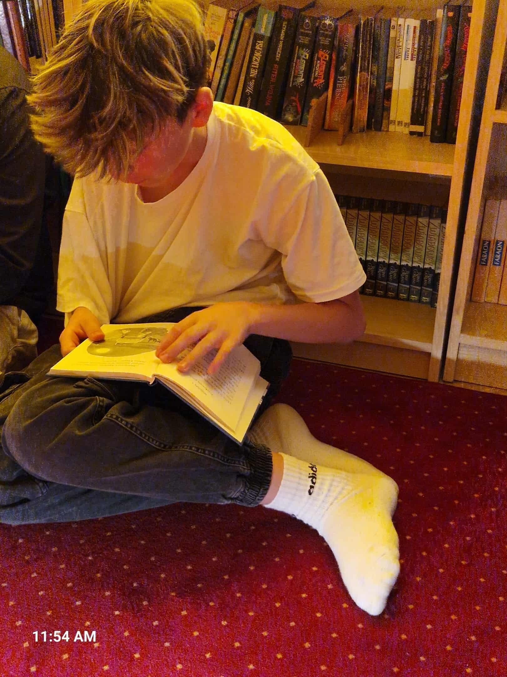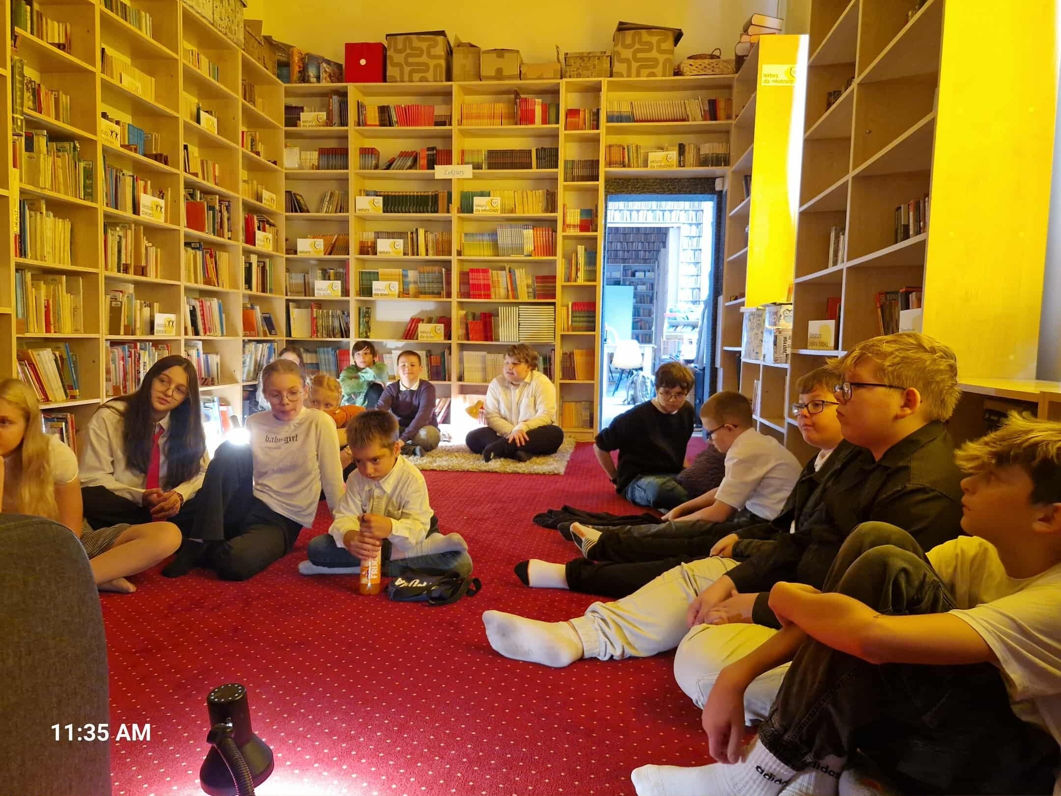Trwa akcja NOC BIBLIOTEK w naszej szkolnej bibliotece. W poniedziałek, 13 października 2025, tym razem uczniowie z kl. VIB mieli okazję włączyć się do wspólnego czytania w zaciemnionym pomieszczeniu naszej czytelni. Wspólnie przeczytali fragmenty jednej z książek z gatunku fantasy ulubionej serii nastolatków: "Nelly Rapp i Noc Czarownic", szwedzkiego autora Martina Widmarka. Do następnego przeczytania!