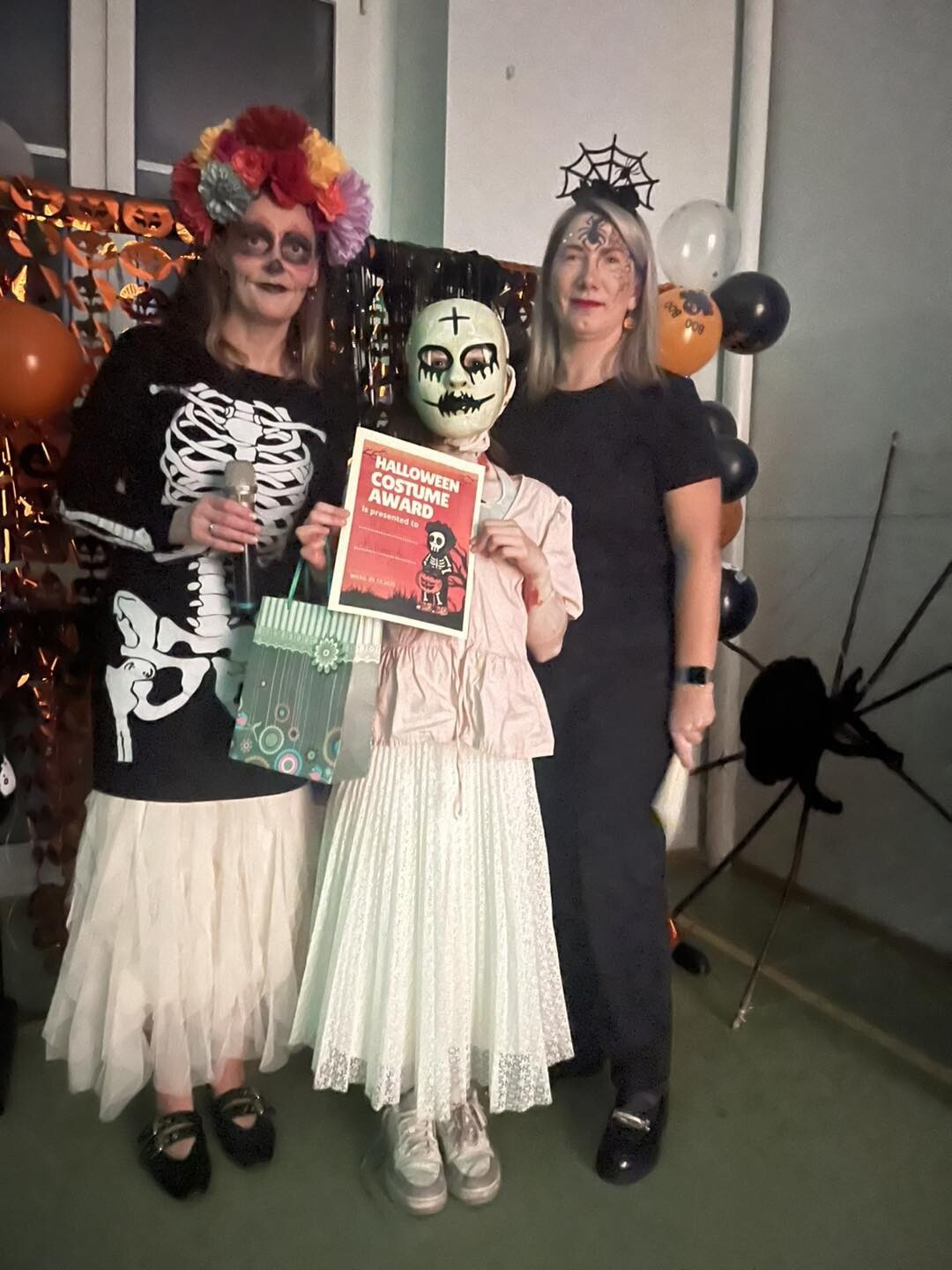 Z okazji Halloween i Dnia Dyni nauczycielki języków obcych zorganizowały szkolny konkurs na najbardziej kreatywne dyniowo-halloweenowe przebranie. Wszyscy uczestnicy wykazali się ogromną pomysłowością i zaangażowaniem – było kolorowo, zabawnie i oczywiście… trochę strasznie!