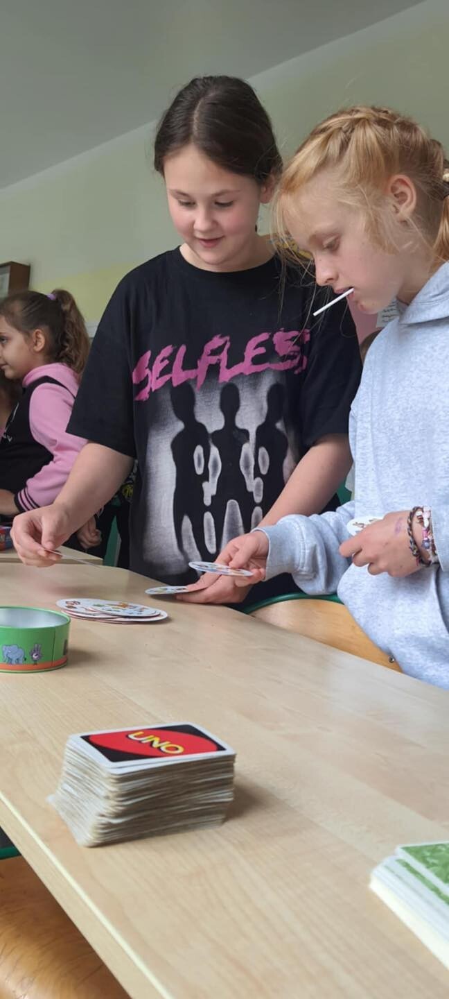 Było mnóstwo śmiechu, zdrowej rywalizacji i integracji między klasami. Nie zabrakło klasyków takich, jak: „Chińczyk”, „Monopoly”, „Dobble” czy „Uno”, ale pojawiły się też mniej znane, za to bardzo wciągające gry strategiczne i kooperacyjne.