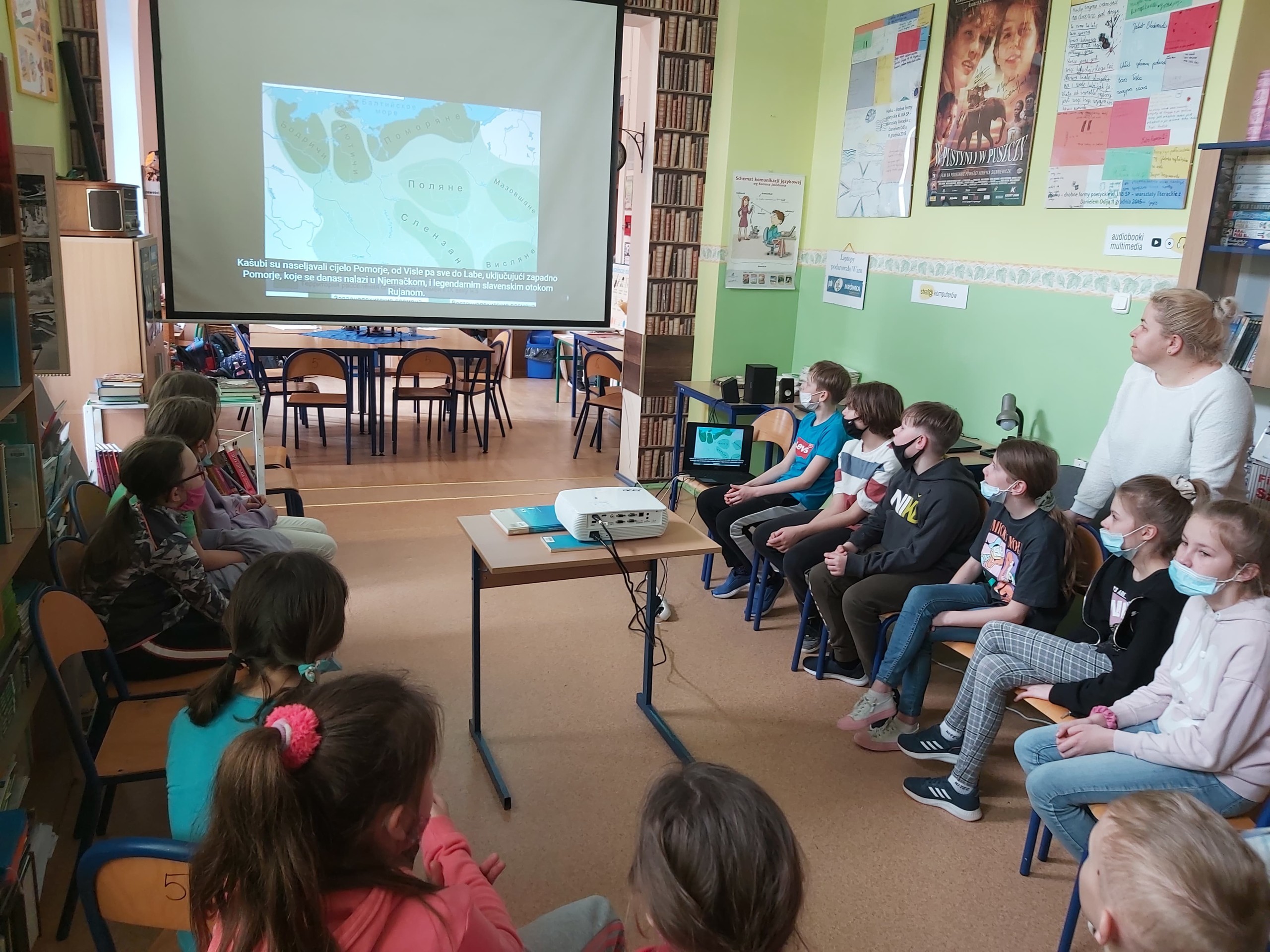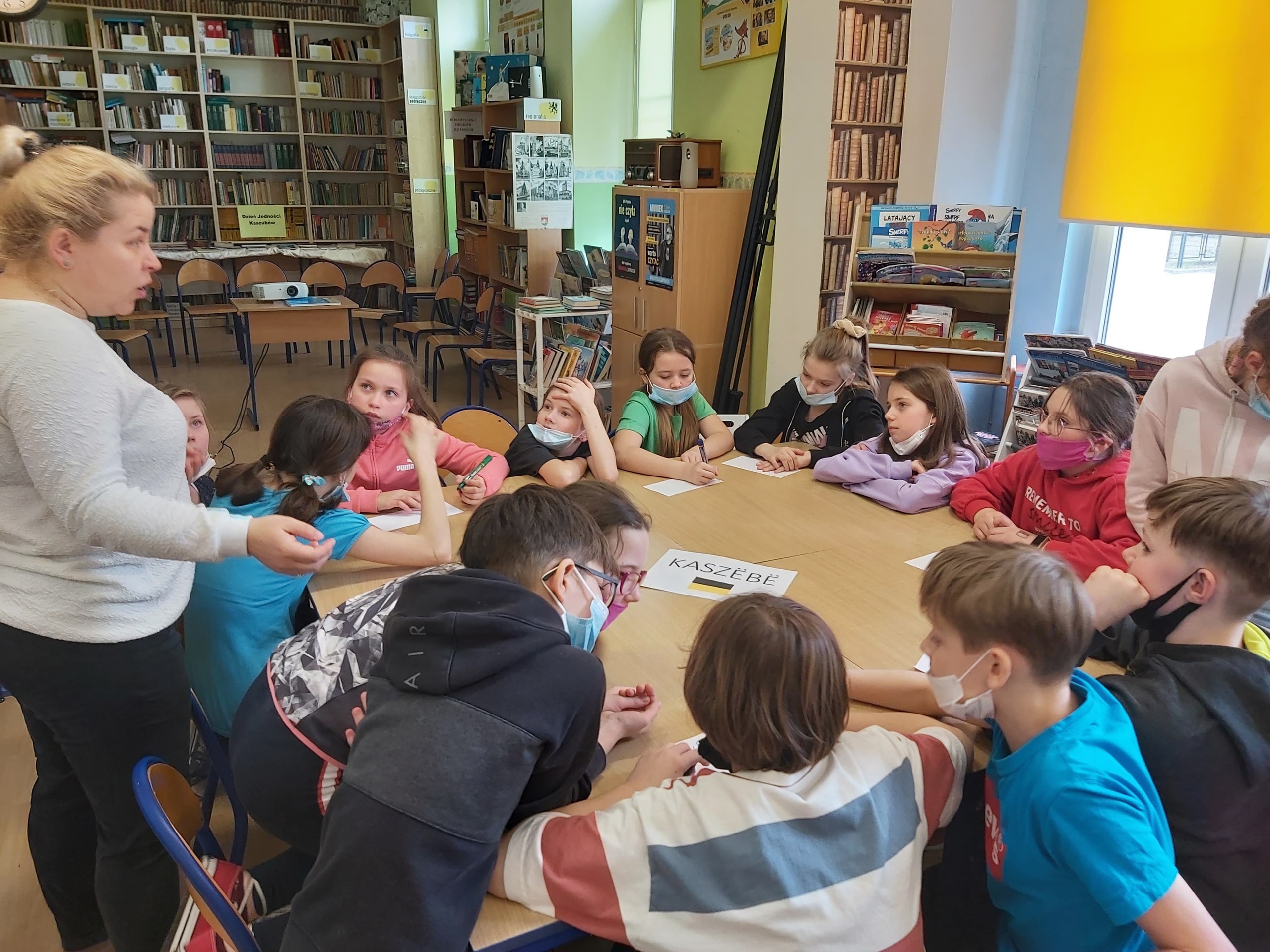Dzieci zapoznały się także ze zbiorami z działu Regionalia, poświęconego m. in. pisarzom kaszubskim oraz kulturze i historii regionu Kaszub oraz z zebranymi w albumach książkowych dziełami malarskimi i rękodziełem z tych ziem. Wysłuchały legendy o pochodzeniu kaszubskiego gryfa i dowiedziały się o symbolice barw na kaszubskiej fladze.