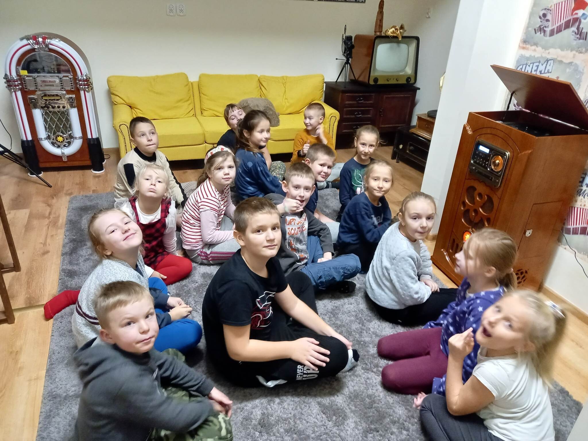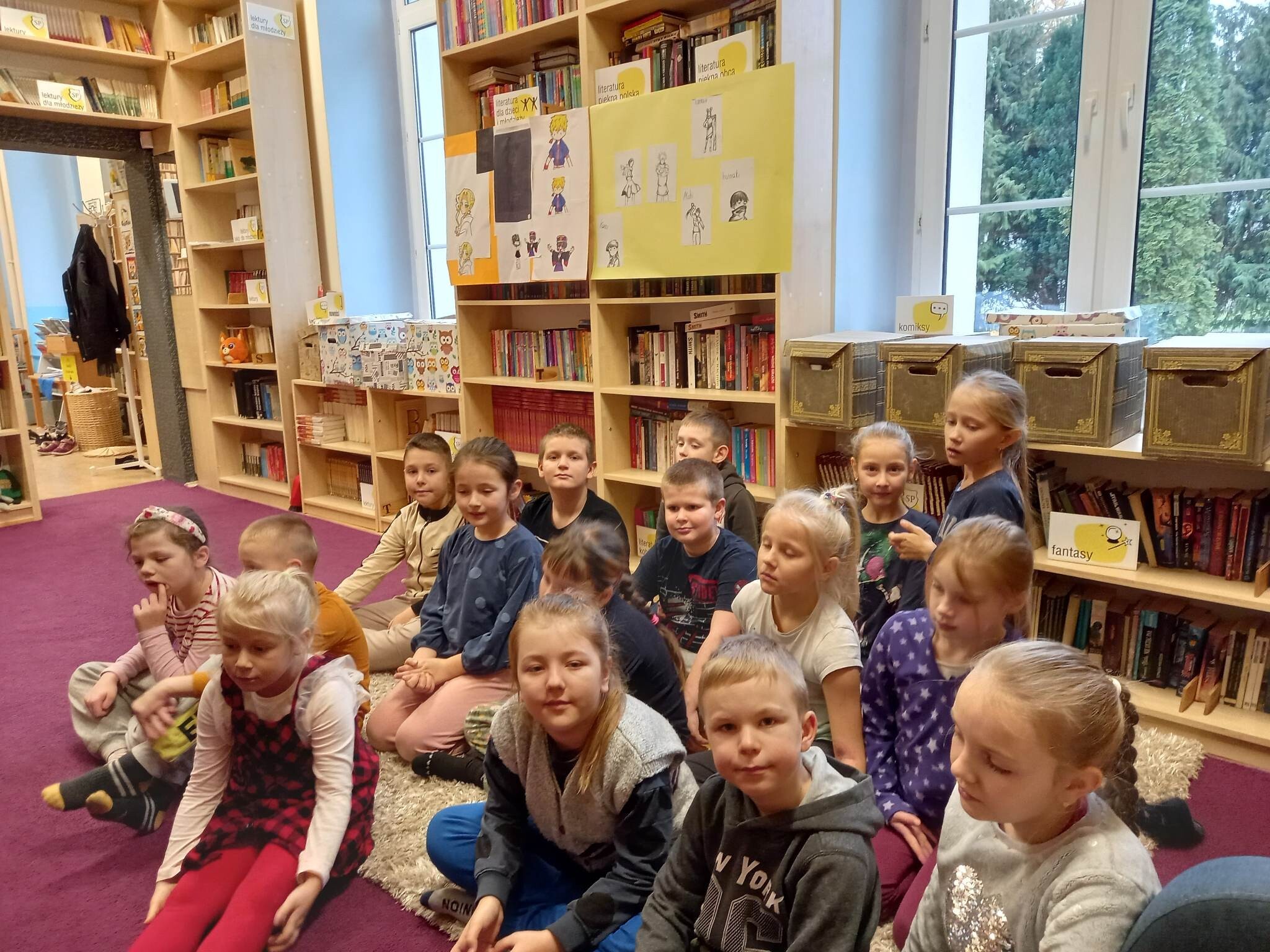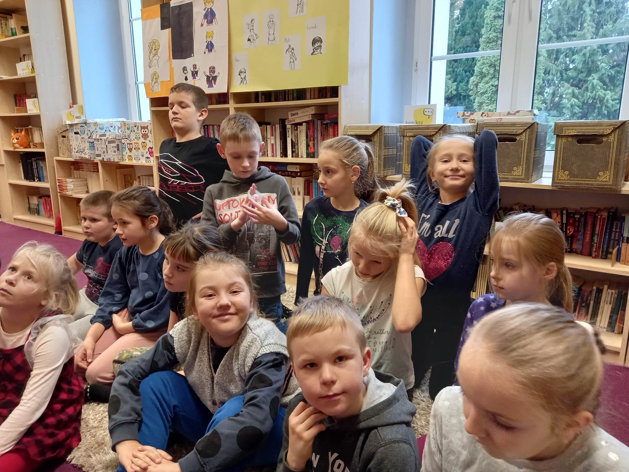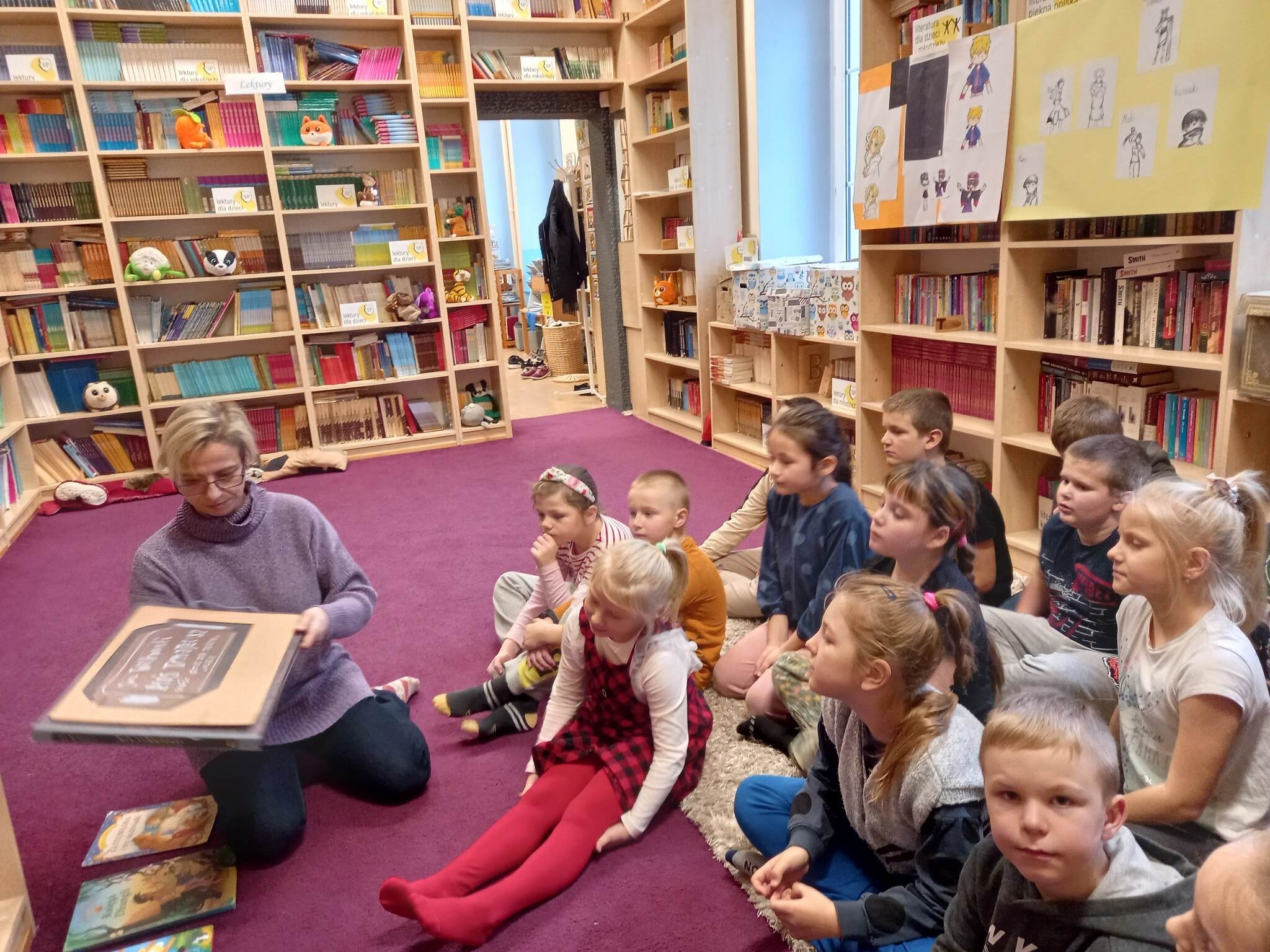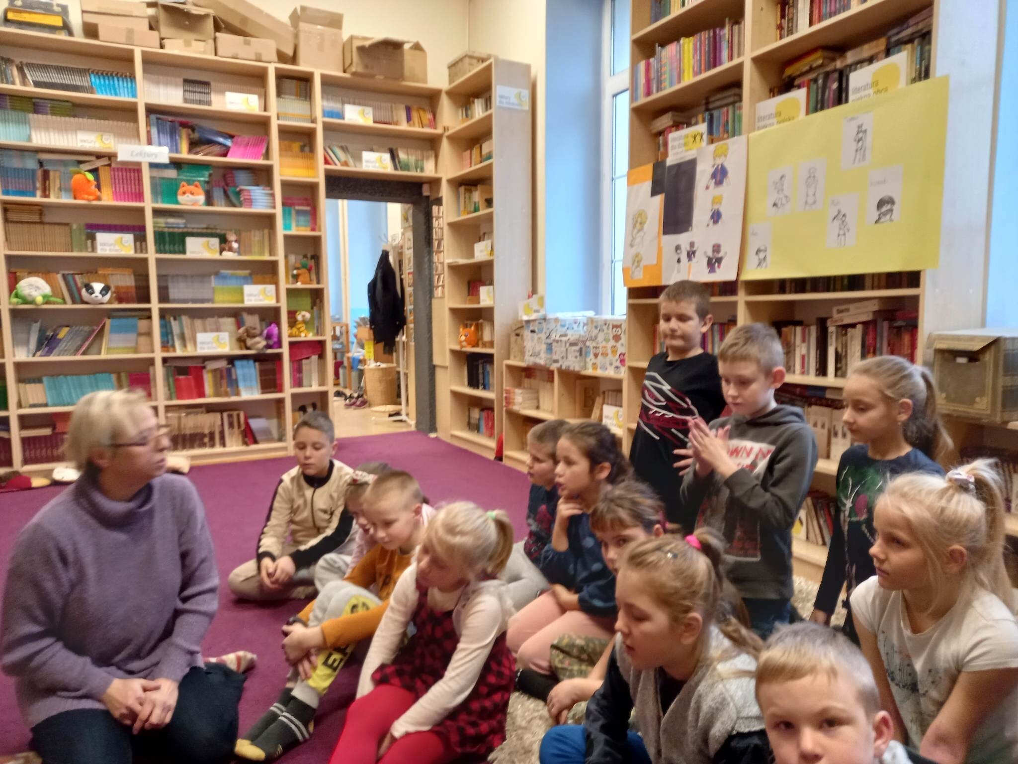 Równie ciekawie było w szkolnej bibliotece. Uczniowie kl. II zostali zaproszeni na zajęcia o misiach w literaturze, czyli o niedźwiedzich bohaterach bajek,baśni, legend i dobranocek. Na początku drugoklasiści zostali zaproszeni do nowej Mediateki, gdzie wysłuchali fragmentu bajki muzycznej na płycie winylowej o przygodach misia Rymcimci i psiuńcia autorstwa Jana Wilkowskiego.