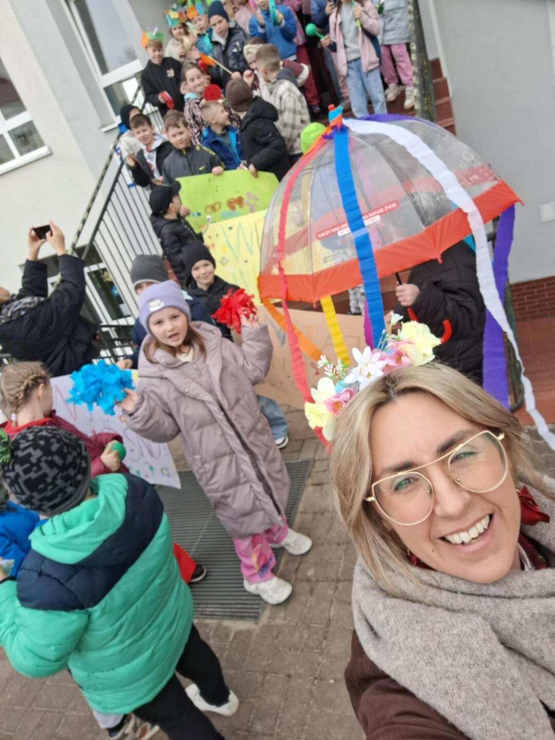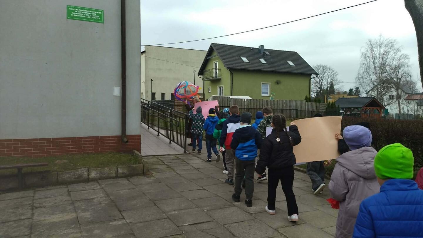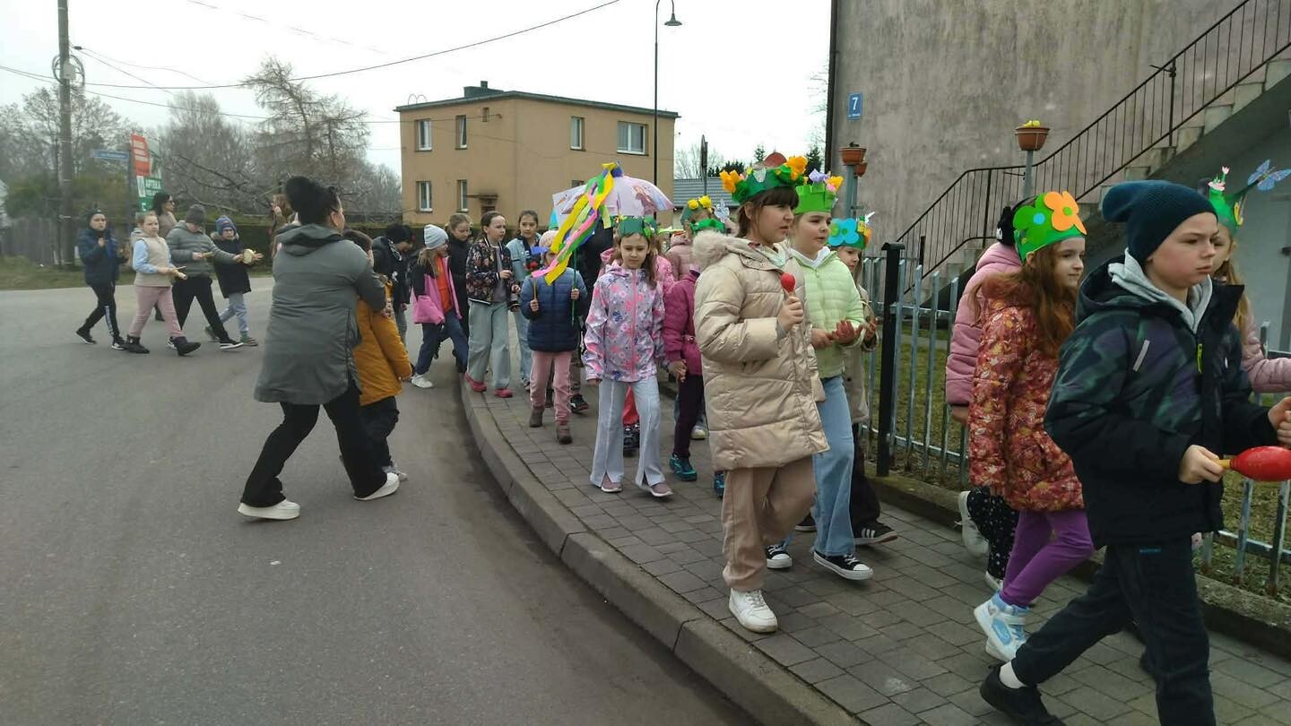 Na zakończenie każdy uczestnik oraz kibice otrzymali przypinki, mus i słodką niespodziankę. Tradycyjnie powitaliśmy Wiosnę radosnym, wiosennym pochodem.