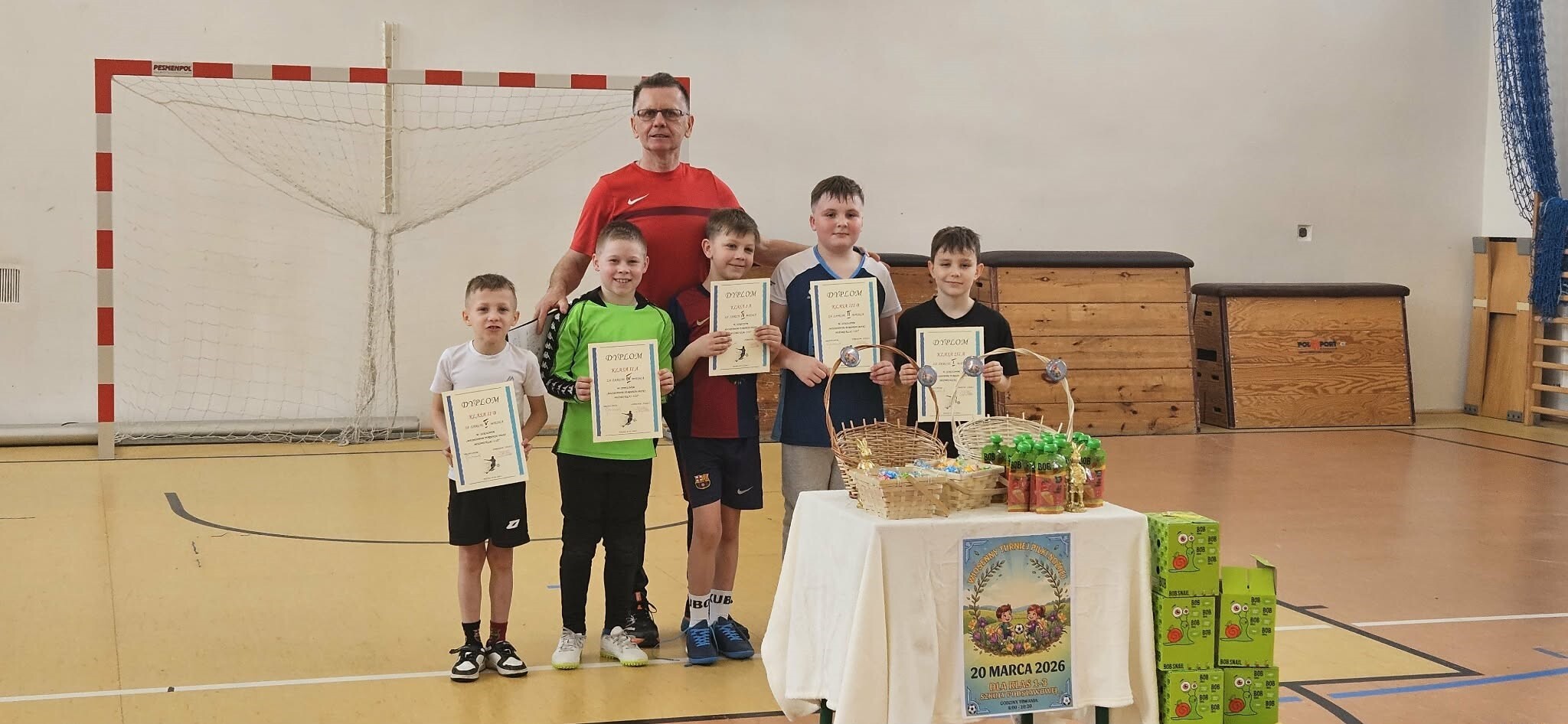 Z okazji Dnia Wiosny uczniowie klas I–III wzięli udział w pełnym emocji turnieju piłki nożnej. Rozgrywki były bardzo zacięte, a wszyscy uczestnicy wykazali się ogromnym zaangażowaniem – dlatego każdy mógł poczuć się zwycięzcą.