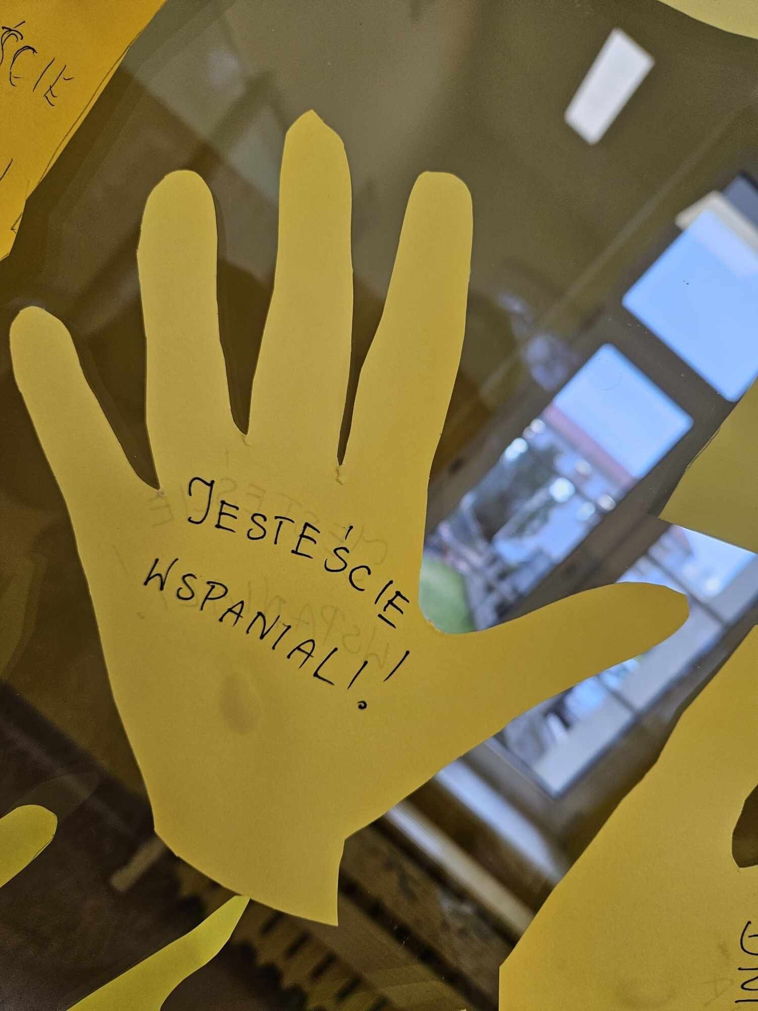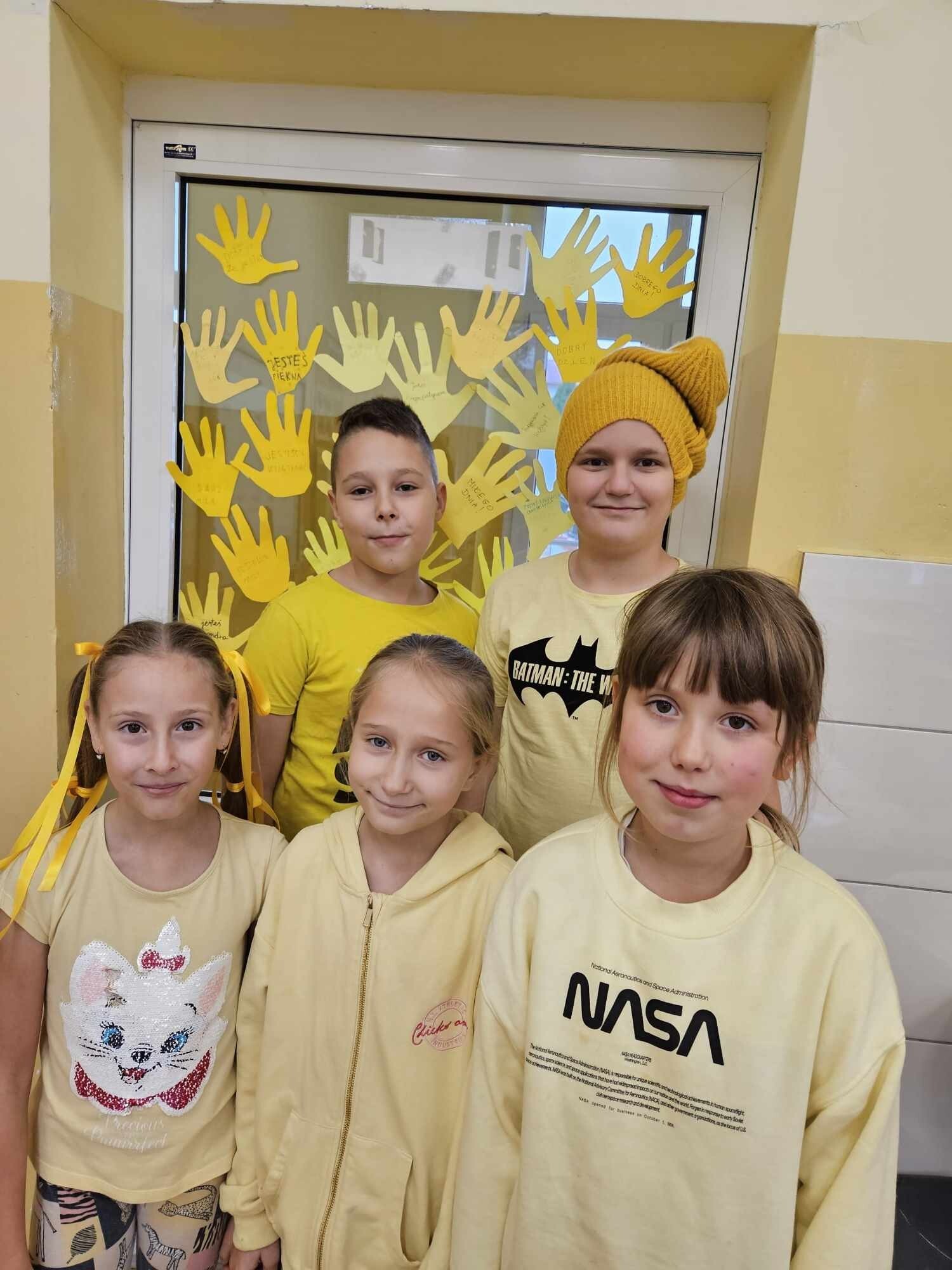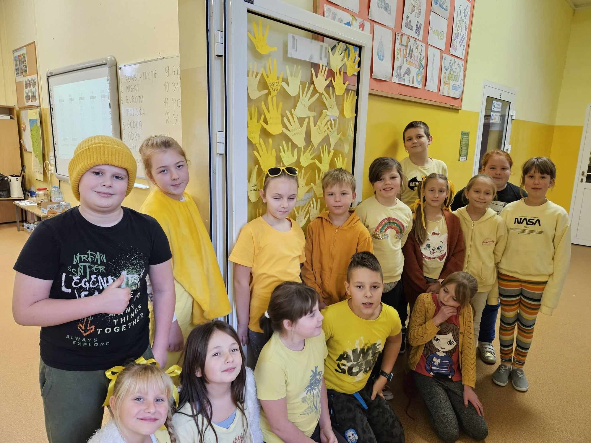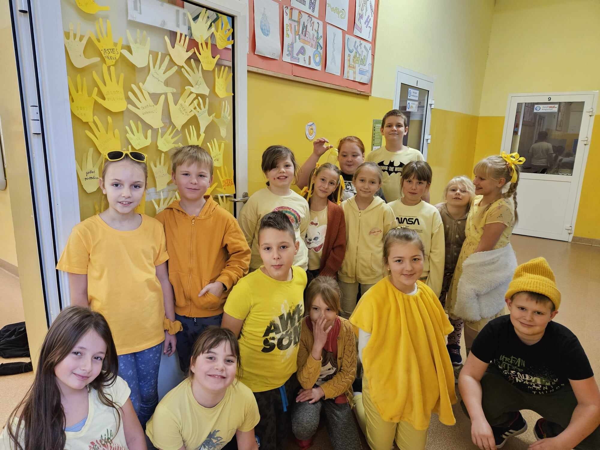 We wtorek, 21 listopada 2023, w naszej szkole obchodzono Dzień Życzliwości i Pozdrowień. Na korytarzach dominował kolor żółty - symbol tego dnia. Uśmiechnięte twarze, miłe słowa sprawiły, że wtorek był jednym z najmilszych dni w ostatnim czasie. Uczniowie klas VI podjęli się pięknej inicjatywy, tzn. przygotowali bransoletki, którymi obdarowywali pracowników szkoły, oraz cukierki dla uczniów. Nagrali również filmik z okazji tego szczególnego dnia. Uczniowie klas VII i VIII przygotowali fotobudkę, w której można było wykonać wesołe zdjęcia. Nie zawiodły klasy IV, odpowiedzialne za wykonanie plakatów o życzliwości, dobroci, przyjaźni. Uczniowie klas I-III wykonały piękne drzewo życzliwości. Czas przerw umilała muzyka wybrana przez Pana Piotra Ernesta. Ten dzień to również dzień Pracownika Socjalnego. Młodzież ze szkolnego wolontariatu nie zapomniała o Paniach pracujących w OPS-ie. 21 listopada był na tyle udany, że postanowiliśmy celebrować go częściej, a właściwie każdego dnia, mówiąc do siebie: lubię Cię, możesz na mnie liczyć, uśmiechnij się.