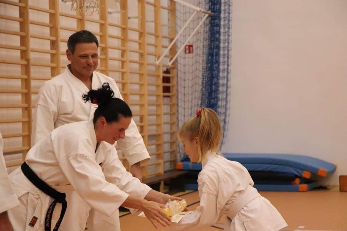 Podczas tej wizyty zostały przeprowadzone egzaminy na stopnie uczniowskie - Kyu. Było to ogromne przeżycie zwłaszcza dla rozpoczynających swoją przygodę z karate.