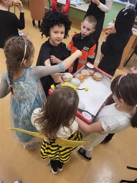 Dziś w naszej szkole było naprawdę słodko! Ci mali i ci trochę więksi degustowali pączki i pączusie bez wyrzutów sumienia i liczenia zbędnych kalorii. A dlaczego? Bo jesteśmy wierni tradycji Tłustego Czwartku, więc każdy miał prawo sprawdzić, jak smakują tłuste i słodkie wypieki z polewą i bez polewy, z posypką i z nadzieniem. Przecież to tylko raz w roku:)