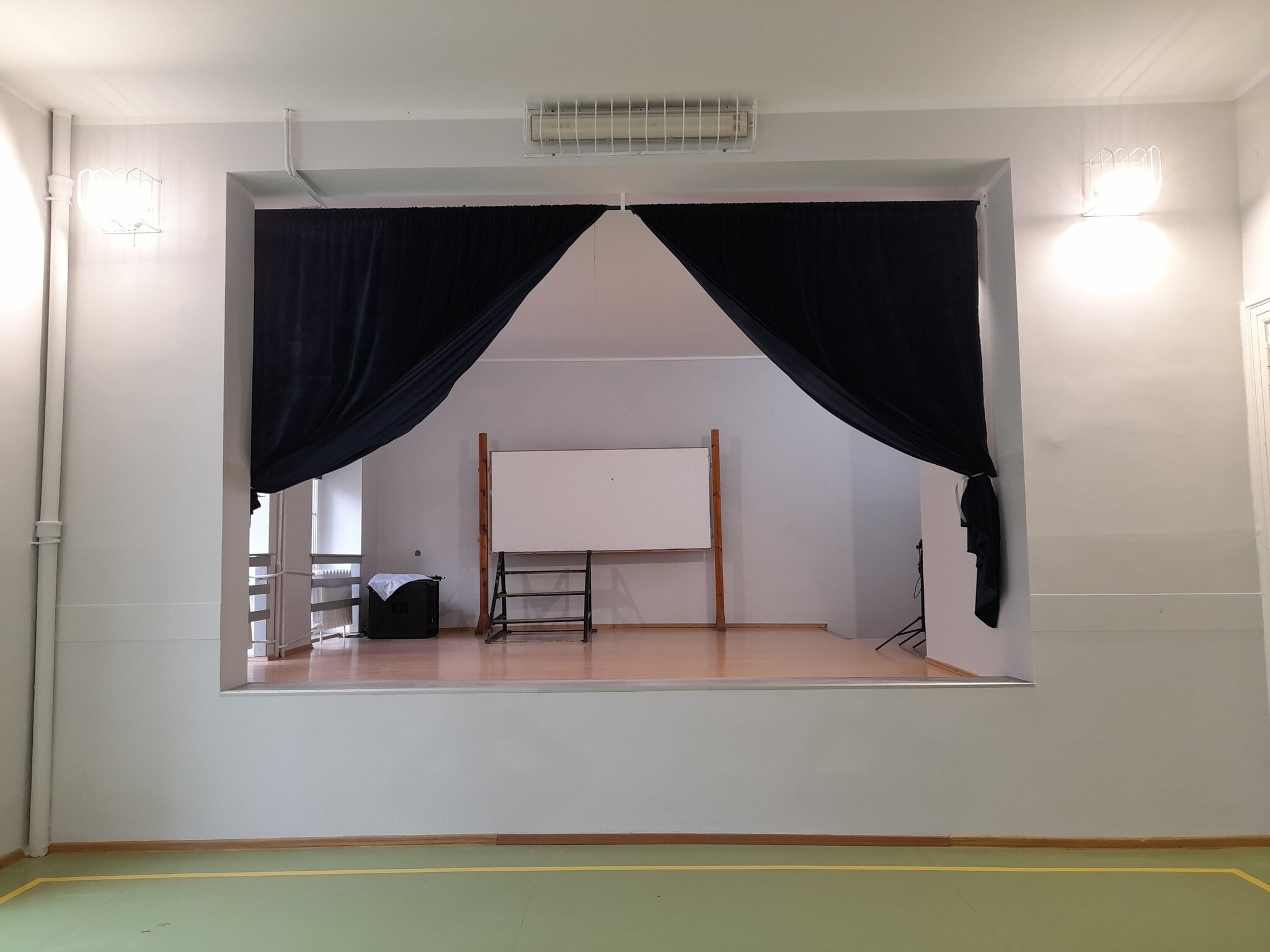 Nasza szkoła staje się coraz piękniejsza! W tym roku odnowiliśmy małą salę gimnastyczną. Ponadto doprowadziliśmy scenę do ładu. Kurtynę, która bez celu wisiała na tylnej ścianie, zawiesiliśmy na jej kluczowe miejsce. Kurtyna została wyczyszczona. Teraz nasza scena nabrała odpowiedniego charakteru. Z całego serca dziękujemy Przedsiębiorstwu Ślusarsko - Kowalskiemu „Joker” Stanisław Piwka za wykonanie specjalnych „wieszaków” na rurę, do której przytwierdzona jest kurtyna.