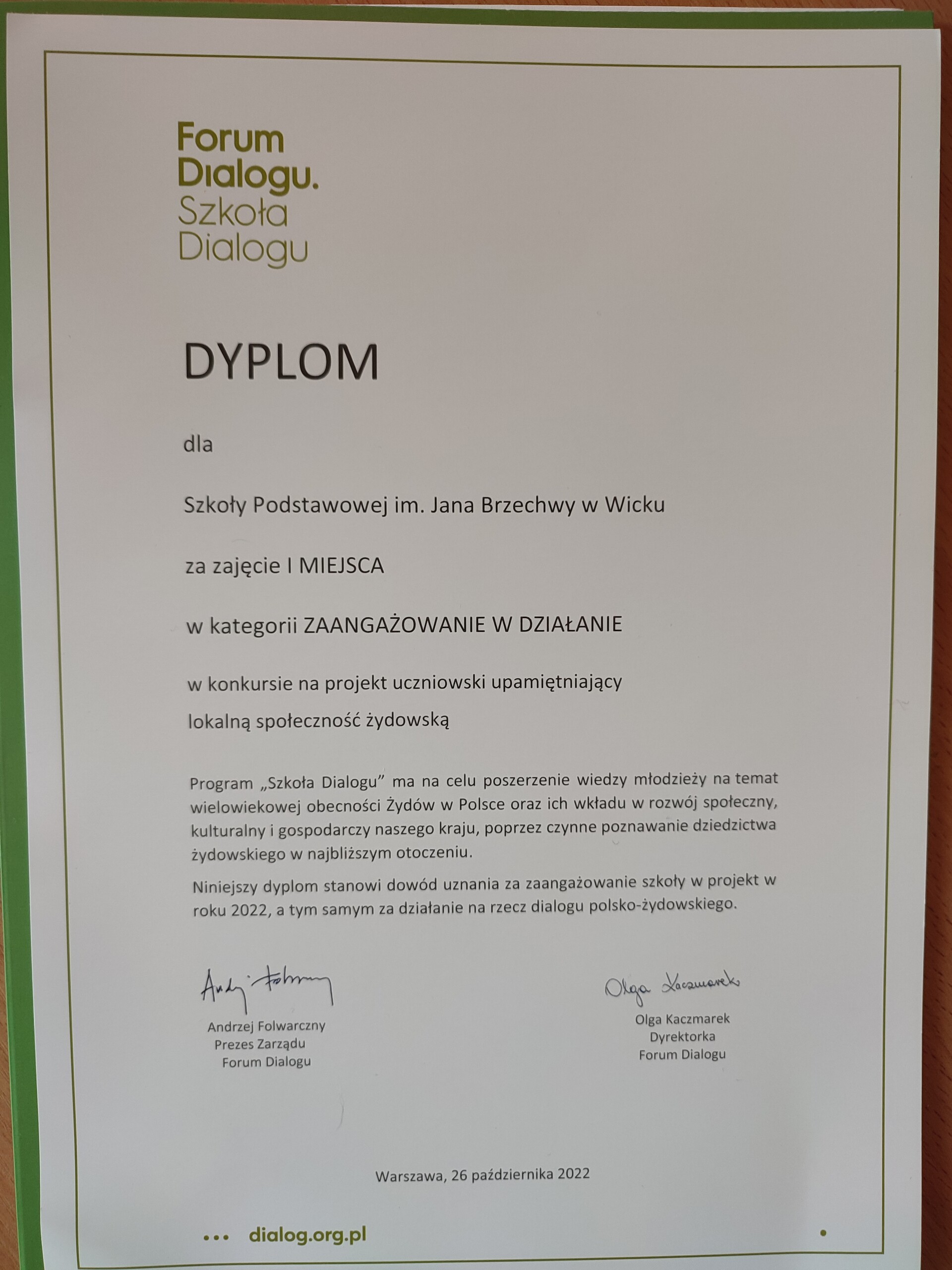 W dniu dzisiejszym, tj. 26 października 2022 roku, miało miejsce podsumowanie XV edycji Szkoły Dialogu i ogłoszenie najlepszych projektów.