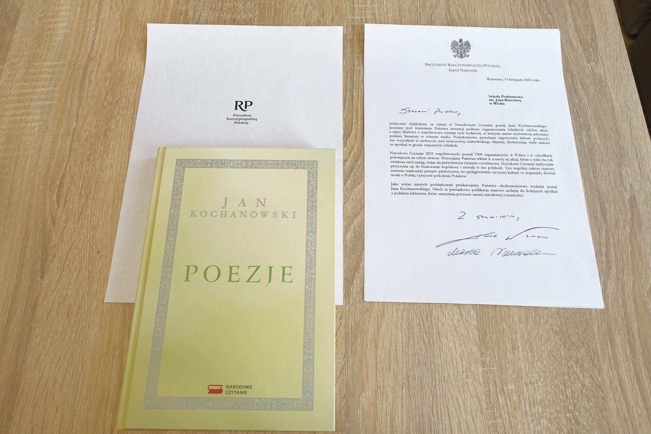Właśnie otrzymaliśmy pamiątkowe podziękowanie i pięknie wydany egzemplarz "Poezji" Jana Kochanowskiego z Kancelarii Prezydenta RP. Przypominamy, że Jan z Czarnolasu był patronem tegorocznej akcji Narodowego Czytania, w którą również uczniowie naszej szkoły i szkolna biblioteka się zaangażowali. Dziękujemy!