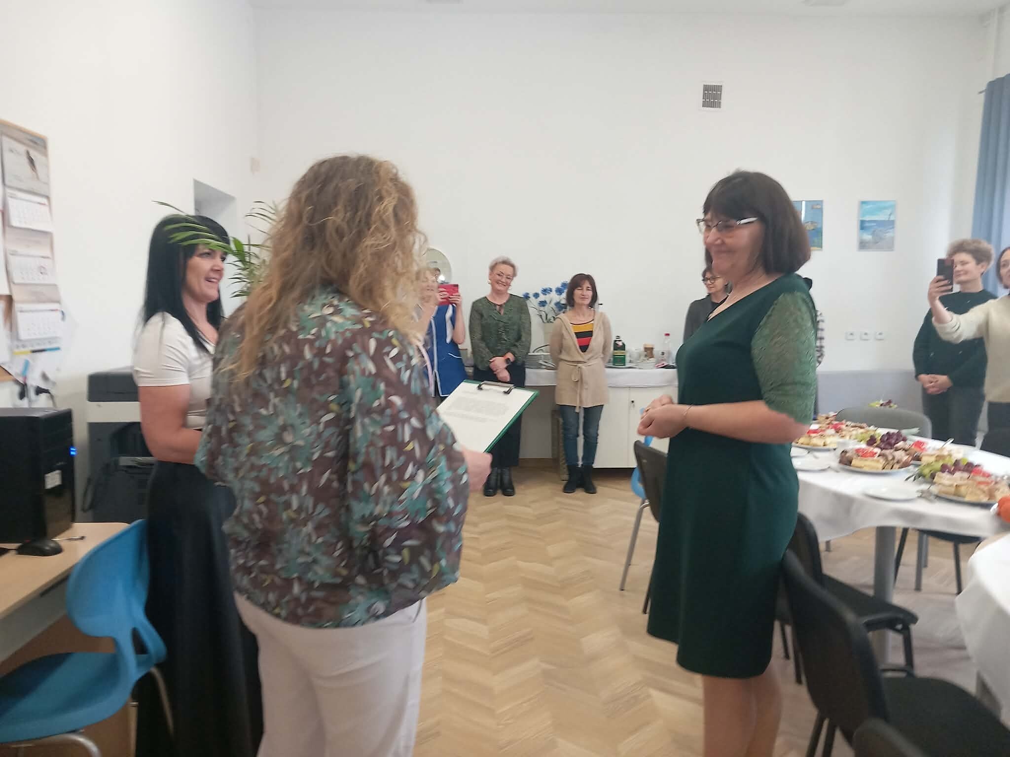 W piątek, 16 stycznia 2026, pracownicy SP Wicko i przedstawiciele społeczności szkolnej wraz z Samorządem Uczniowskim pożegnali odchodzącą na emeryturę Panią Bernadetę Czerwionkę. Życzymy Pani mnóstwo radości, zdrowia i wspaniale spożytkowanego wolnego czasu przeznaczonego na spełnianie planów i marzeń.