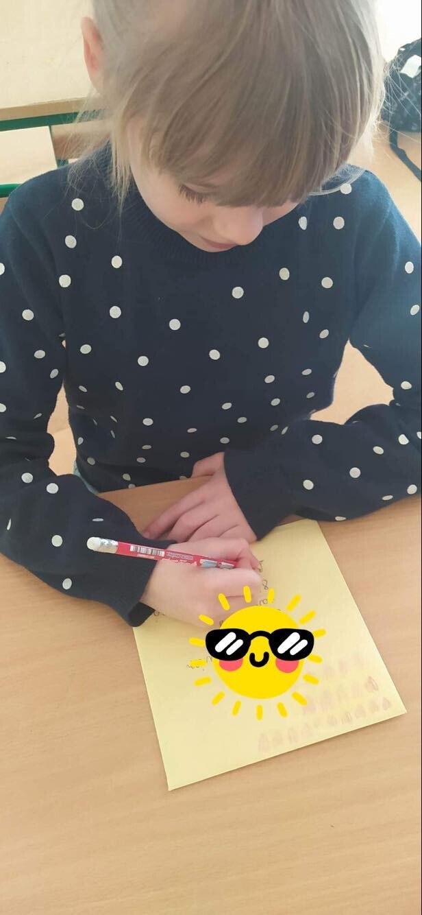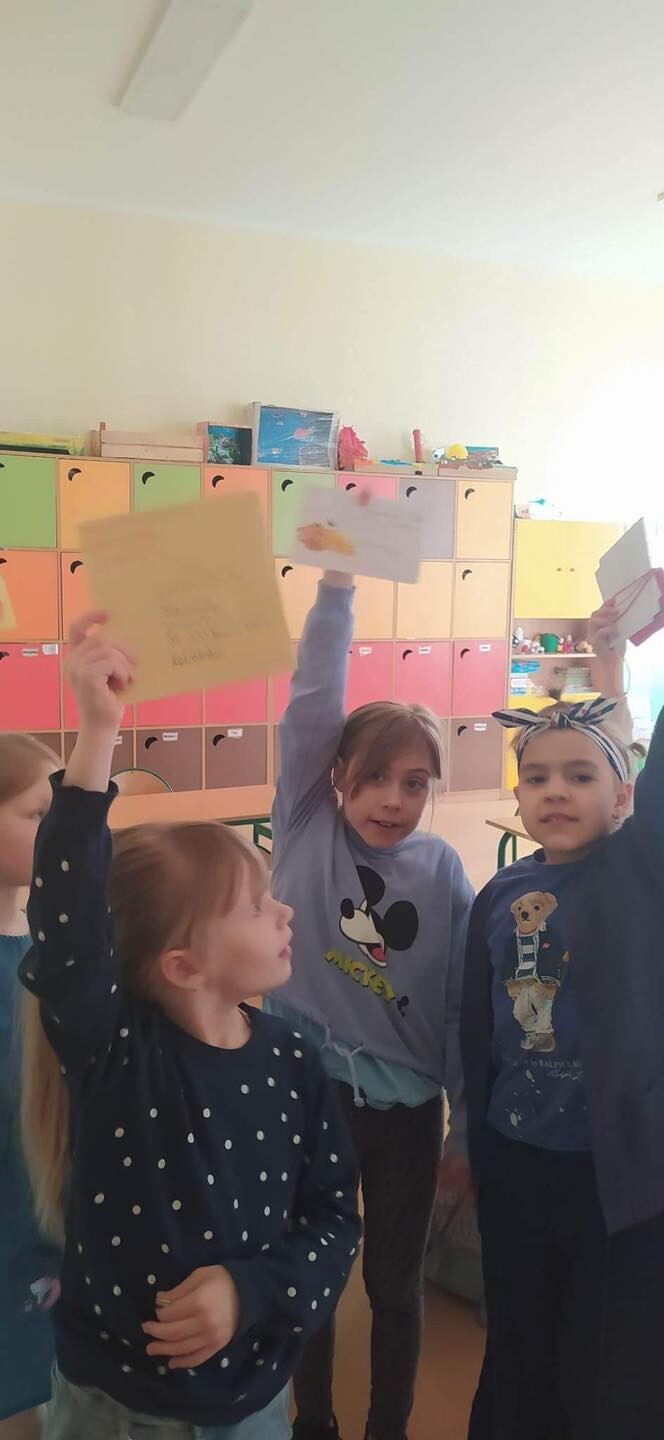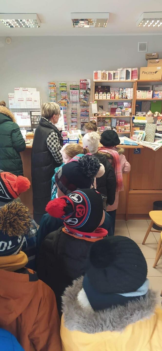 Pierwszaki w ostatnich dniach uczyły się, jak należy adresować kopertę oraz poznawały drogę listu od nadawcy do adresata. W związku z tym i ze zbliżającymi się świętami Wielkiej Nocy uczniowie przynieśli do szkoły przepiękne kartki świąteczne, w których napisały życzenia oraz adresy swoich bliskich. Tak przygotowani wyruszyliśmy na pocztę, gdzie rozpoczęła się dalsza część drogi naszych świątecznych listów