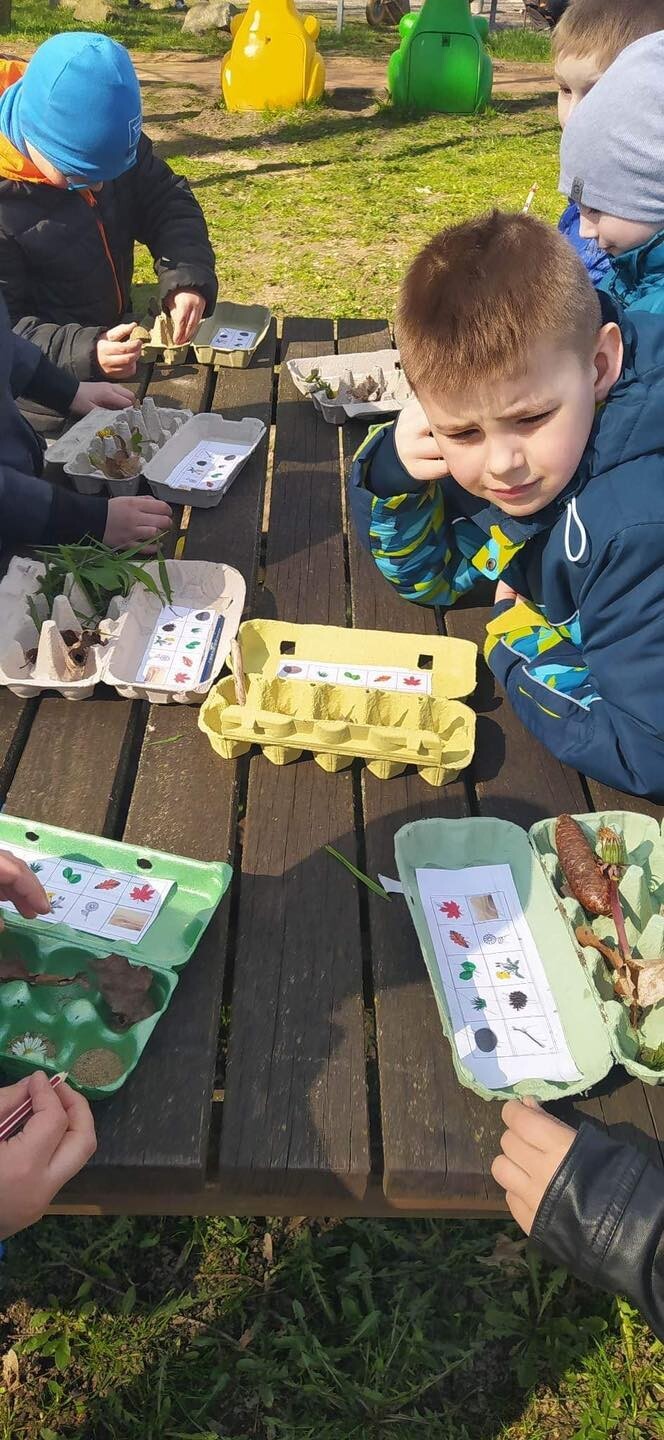 Korzystając z dzisiejszych promieni słońca , pierwszaki wyruszyły na poszukiwania darów natury. Każdy z przygotowanym pudełkiem szukał według listy. Najtrudniejszy w znalezieniu okazał się mniszek lekarski, który dopiero zaczyna kwitnąć, jednak udało nam się znaleźć pąki, a nawet kilka rozwiniętych kwiatów. Z naszych zbiorów powstała w klasie ładna wystawa .