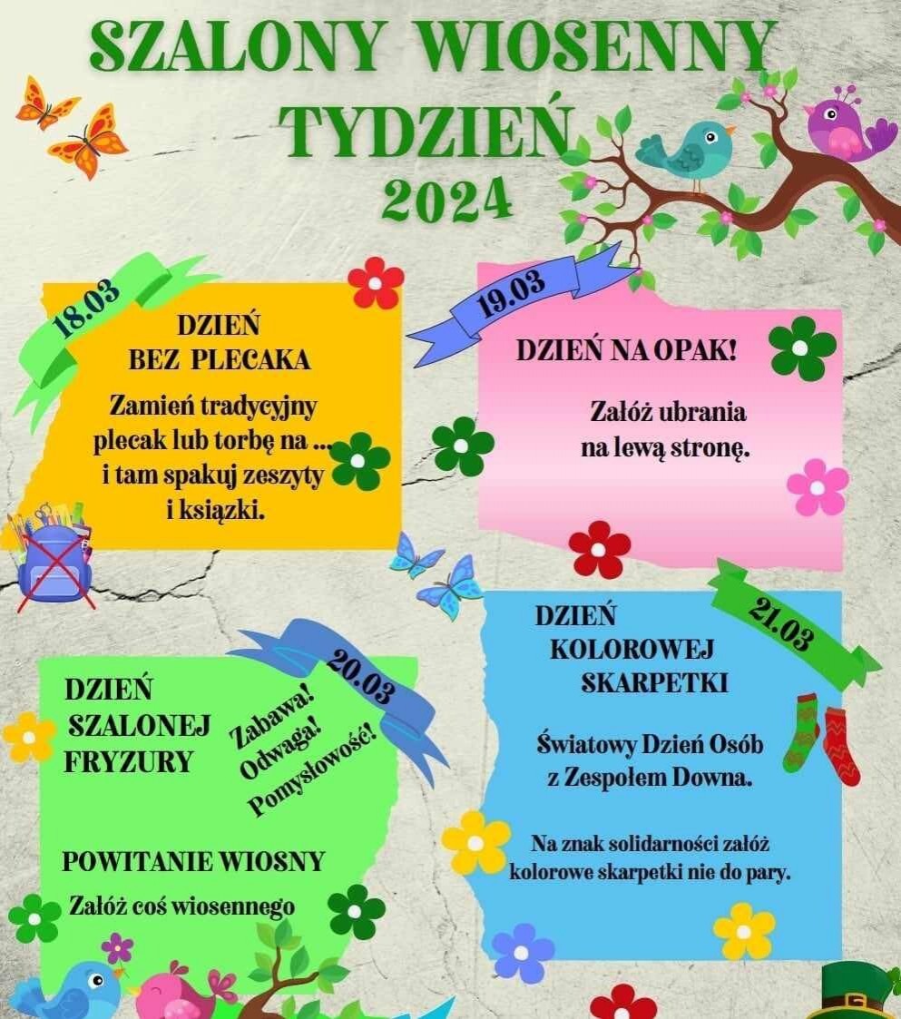 Z okazji Pierwszego Dnia Wiosny zapraszamy Was do wspólnej zabawy przez cały tydzień! Oto rozkład do czwartku!