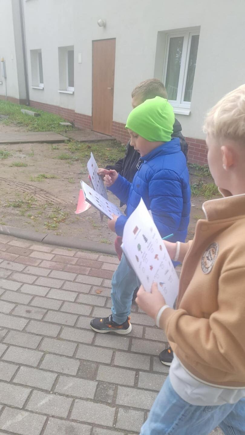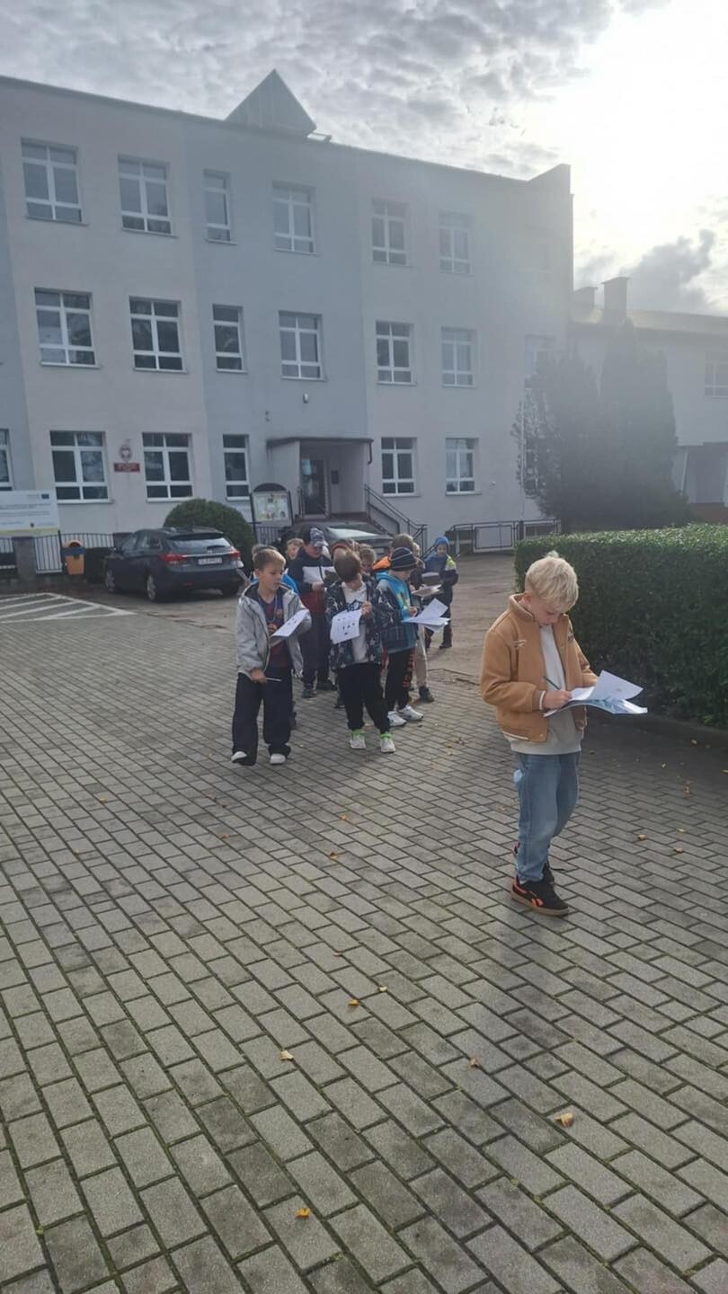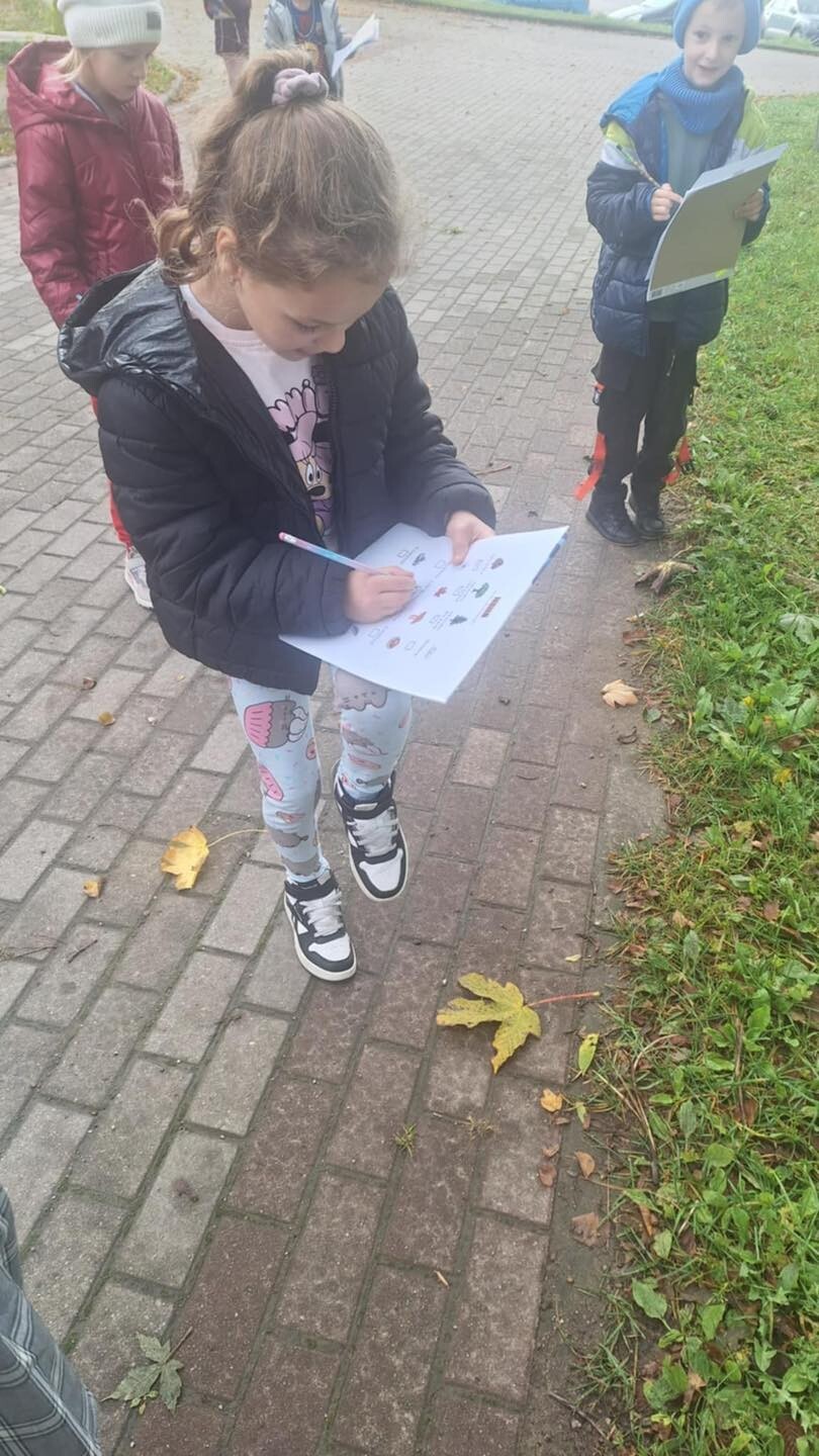 Uczniowie klasy pierwszej odbyli dziś (09.10.2025) krótką lekcję w terenie. Wyposażeni w przygotowaną kartę obserwacji, obeszliśmy nasz szkolny teren w poszukiwaniu oznak jesieni i nie tylko. Pierwszaki wykazały się dużym zaangażowaniem i bystrym okiem. A przy okazji skorzystaliśmy z ostatnich promyków ciepłego słońca.