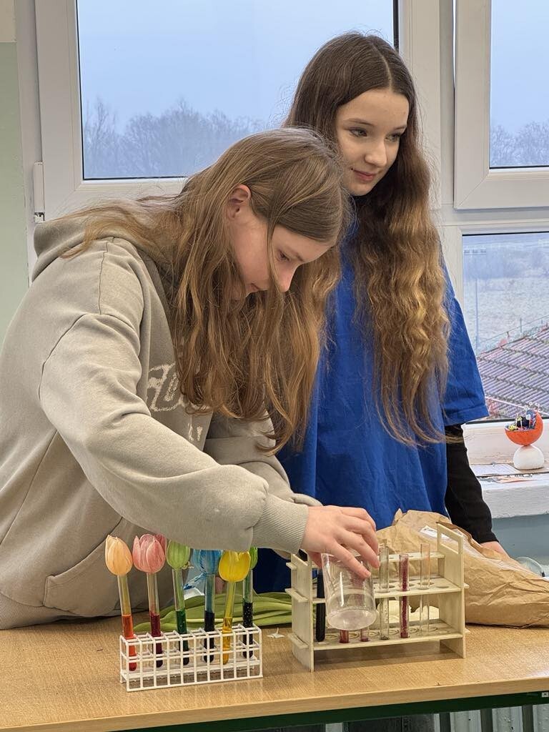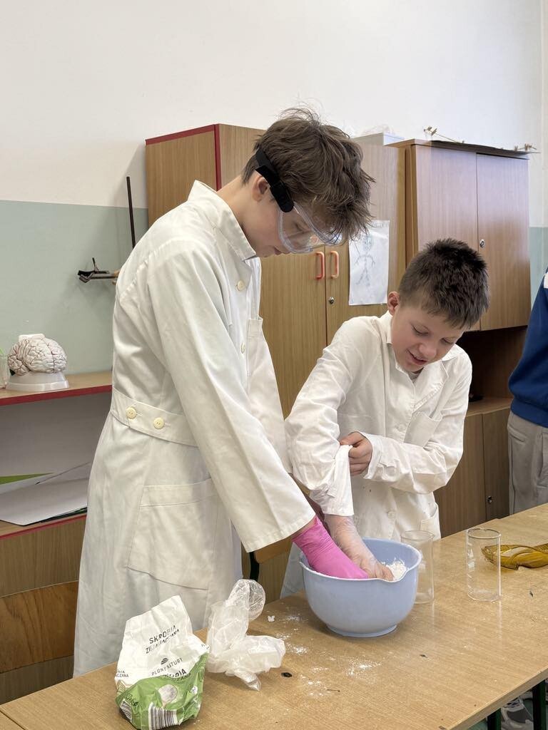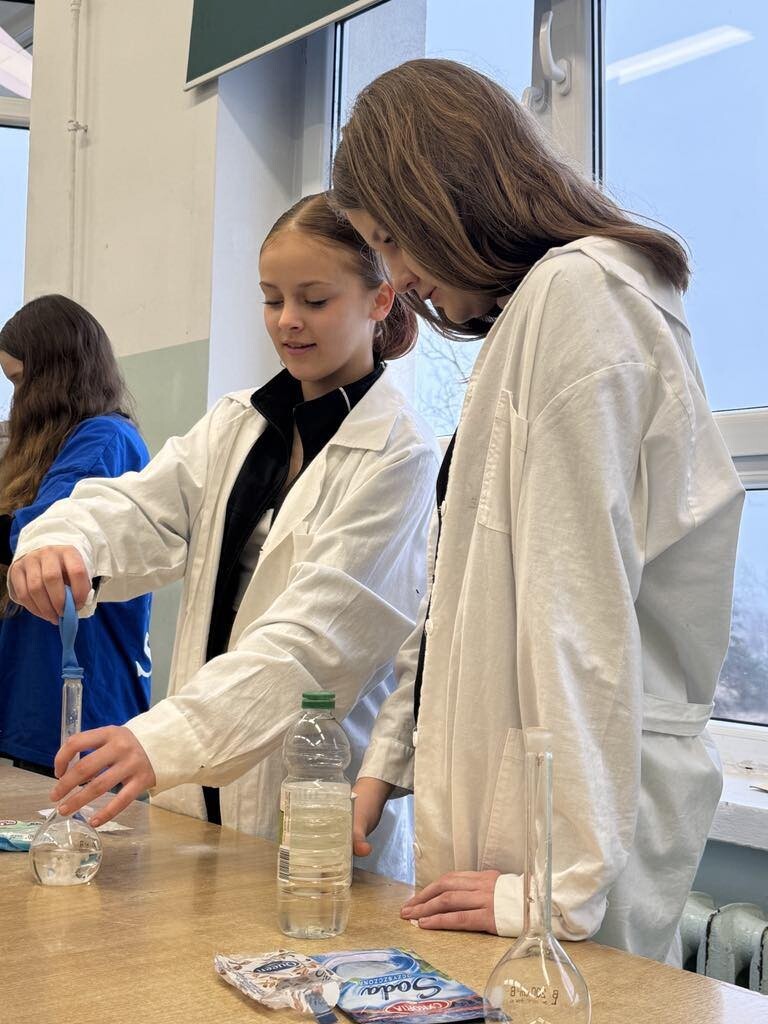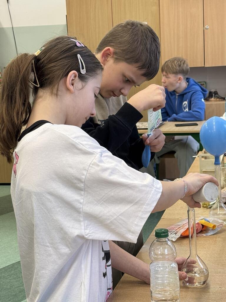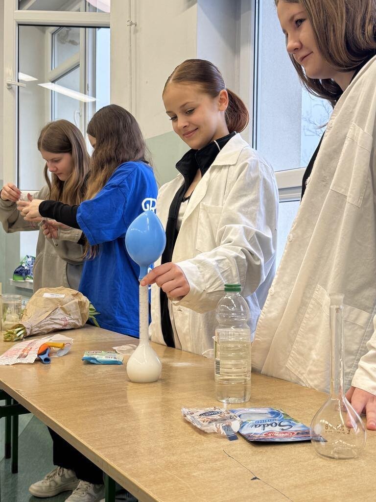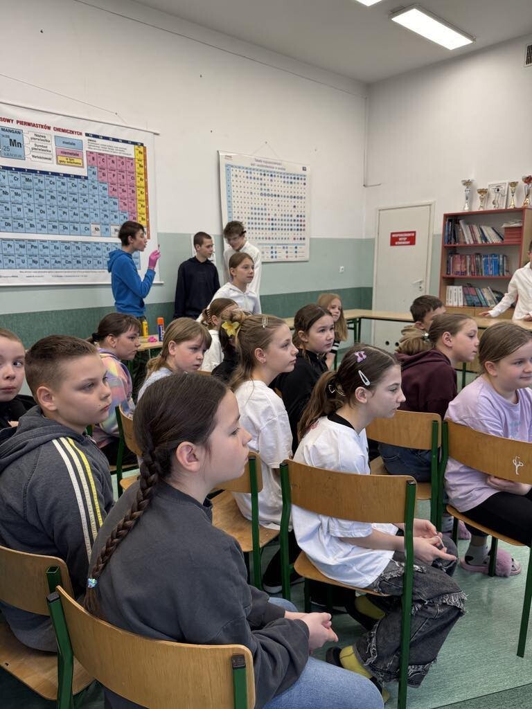 Było mnóstwo kolorowych reakcji, dymiących eksperymentów i świetnej zabawy z nauką. Dziękujemy siódmoklasistom za ich zaangażowanie i pasję do chemii!