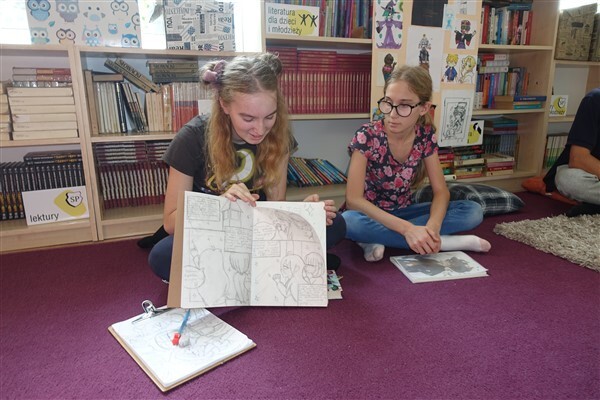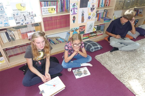 W poniedziałek, 16 września 2024, w Bibliotece Szkolnej w Wicku członkowie naszego szkolnego Dyskusyjnego Klubu Książki spotkali się pierwszy raz po wakacjach. Liliana i Aniela pochwaliły się nowymi, napisanymi przez siebie książkami i pięknymi autorskimi ilustracjami. Zuzia przyniosła nie tylko książki warte polecenia, ale też wykonane przez siebie maskotki. Amelka cieszyła nas swoim nieprzeciętnym talentem zdolnej ilustratorki, przez całe spotkanie rysując postacie w stylu japońskich komiksów. Ola podarowała naszej bibliotece kolejne mangi. Reszta komentowała na bieżąco, co przeczytała i zobaczyła w czasie wakacji. Na koniec uczciliśmy urodziny Juliana Tuwima, który - gdyby żył - miałby teraz 130 lat. Do zobaczenia w październiku - Międzynarodowym Miesiącu Bibliotek Szkolnych:)