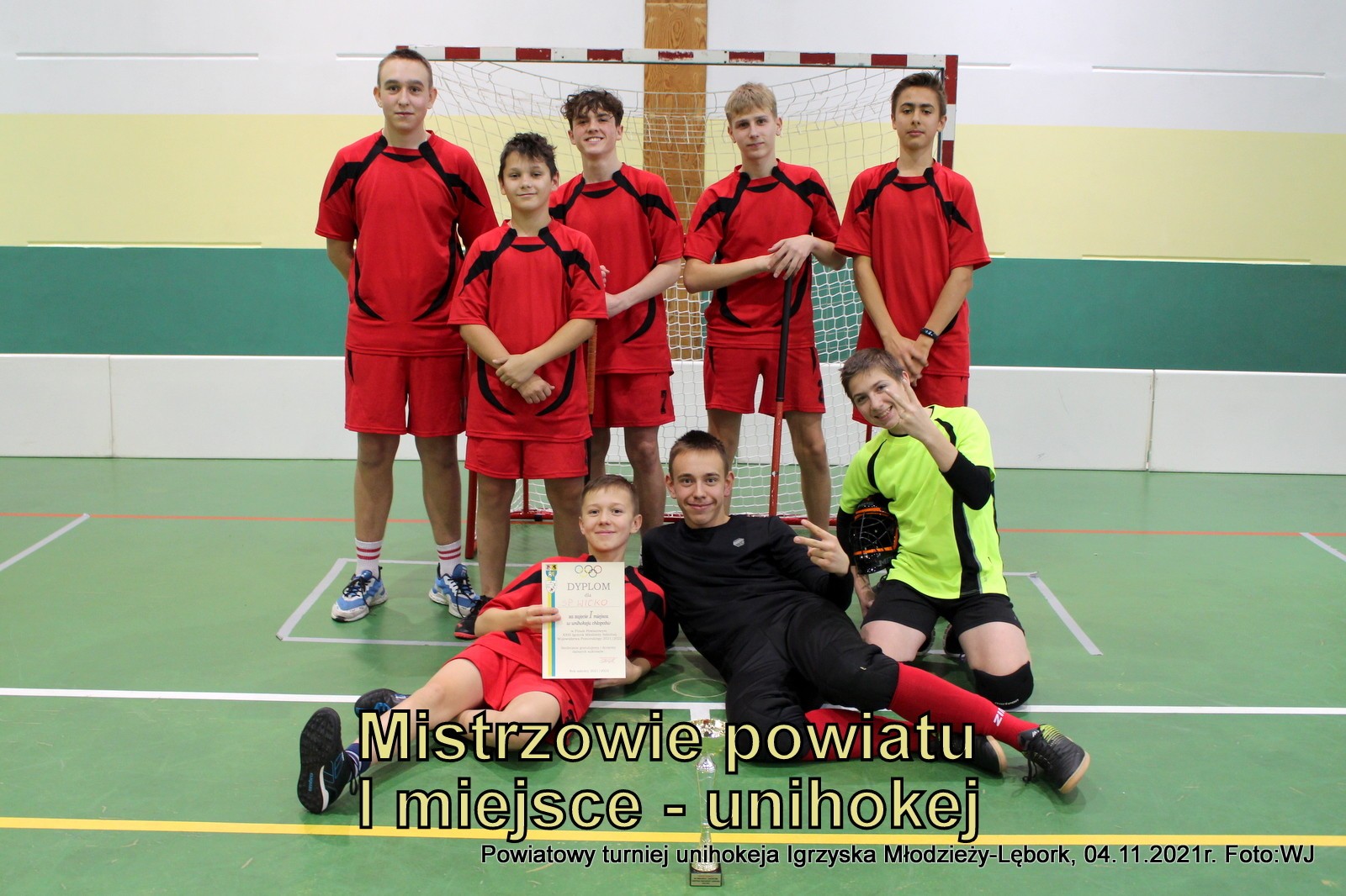Po udanych eliminacjach gminnych w unihokeja, nasi uczniowie zaliczyli również udany występ w zawodach powiatowych. Dziewczęta młodsze w ramach Igrzysk Dzieci zajęły III miejsce, natomiast chłopcy starsi w ramach Igrzysk Młodzieży Szkolnej wywalczyli Mistrzostwo Powiatu, pokonując szkoły z Nowej Wsi Lęborskiej, Cewic i Lęborka. Drużyna z Wicka reprezentować będzie powiat lęborski w półfinale wojewódzkim, który odbędzie się w Wejherowie. Jest to duży sukces, wielkie gratulacje od całej społeczności naszej szkoły.