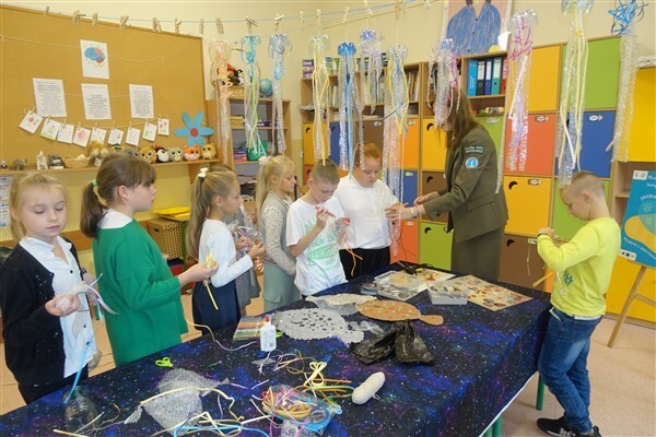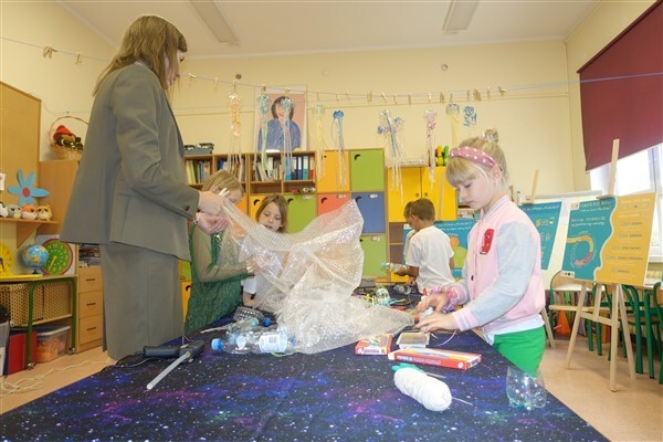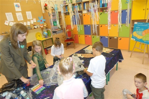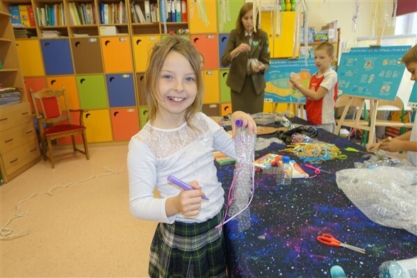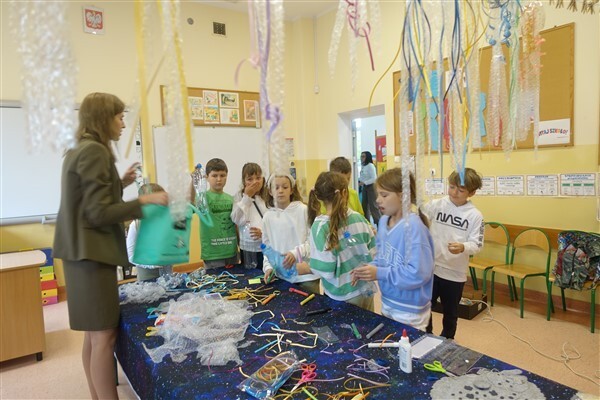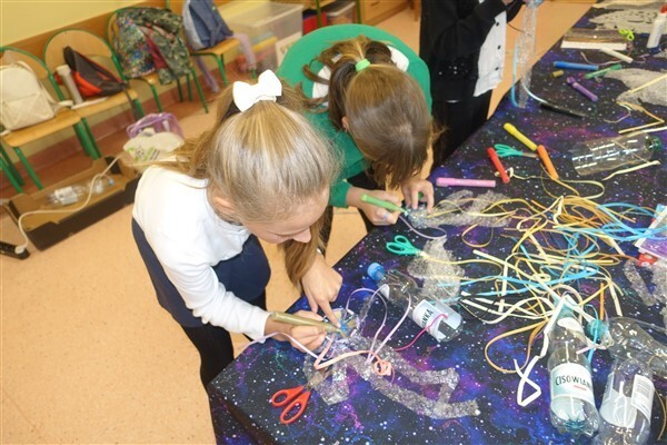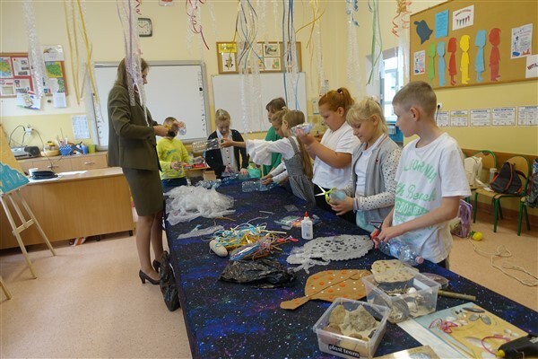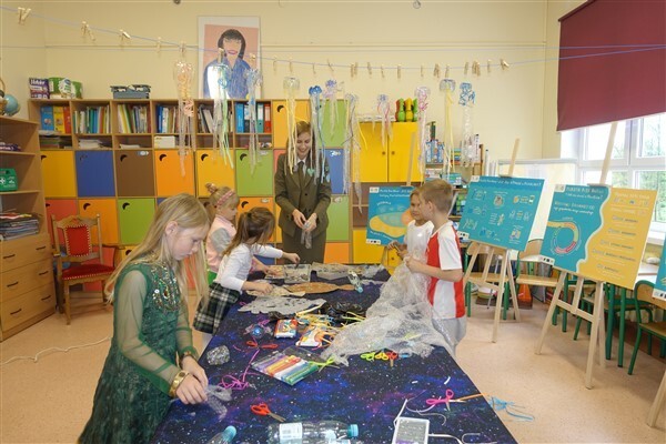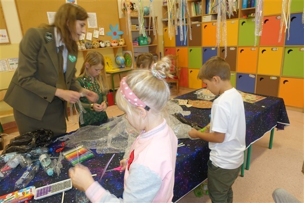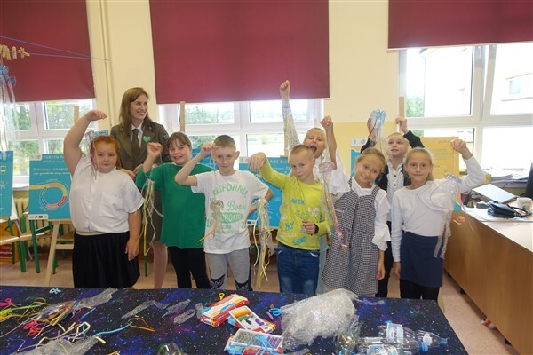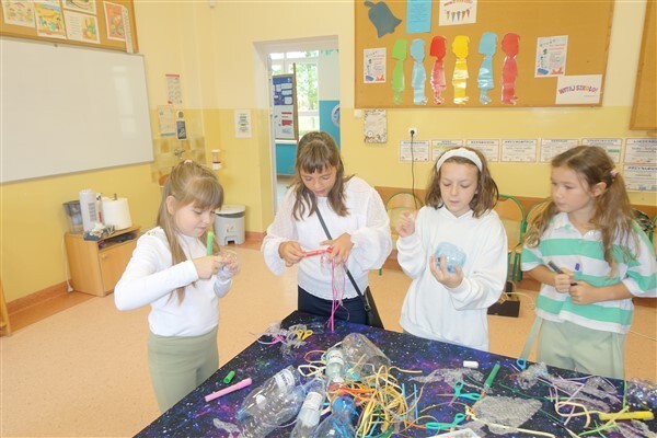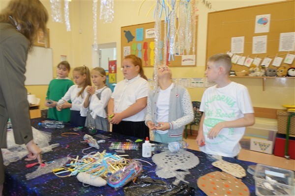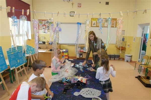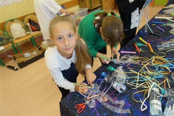 Uroczyste otwarcie nowoczesnej "Ekopracowni" OZE w Szkole Podstawowej im. Jana Brzechwy w Wicku stało się świetną okazją, by zarówno z dorosłymi, jak i z dziećmi rozmawiać o problemach związanych z ekologią we współczesnym świecie. Michalina Pączkowska ze Słowińskiego Parku Narodowego przygotowała dla społeczności szkolnej i zaproszonych gości prelekcję na temat roli edukacji w promowaniu odnawialnych źródeł energii. Następnie z młodszymi uczniami przeprowadziła warsztaty związane z ekologią w Bałtyku i problemem śmieci w morzu. Dodatkową pomocą przy warsztatach edukatorki SPN było omówienie wystawy wypożyczonej z Okręgu Pomorskiego Polskiego Klubu Ekologicznego o śmieciach w Bałtyku. Podczas zajęć warsztatowych dzieci dowiedziały się o plastiku, którego nadmiar jest olbrzymim problemem nie tylko dla środowiska morskiego. Potem dzieciaki pod okiem Pani Michaliny same wykonywały małe meduzy z plastikowych butelek i folii. Efekty działań plastycznych naszych uczniów można teraz podziwiać na zdjęciach:) Dziękujemy za niezwykle pożyteczne spotkanie pod znakiem ekologii!
