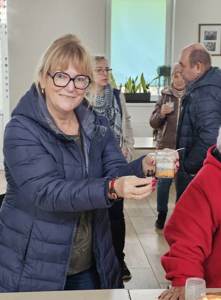 Następnie Pani Agnieszka Kaliszuk poprowadziła warsztaty rękodzieła, podczas których uczestnicy tworzyli piękne świece żelowe – było kreatywnie, pachnąco i bardzo nastrojowo!