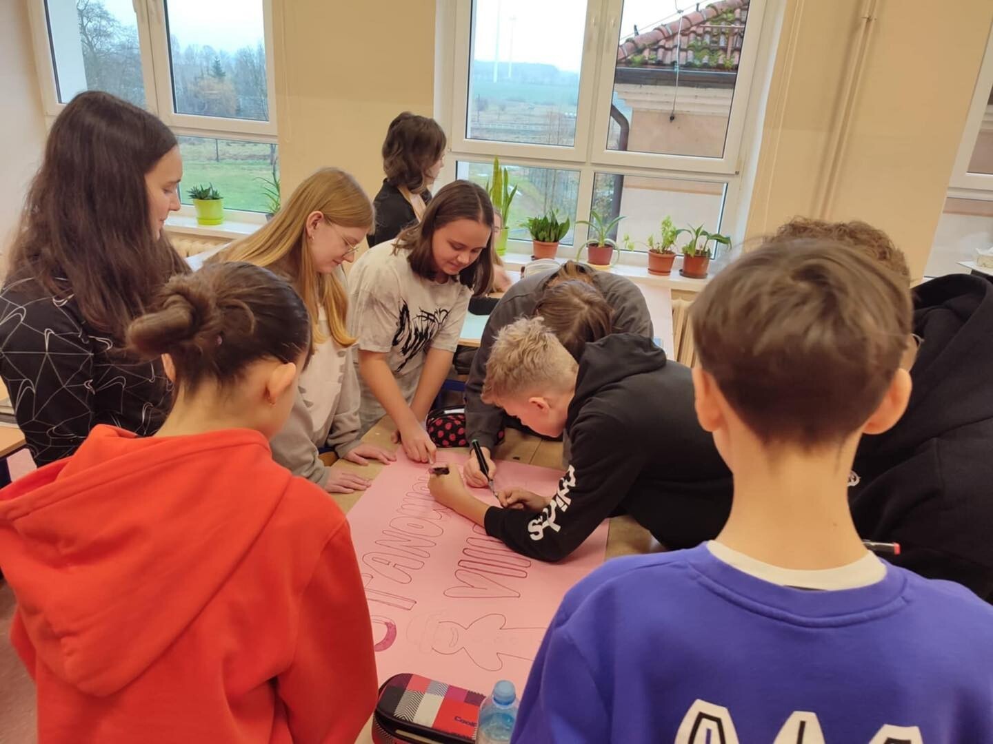 Ale przede wszystkim czuć zbliżający się Festyn Świąteczny. Prace idę pełną parą. Tworzą się dekoracje i plakaty, a klasy dopracowują swoje występy.