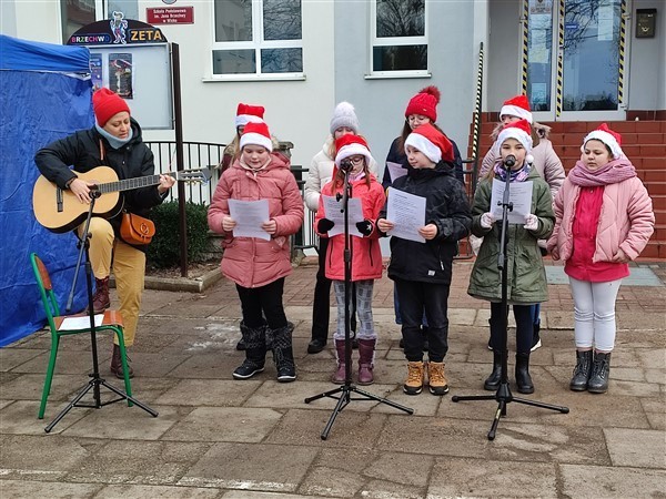 Całość Kiermaszu Świątecznego przed szkołą w Wicku okraszona była występem chórzystek, śpiewających na żywo pod kierunkiem nauczycielki muzyki, Pani Nataszy Konopackiej. Nad bezpieczeństwem zgromadzonych gości czuwała nasza dzielna straż pożarna z OSP Wicko. Namioty dostarczyła i sprawnie rozstawiła niezastąpiona ekipa gminnych pracowników UG.