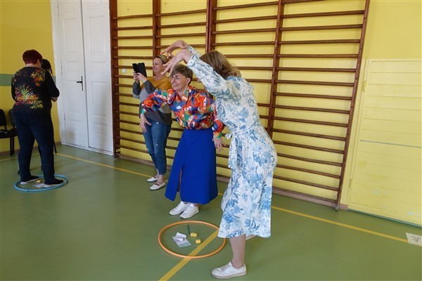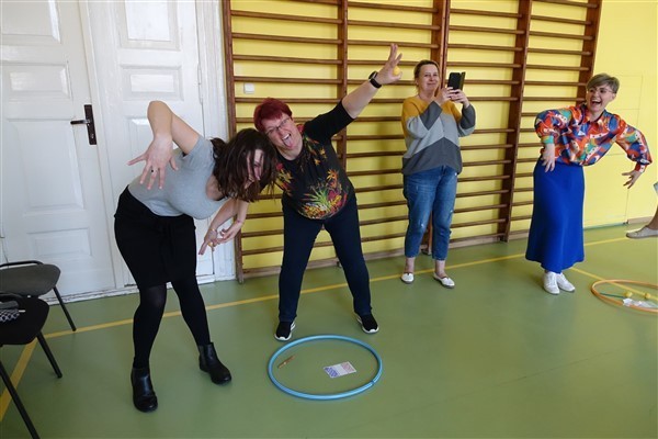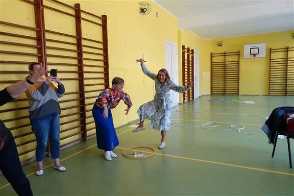 W piątkowe wczesne popołudnie, 25.03.2022, dzięki zaangażowaniu Pani Nataszy Konopackiej nauczyciele SP Wicko mogli wziąć udział w szkoleniu "Nauka poprzez zabawę, ruch i emocje kluczem do sukcesu". Nie ma to jak poczuć się jak dzieci!