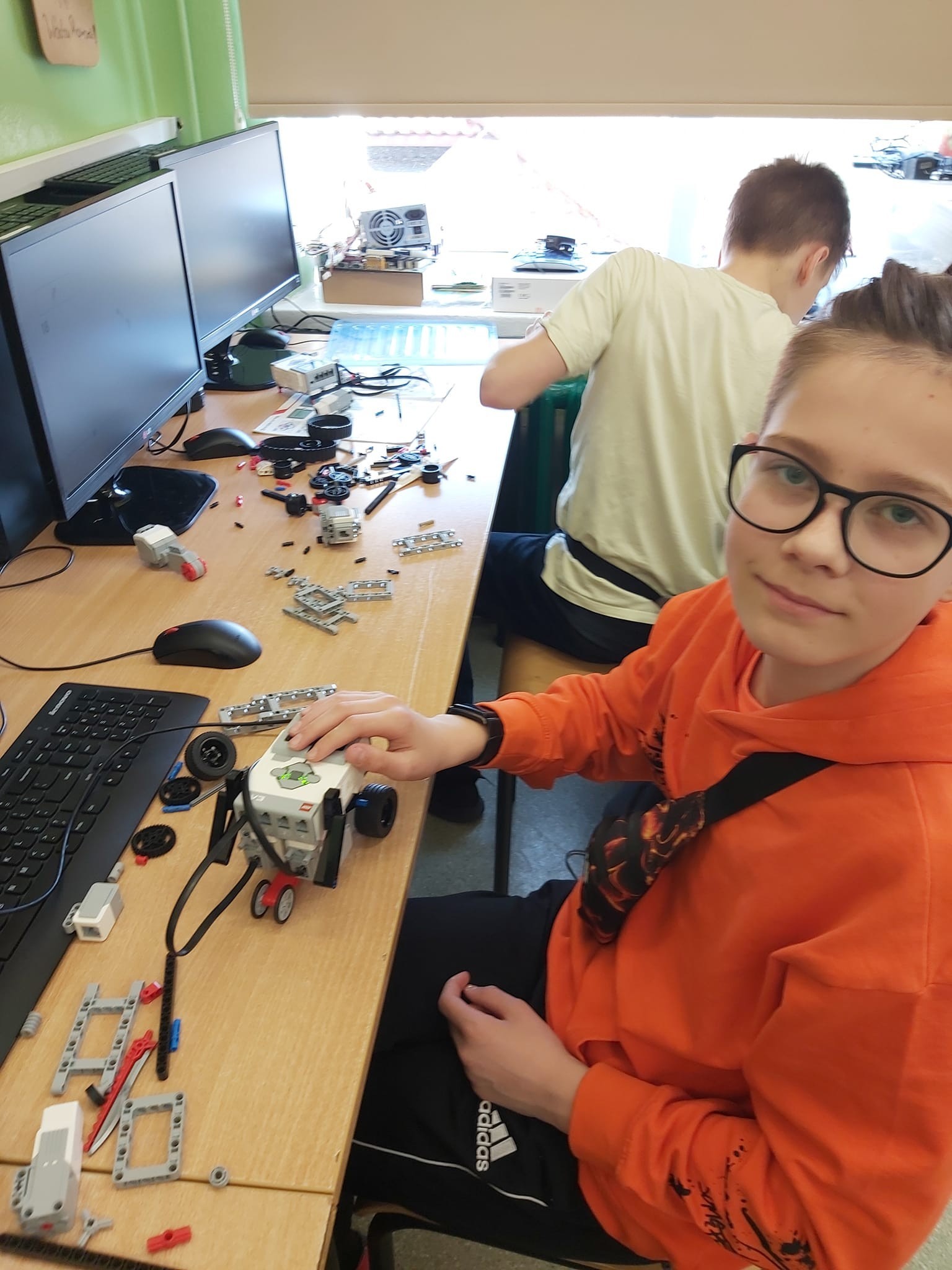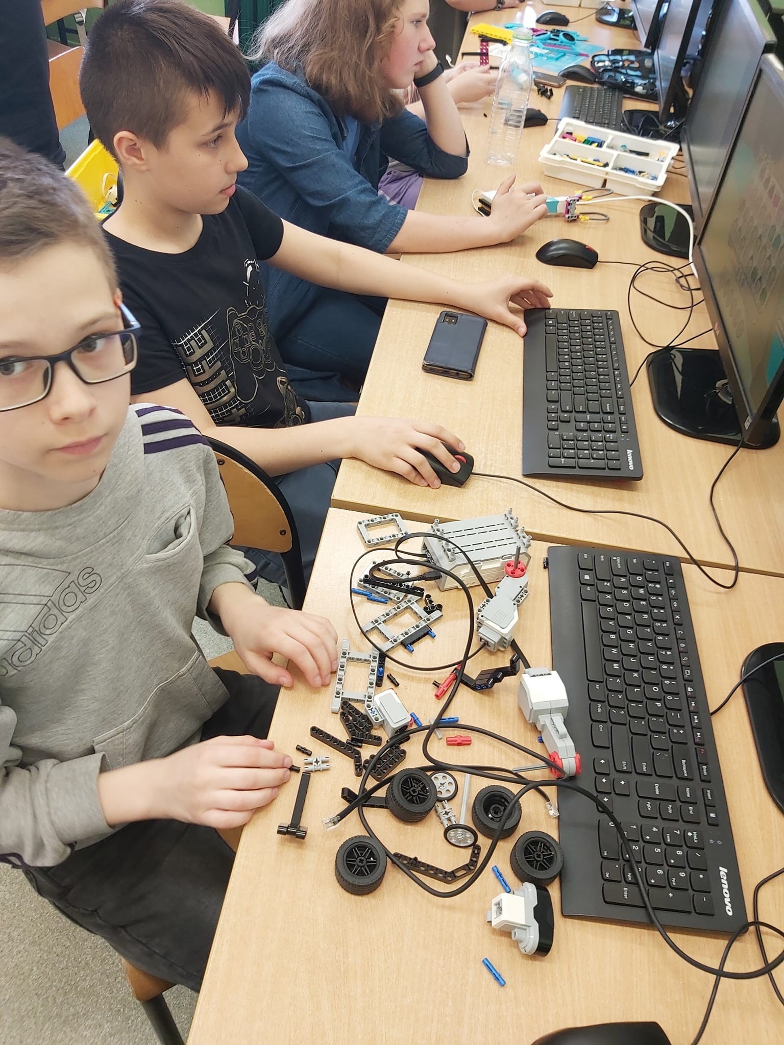 Dziś na lekcji informatyki odbyły się zajęcia z podstaw robotyki LEGO oraz programowania. Sprzęty zostały zakupione w ramach projektu Laboratoria Przyszłości.