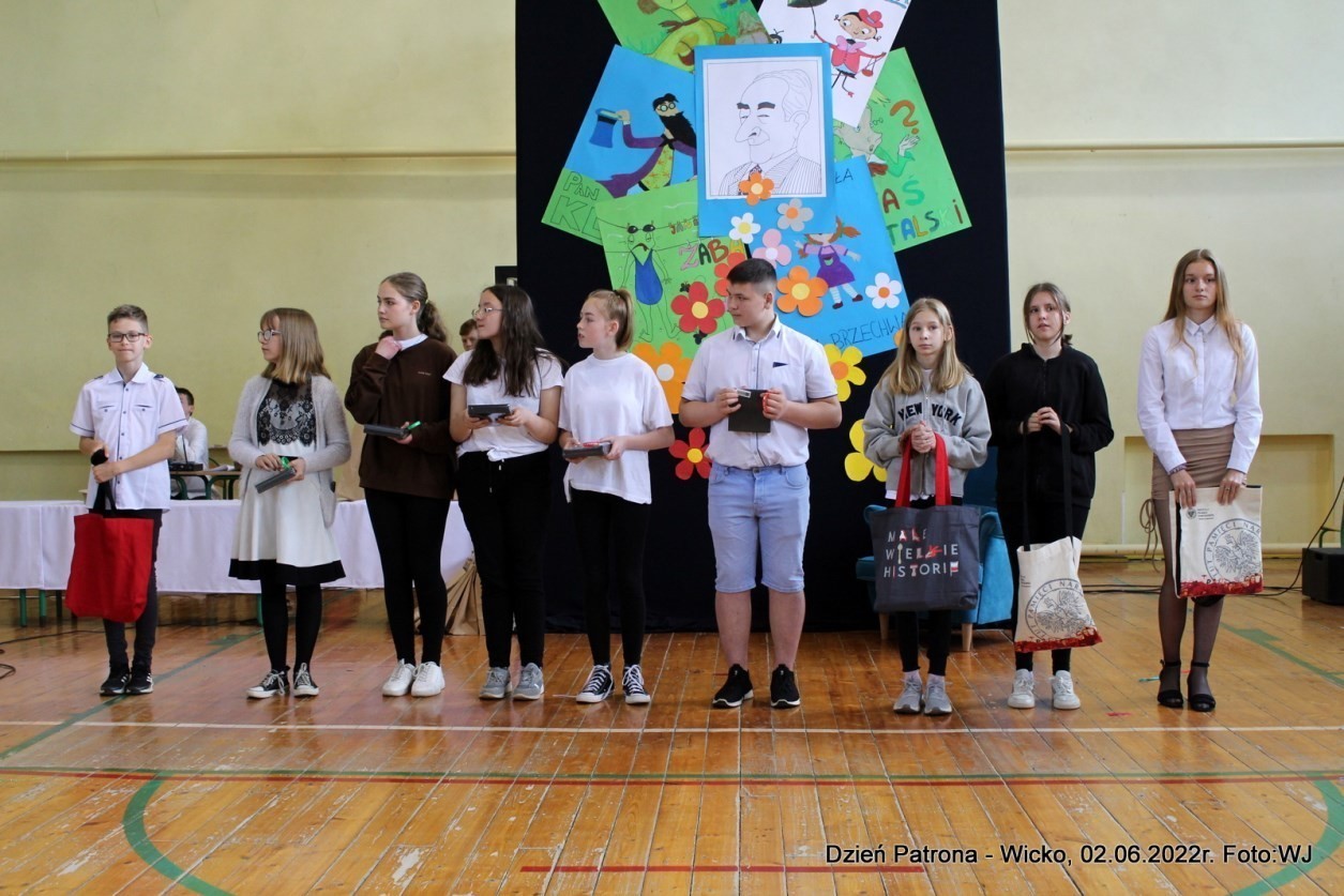 Podczas uroczystych obchodów Dnia Patrona w Szkole Podstawowej im. Jana Brzechwy w Wicku ogłosiliśmy wyniki i rozdaliśmy nagrody oraz wyróżnienia wszystkim uczestnikom tego konkursu. Literackie zmagania uczniów zorganizowano w ramach innowacji pedagogicznej nauczycieli - humanistów pn. Szkolny Konkurs Literacki pod hasłem „Warto być patriotą”.