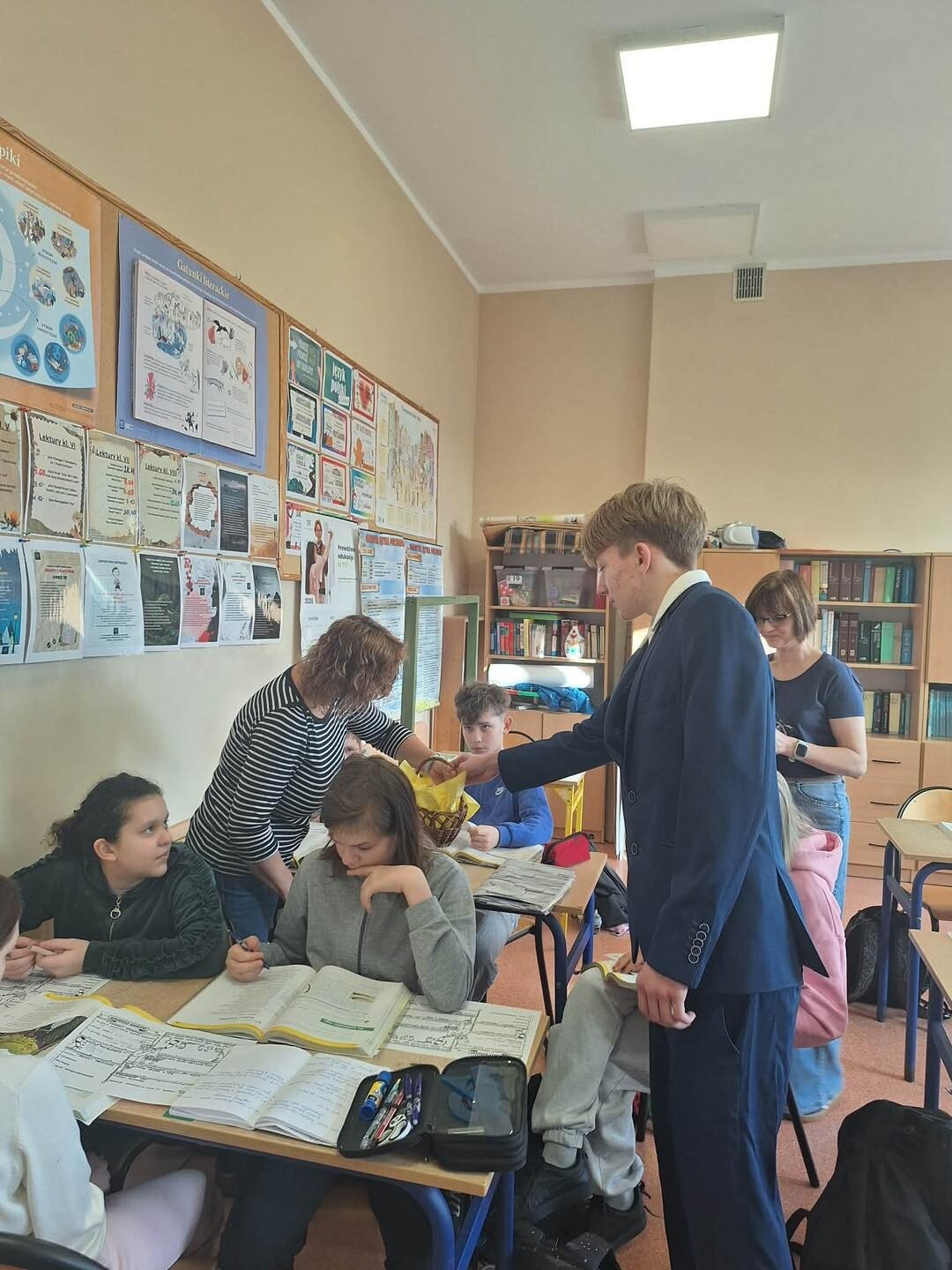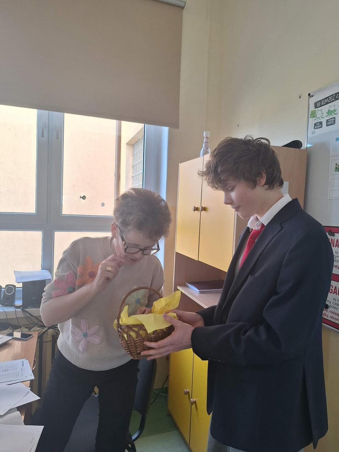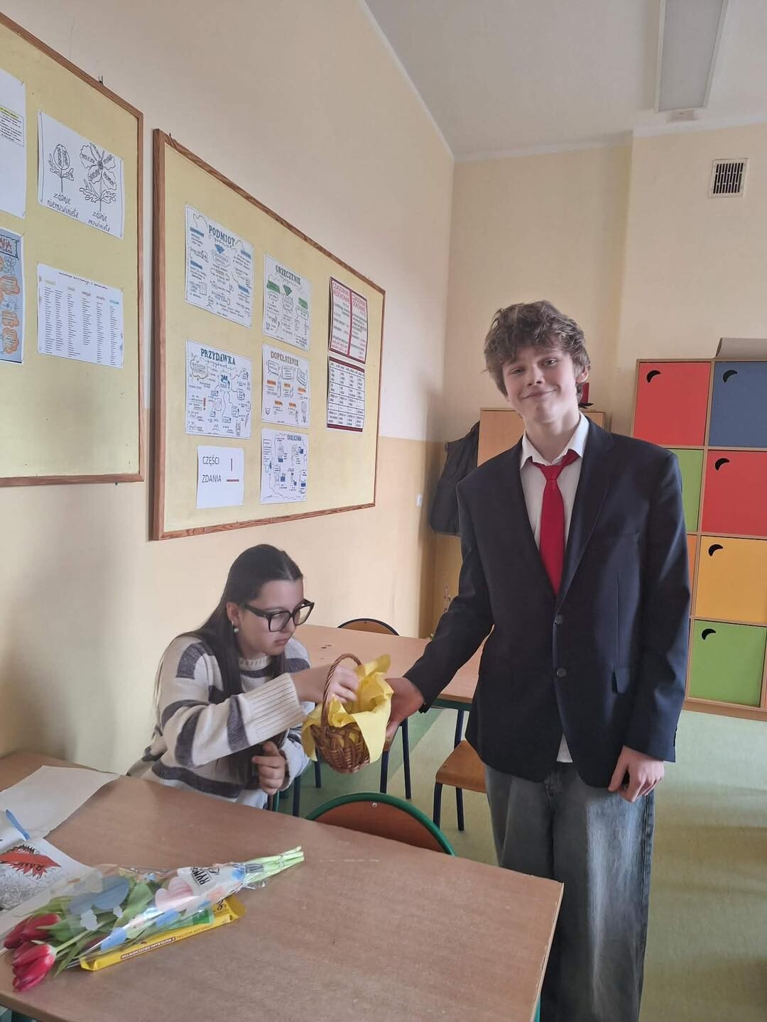 Ten sympatyczny gest wywołał wiele uśmiechów i sprawił, że atmosfera w szkole była dziś wyjątkowo radosna. Dziękujemy Samorządowi Uczniowskiemu za inicjatywę i pamięć o wszystkich Paniach!