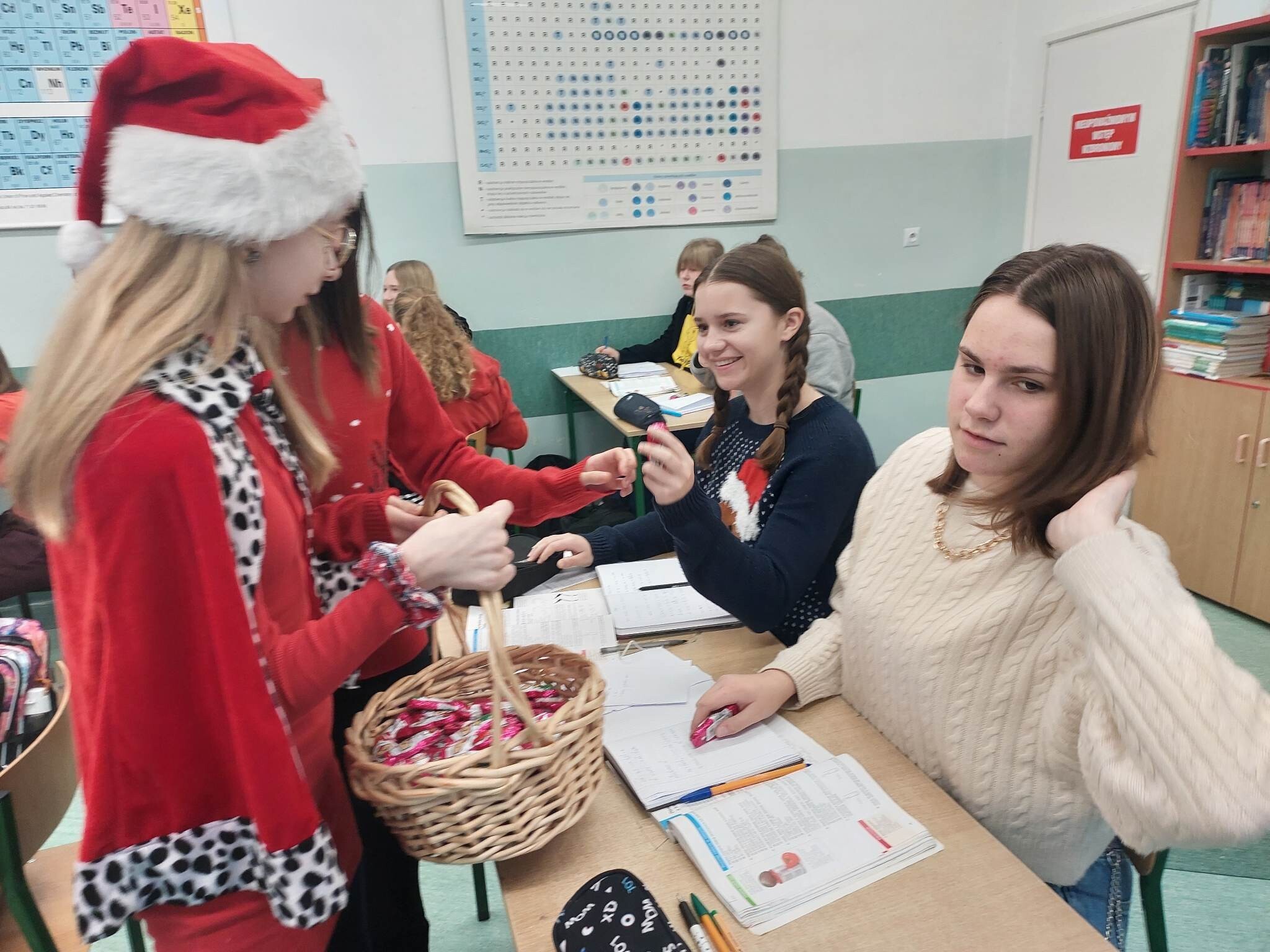 Z okazji mikołajek Samorząd Uczniowski przygotował małą niespodziankę dla całej społeczności szkolnej. Wszyscy wypatrywali Mikołaja na korytarzu, by otrzymać podarek i zrobić pamiątkowe zdjęcie.