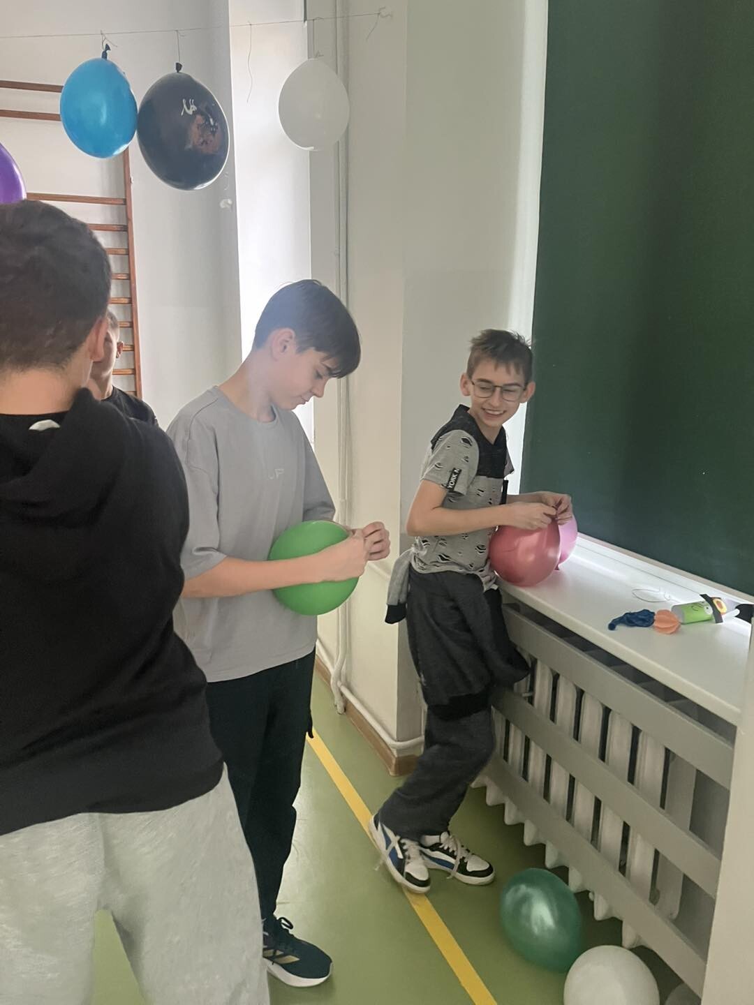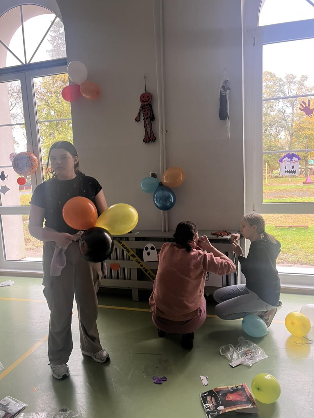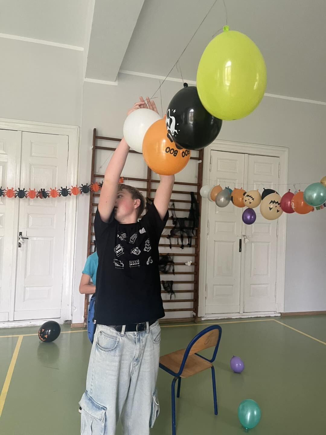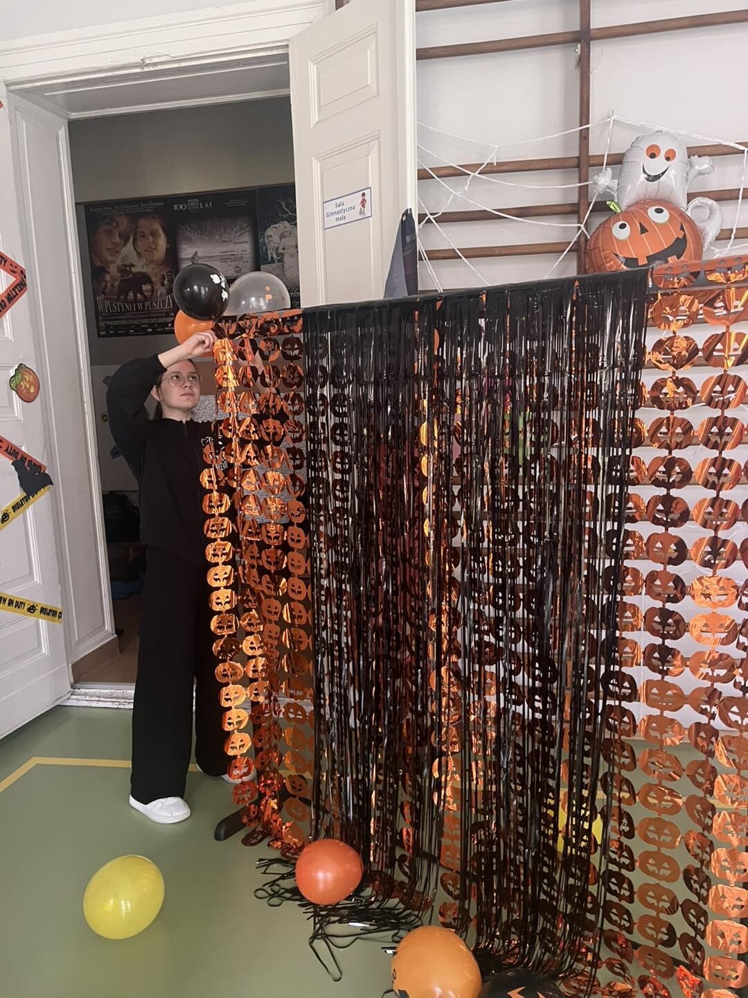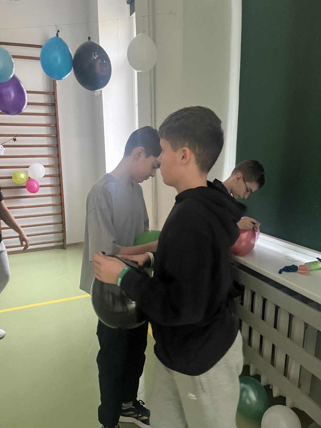 Samorząd Uczniowski w akcji dekorowania sali na jutrzejszą dyskotekę.