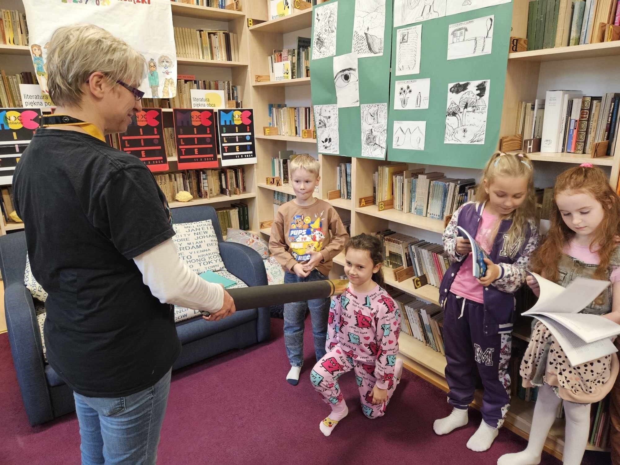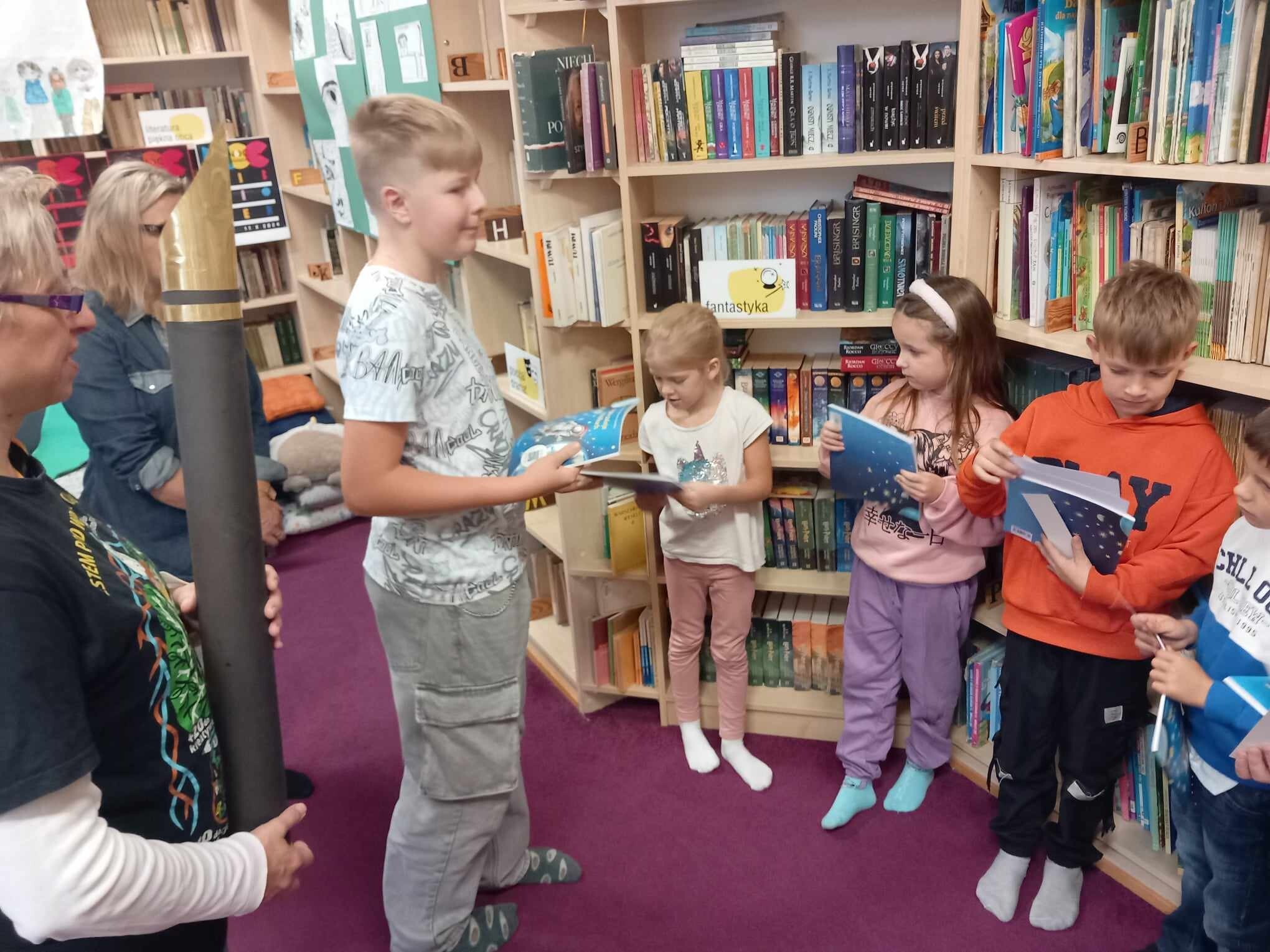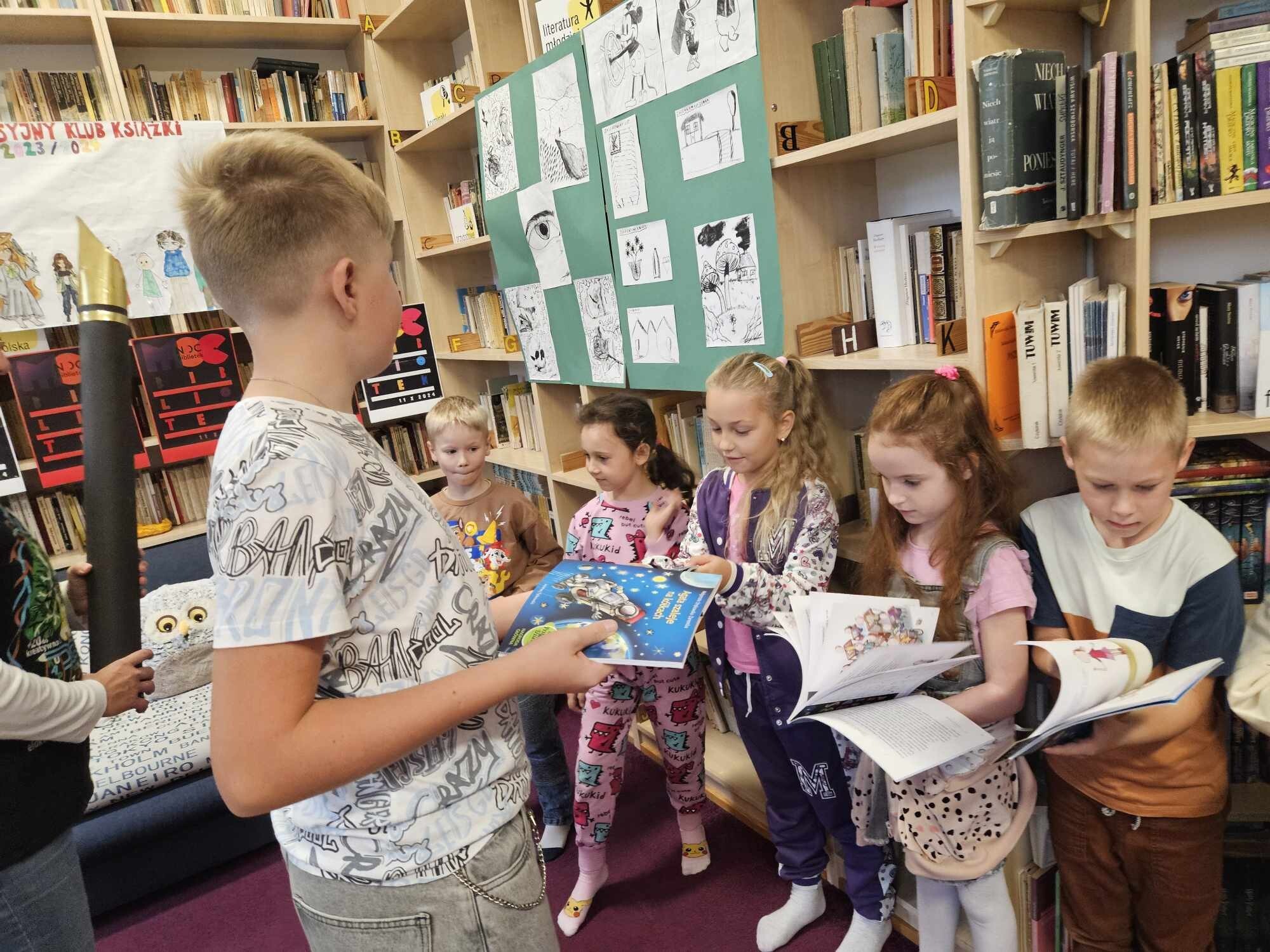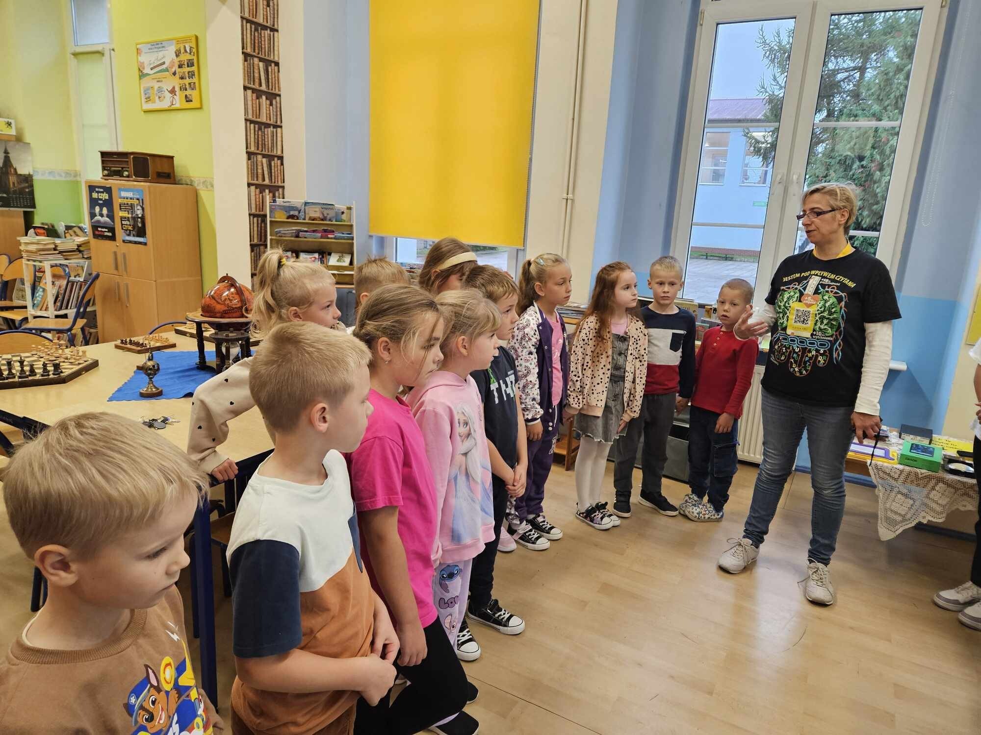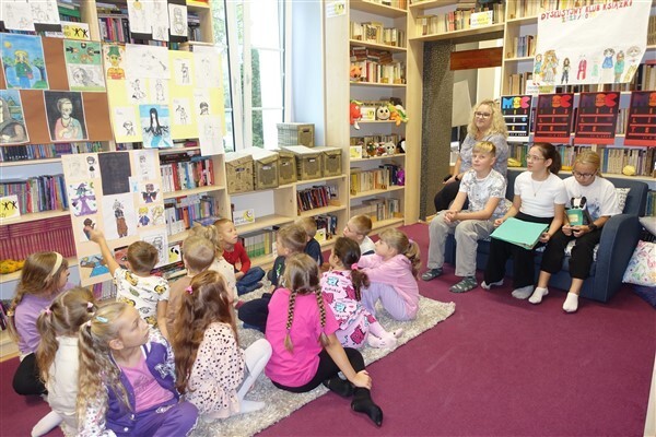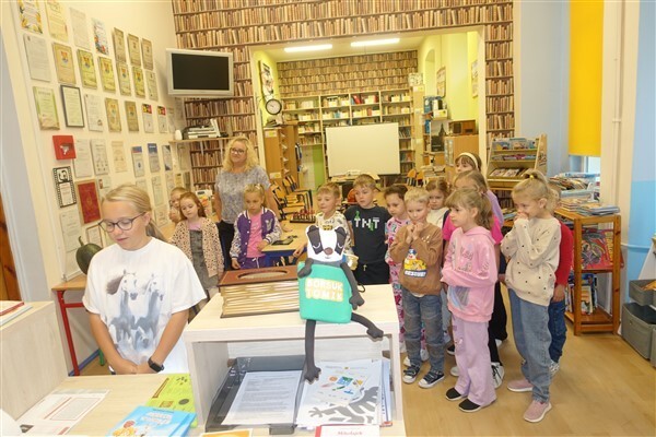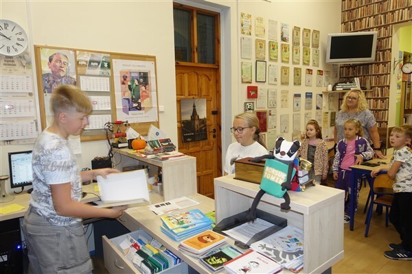 Ślubowanie uczniów klas pierwszych w październiku, czyli Międzynarodowym Miesiącu Bibliotek Szkolnych, to u nas już wieloletnia tradycja. Nie inaczej stało się również i w tym roku szkolnym. Pierwszaki zostały zaproszone na specjalnie dla nich przygotowane warsztatowe zajęcia czytelnicze w Bibliotece Szkolnej w Wicku, przygotowane przez czwórkę naszych uczniów z kl. VIA: Kingę Gołąbowicz, Lenę Stojek, Antoniego Szycę oraz Annę Wrońską.