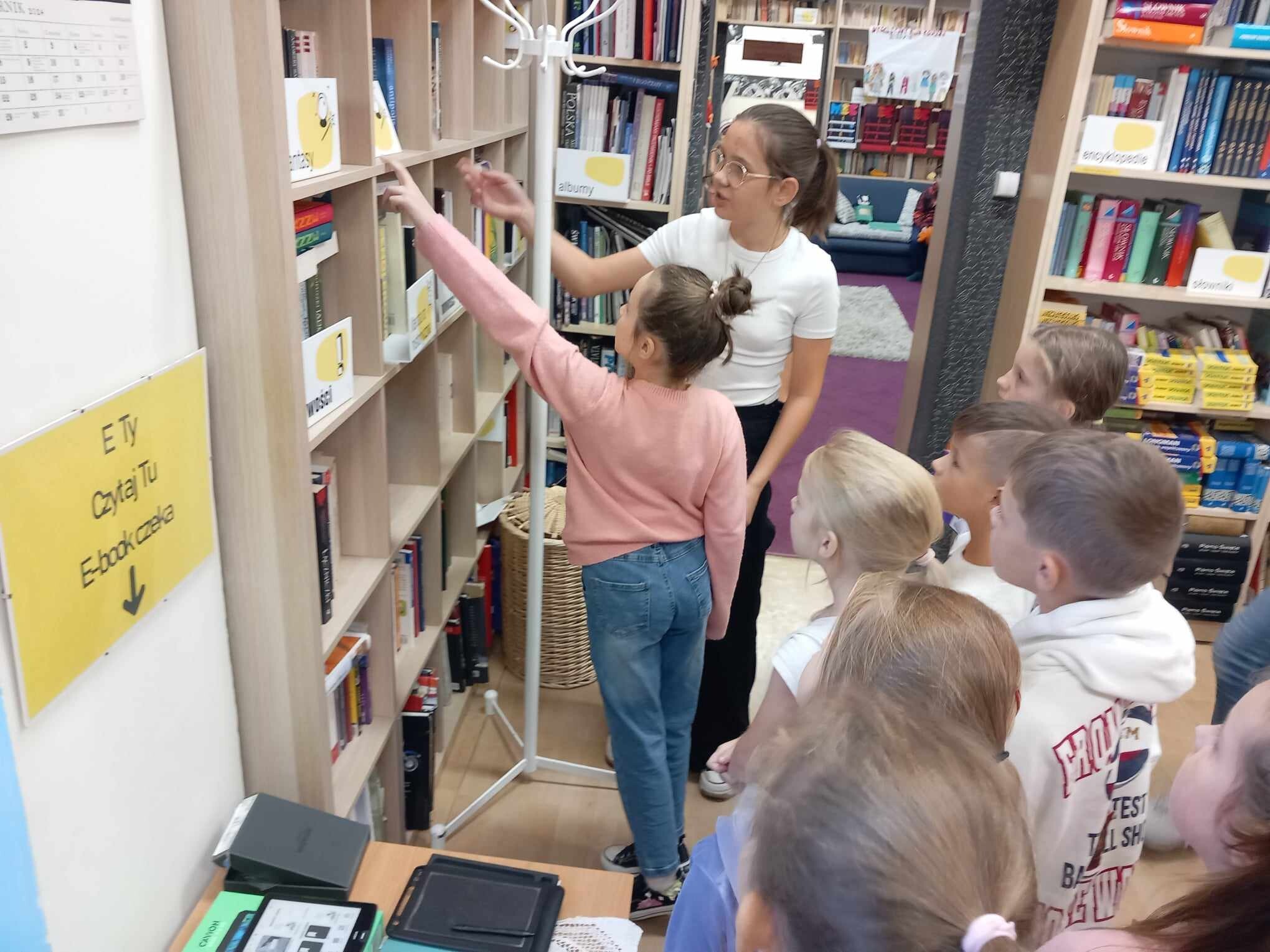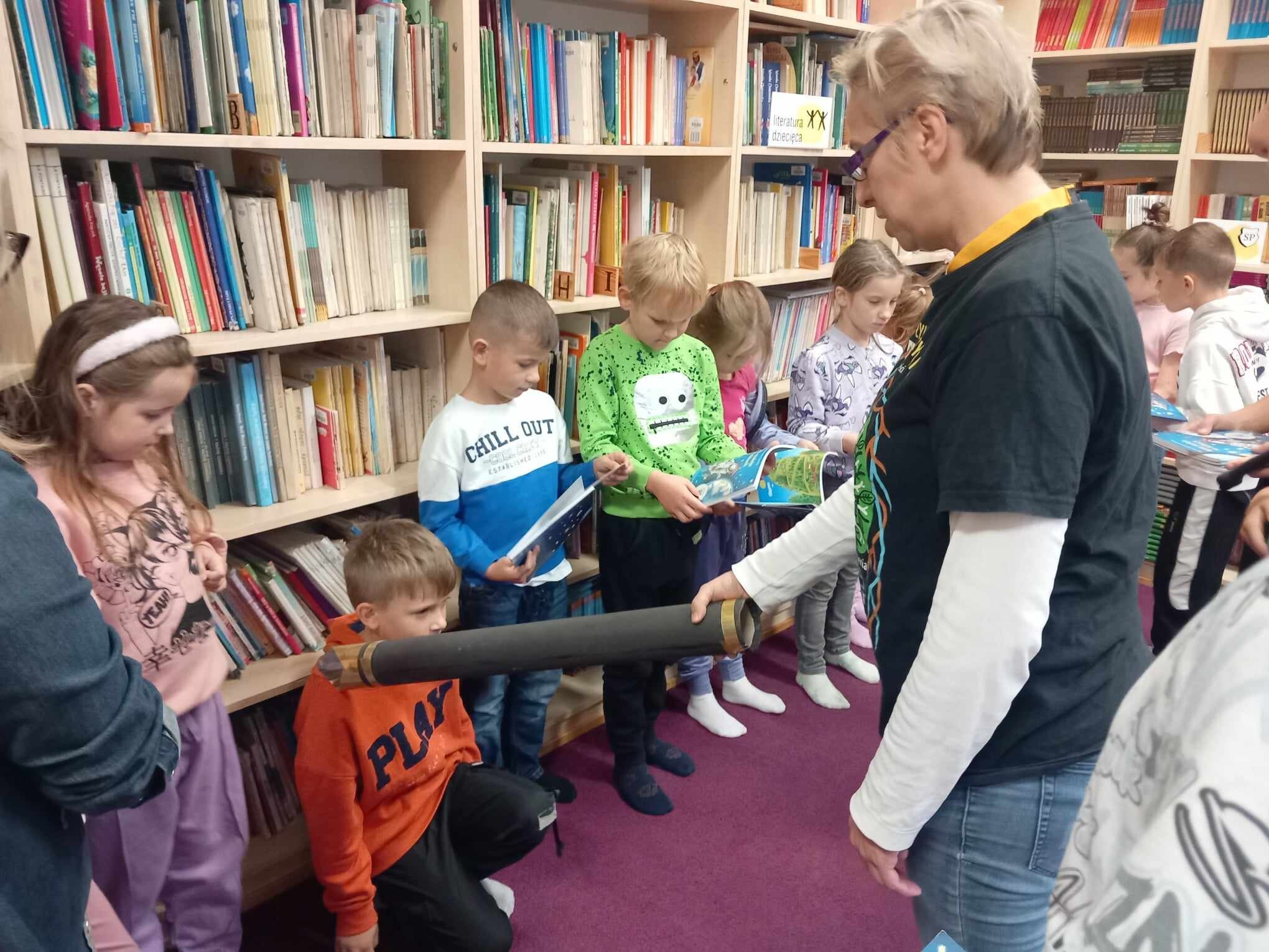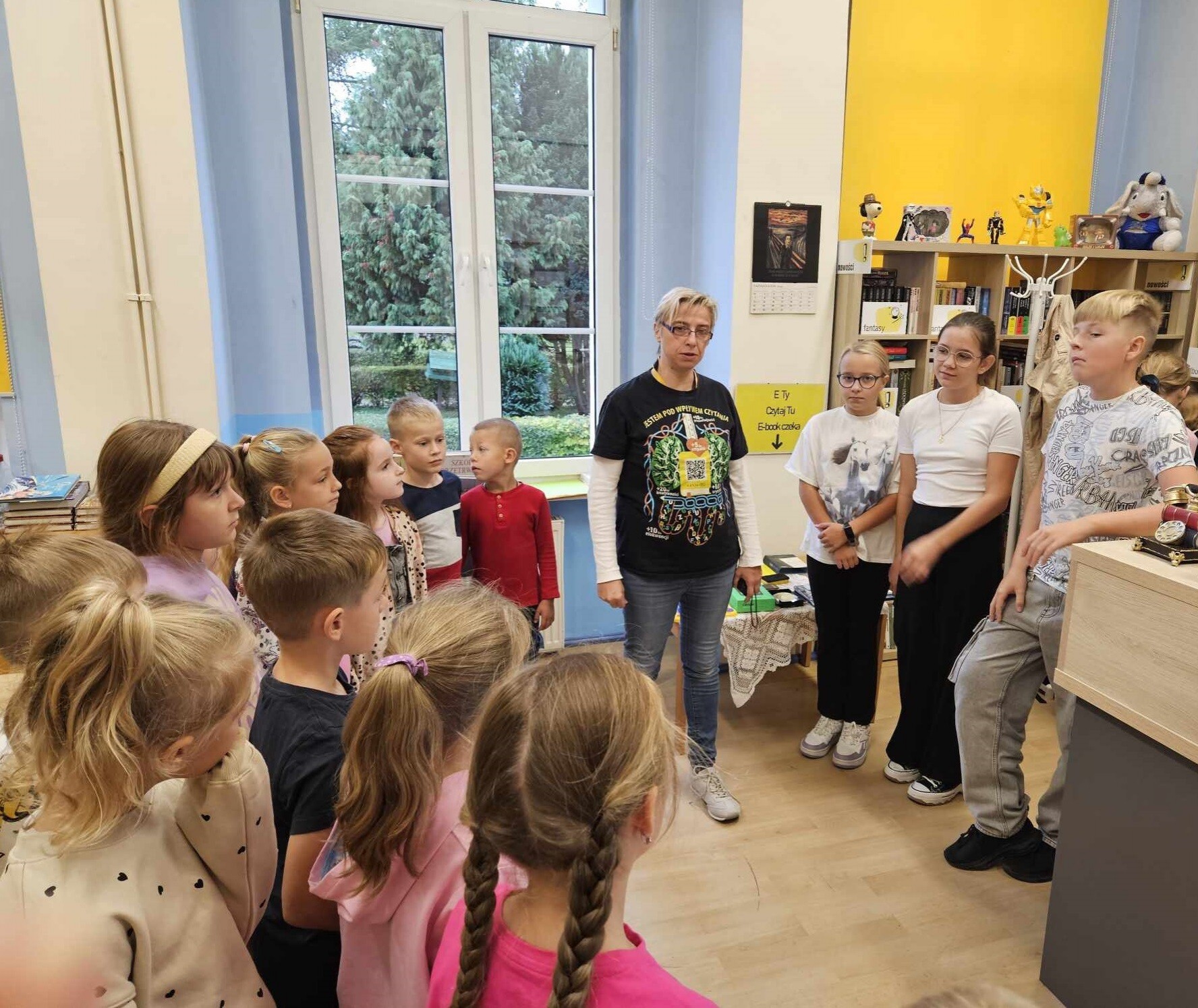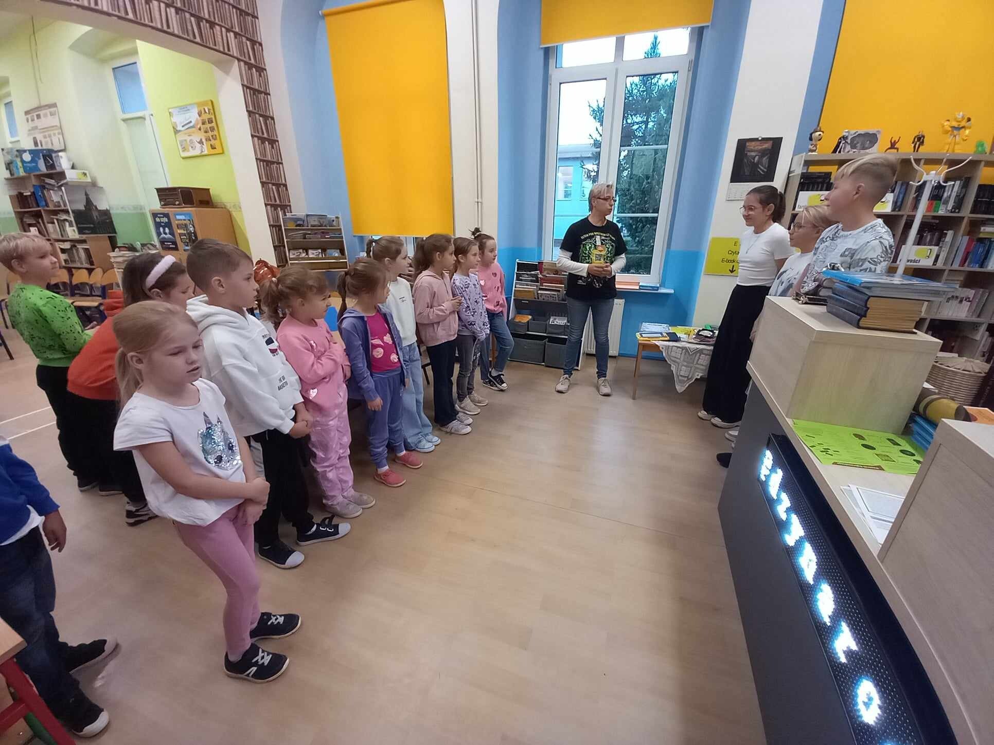 Ślubowanie uczniów klas pierwszych w październiku, czyli Międzynarodowym Miesiącu Bibliotek Szkolnych, to u nas już wieloletnia tradycja. Nie inaczej stało się również i w tym roku szkolnym. Pierwszaki zostały zaproszone na specjalnie dla nich przygotowane warsztatowe zajęcia czytelnicze w Bibliotece Szkolnej w Wicku, przygotowane przez czwórkę naszych uczniów z kl. VIA: Kingę Gołąbowicz, Lenę Stojek, Antoniego Szycę oraz Annę Wrońską.