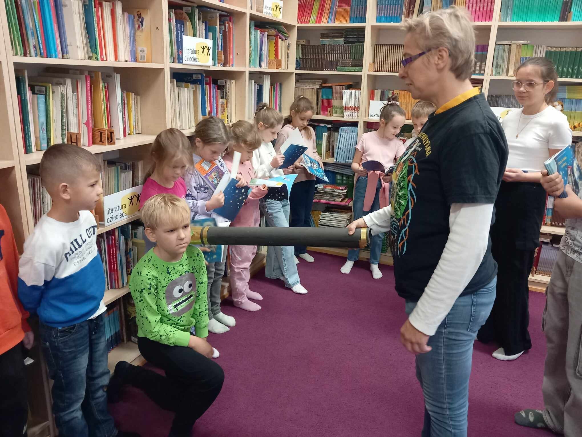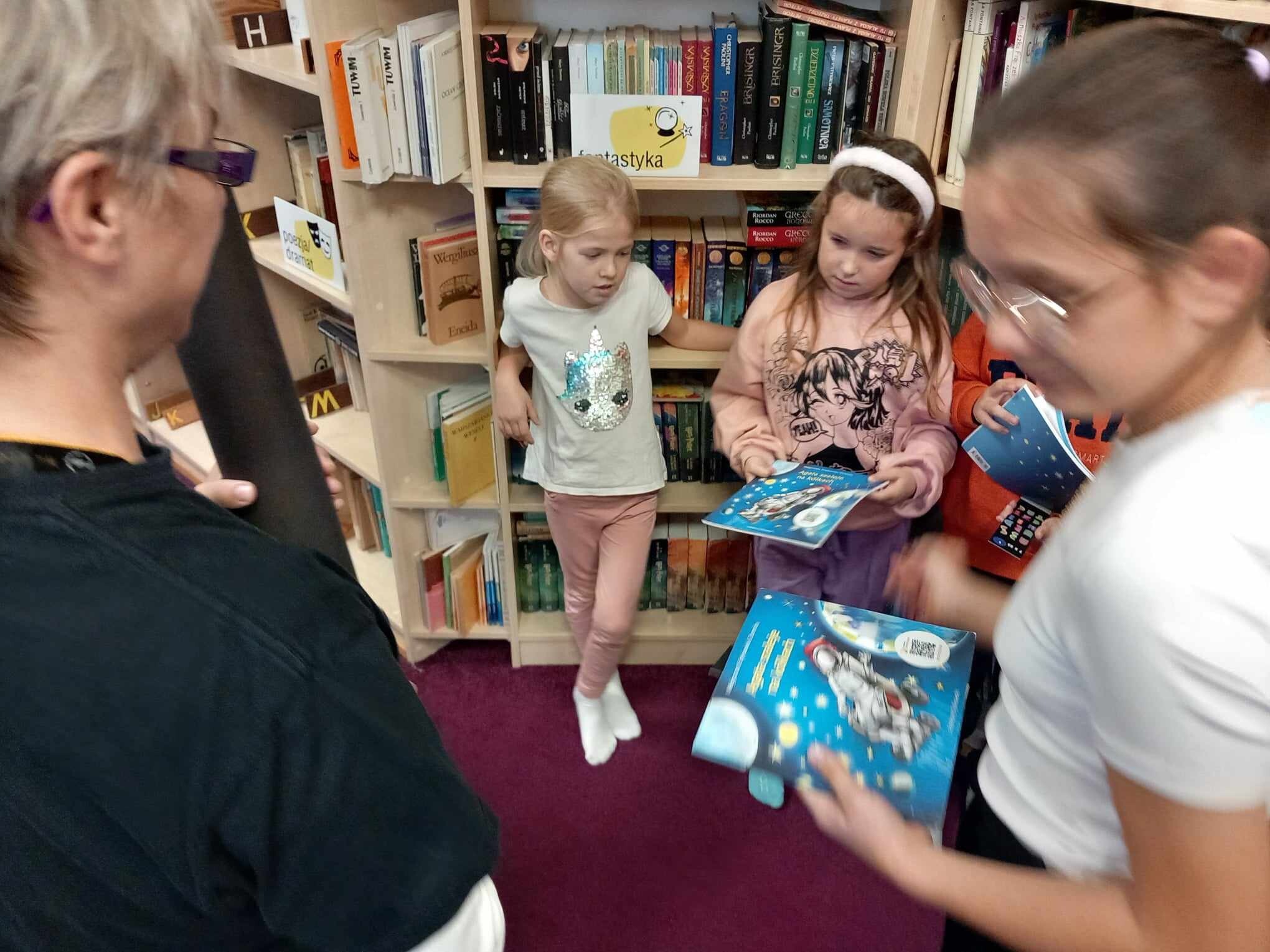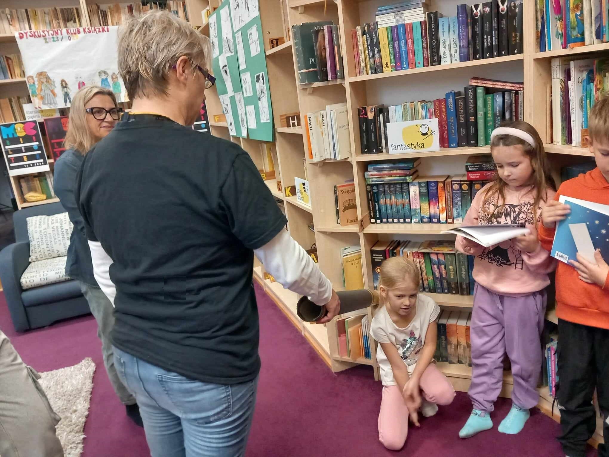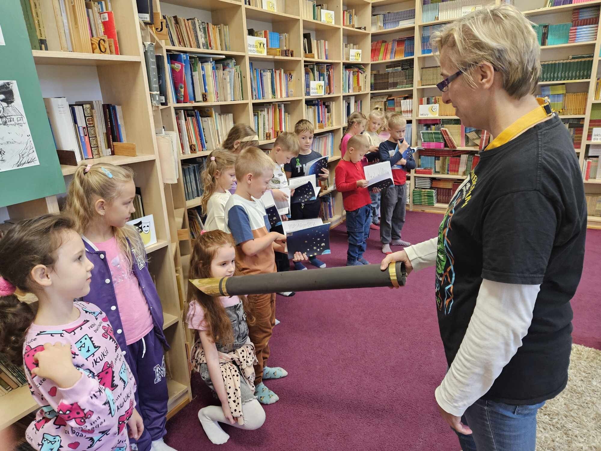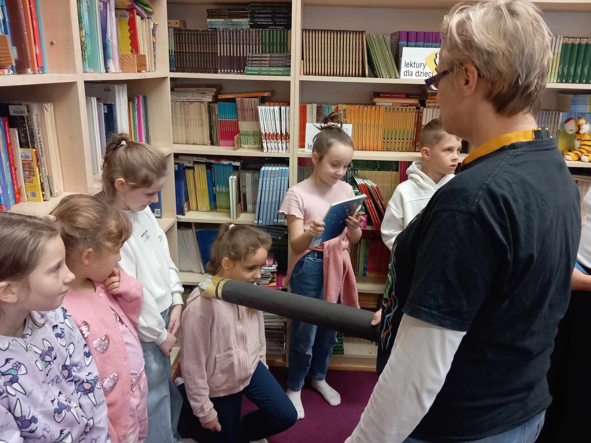 Ślubowanie uczniów klas pierwszych w październiku, czyli Międzynarodowym Miesiącu Bibliotek Szkolnych, to u nas już wieloletnia tradycja. Nie inaczej stało się również i w tym roku szkolnym. Pierwszaki zostały zaproszone na specjalnie dla nich przygotowane warsztatowe zajęcia czytelnicze w Bibliotece Szkolnej w Wicku, przygotowane przez czwórkę naszych uczniów z kl. VIA: Kingę Gołąbowicz, Lenę Stojek, Antoniego Szycę oraz Annę Wrońską.