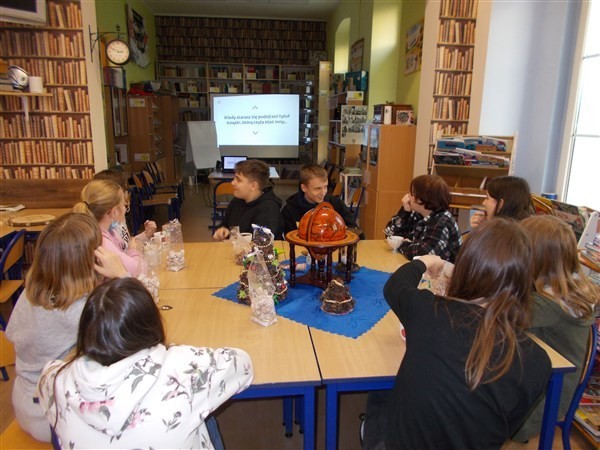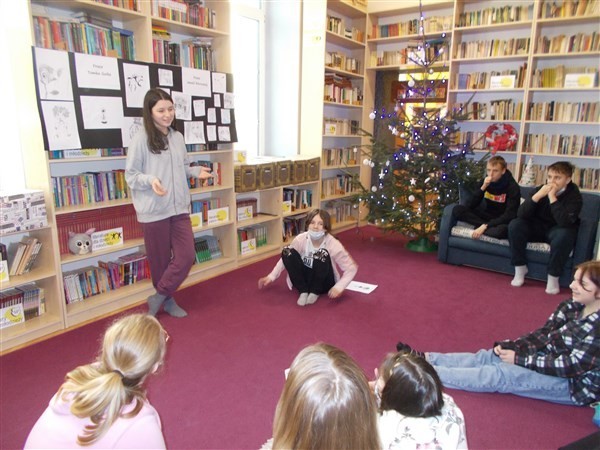 Na koniec, pamiętając o nadchodzącym zdalnym nauczaniu, uczniowie zaopatrzyli się w spory zapas wypożyczeń na czas nadchodzących świąt. Tradycyjnie podsumowaliśmy ostatnie w tym roku spotkanie DKK wspólnym poczęstunkiem i noworocznymi życzeniami.
