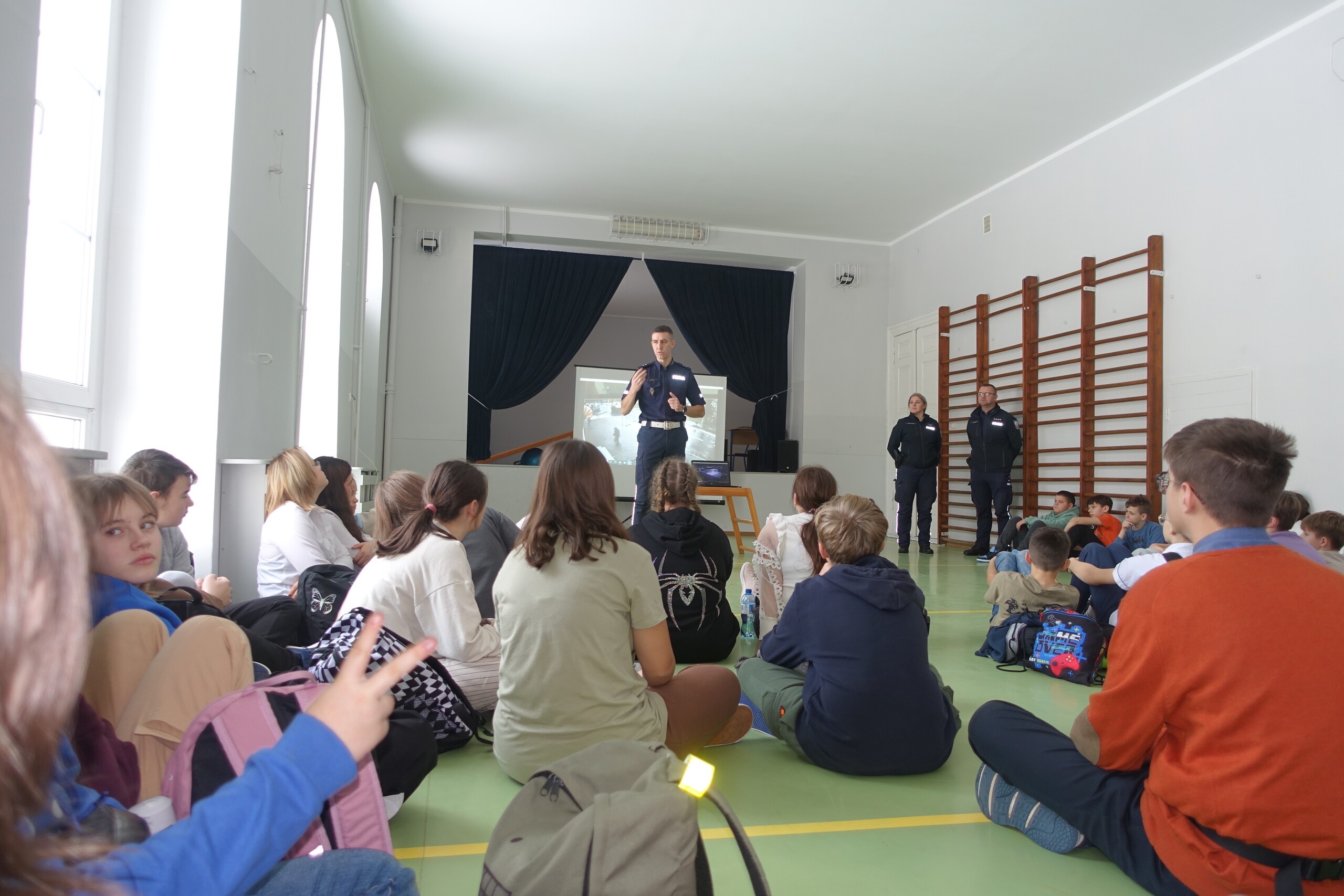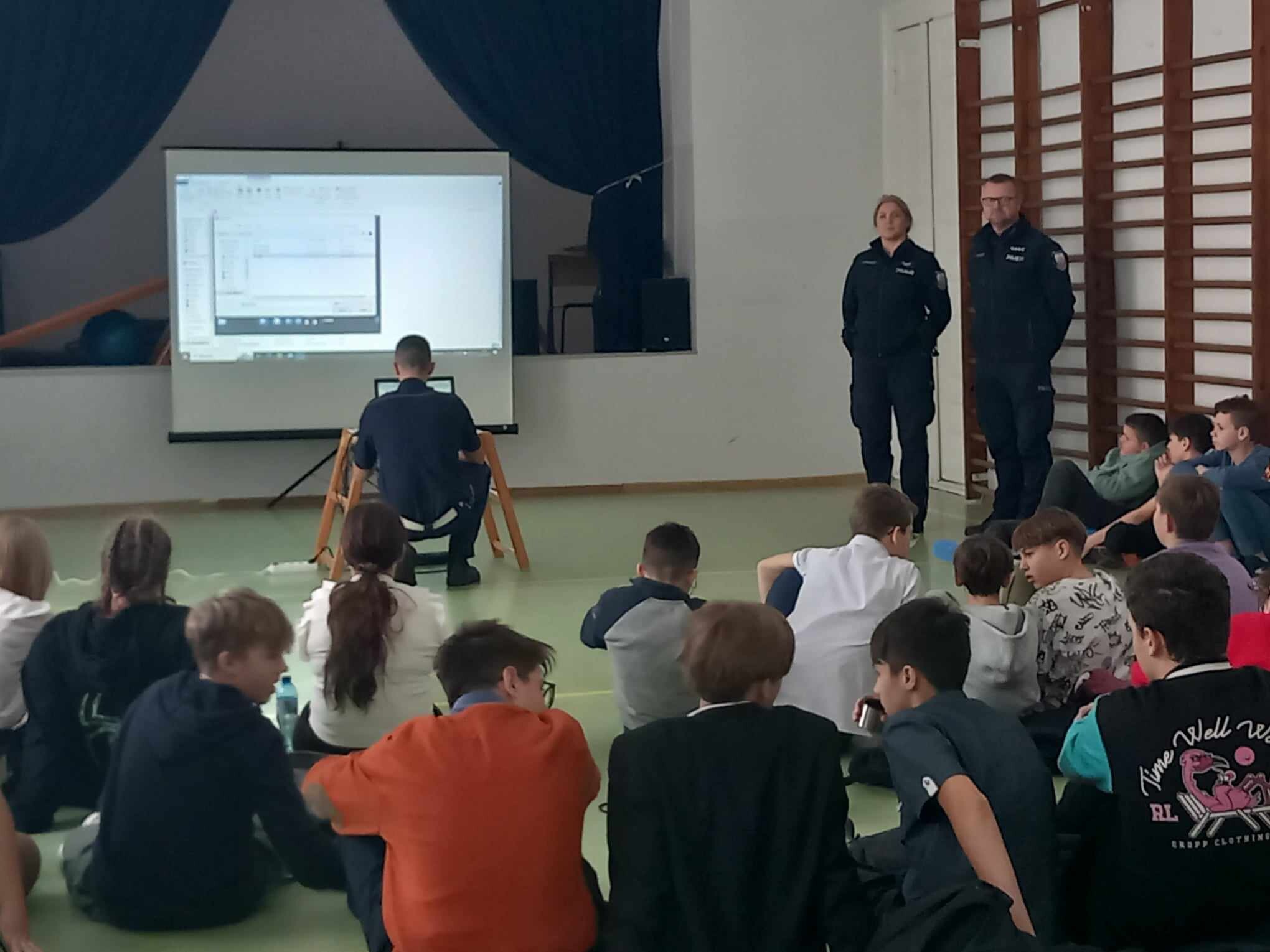 W środę, 29 listopada 2023 roku, uczniowie klas VIa, b, VIIa, VIIIa uczestniczyli w spotkaniu profilaktycznym, przygotowanym i prowadzonym przez funkcjonariuszy policji z KP w Łebie oraz KPP w Lęborku. Tematem spotkania było bezpieczne poruszanie się pieszych w ruchu drogowym. Spotkanie poprowadzili: podkomisarz Arkadiusz Loda - naczelnik Wydziału Ruchu Drogowego w Lęborku, sierżant Agnieszka Bednarek - dzielnicowa Gminy Wicko oraz aspiant szt. Andrzej Płatek - dzielnicowy Gminy Nowa Wieś Lęborska. Dziękujemy za spotkanie!