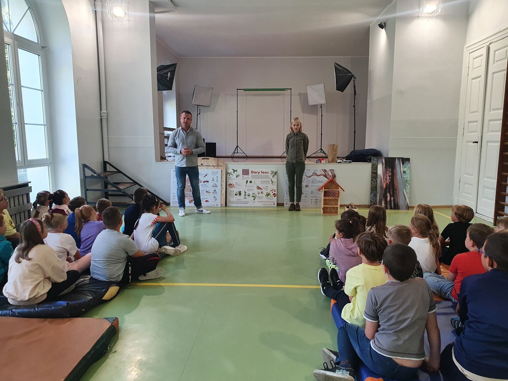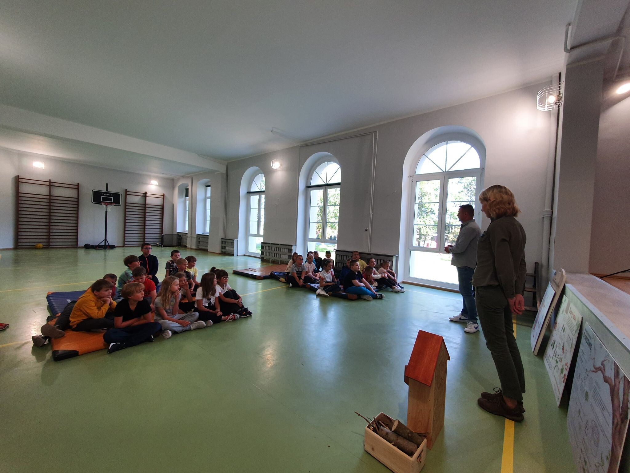 8 września 2022 roku uczniowie z klas 1-3 mieli zorganizowane spotkanie z Panią Alicją Kąckowską - Specjalistą ds. pozyskiwania drewna i edukacji przyrodniczo-leśnej z nadleśnictwa Lębork. Pani Alicja zapoznała nasze dzieci z szeroko rozumianą gospodarką leśną. Dzieci dowiedziały się o zwierzętach zamieszkujących lasy, sposobach ochrony roślin i zwierząt oraz podejmowanych przez nadleśnictwo działaniach na rzecz ochrony środowiska leśnego i odbudowy terenów leśnych. W przekazywaniu tej jakże ważnej wiedzy pomagały materiały i plansze dydaktyczne. Dziękujemy Pani Alicji za odwiedziny.