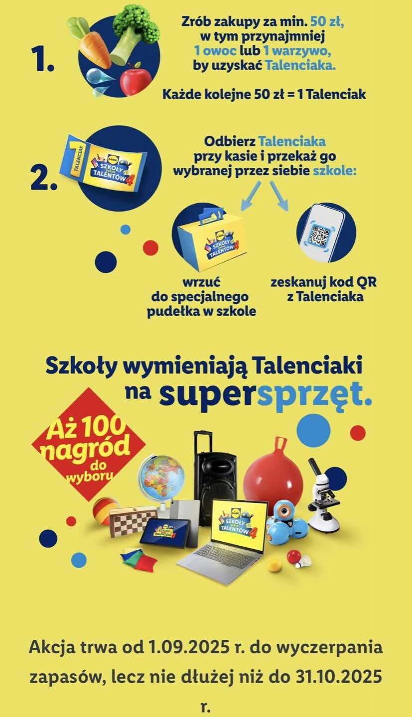 Trwa zbiórka Talenciaków z Lidl Polska, które możemy wymieniać na atrakcyjne pomoce dydaktyczne i sprzęt sportowy dla naszej szkoły.