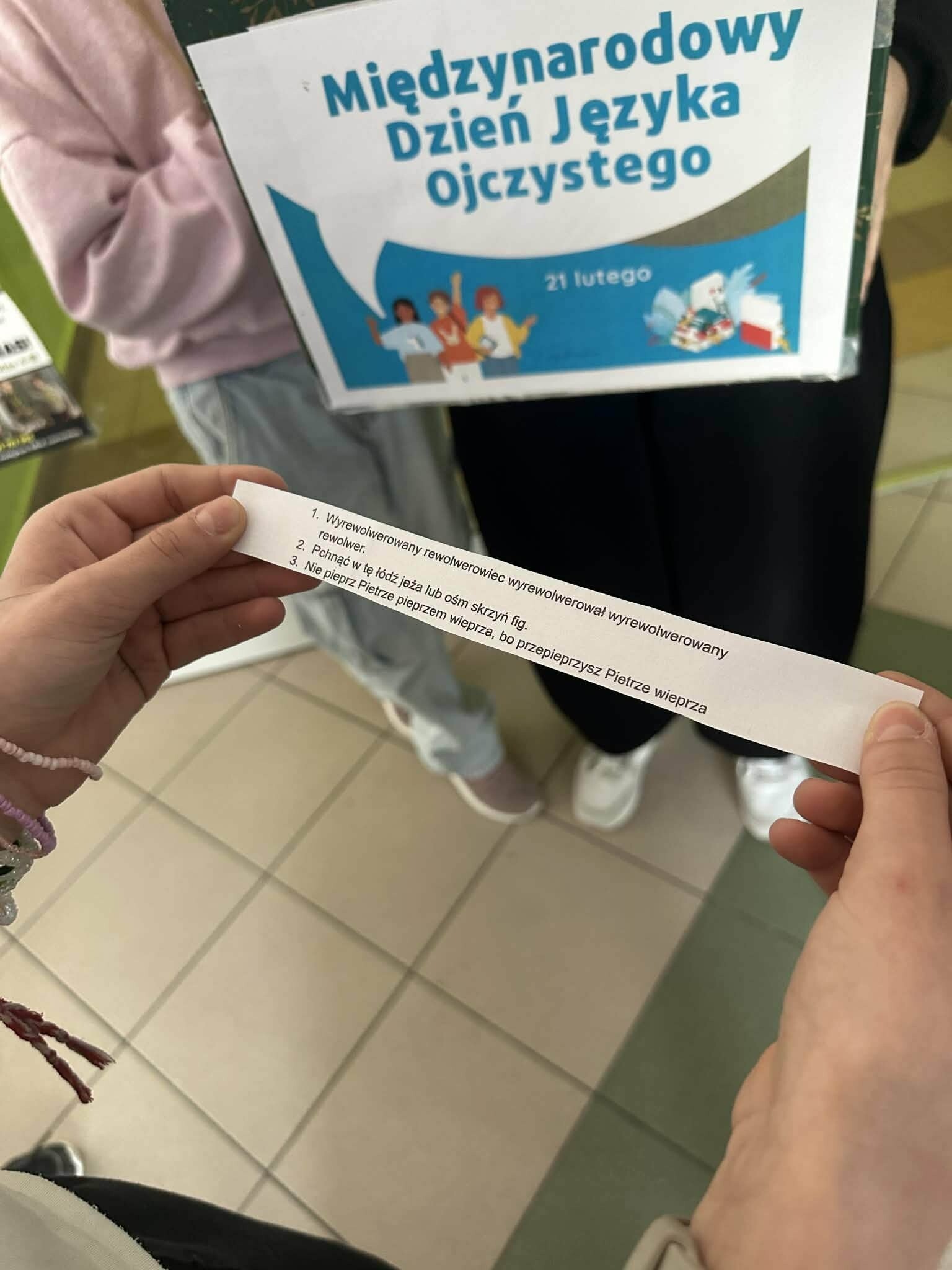 Dziś (piątek, 20.02.2026) obchodziliśmy w naszej szkole Międzynarodowy Dzień Języka Ojczystego. Dla uczniów SP Wicko przygotowaliśmy zagadki językowe, trudne słowa i najczęstsze błędy językowe popełniane przez Polaków. Ponadto na ochotników z klas starszych czekało dyktando, które mogli napisać w szkolnej bibliotece podczas długiej przerwy. Zgłosiło się siedemnastu śmiałków, którzy za swój wysiłek otrzymali gadżety biurowe z Muzeum II Wojny Św. w Gdańsku, a najlepsi z nich zostaną dodatkowo nagrodzeni ocenami w e-dzienniku. Wyniki dyktanda poznamy w nadchodzącym tygodniu.