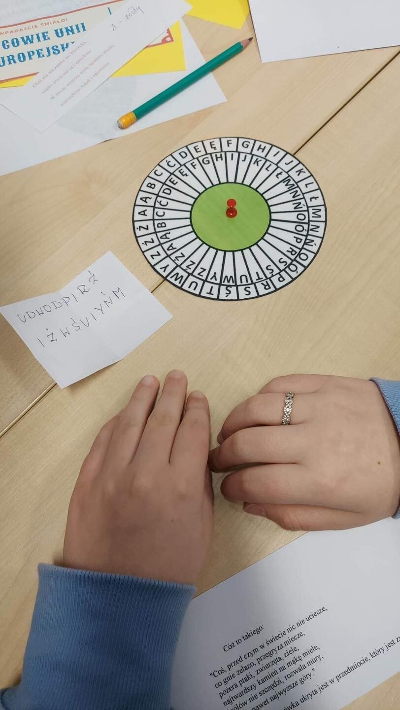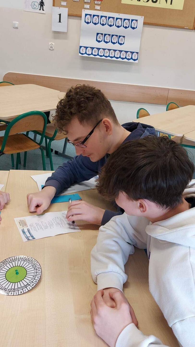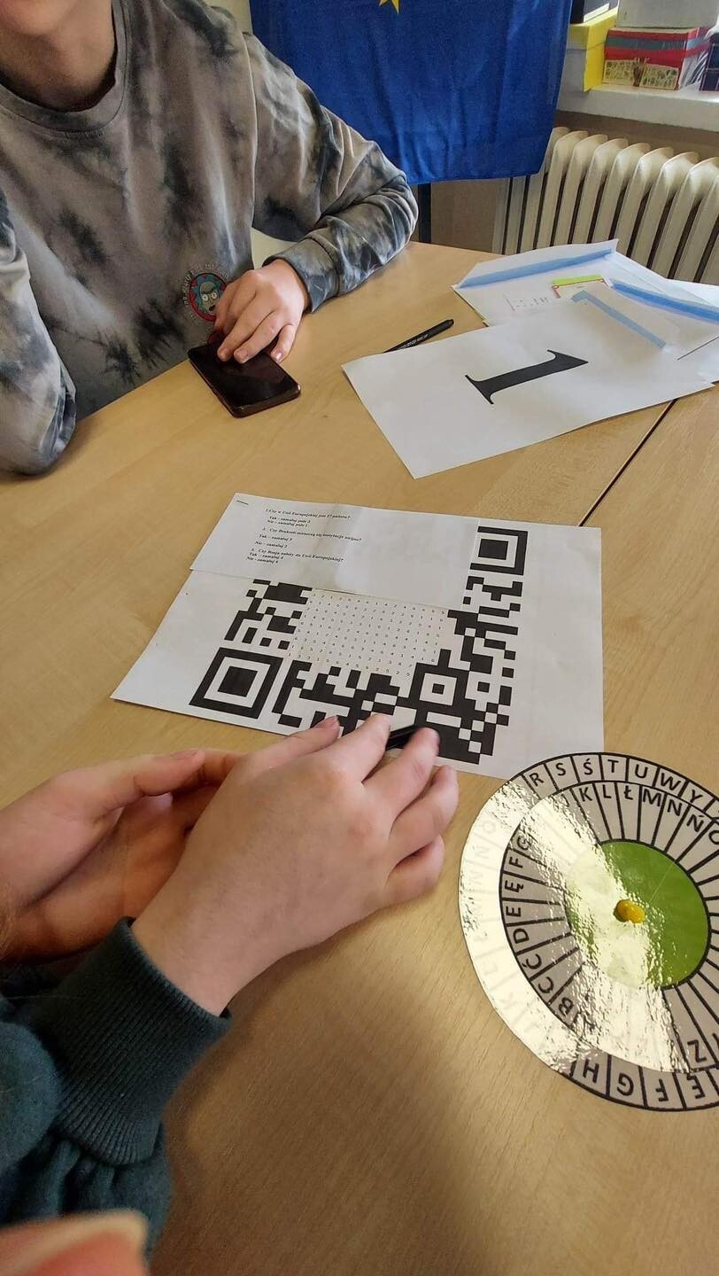 Szkolny Klub Europejski zorganizował "Europejski Escape Room". Zadaniem uczniów biorących udział w zabawie było rozwiązanie serii zagadek na temat Unii Europejskiej, które miały pomóc w odnalezieniu wyjścia z sali. Najszybciej pokój zagadek opuściły, a zarazem wygrały cały "EER", uczennice z klasy VIIIc: